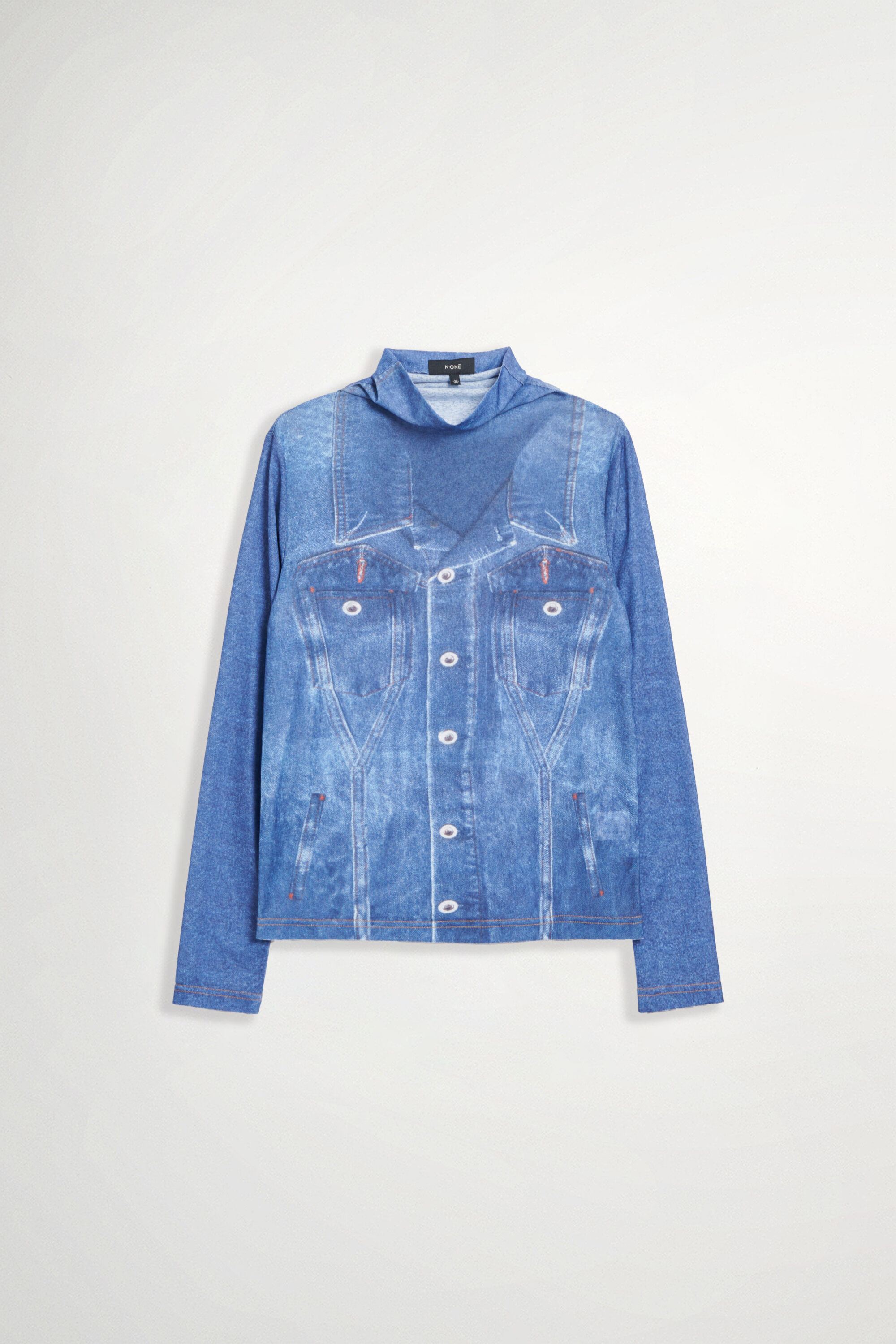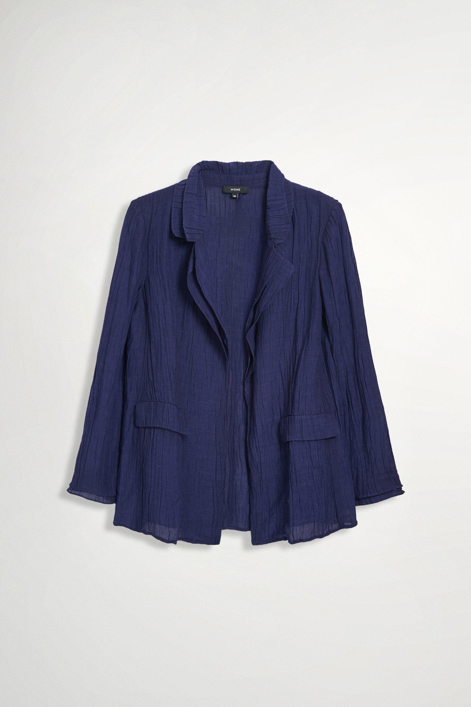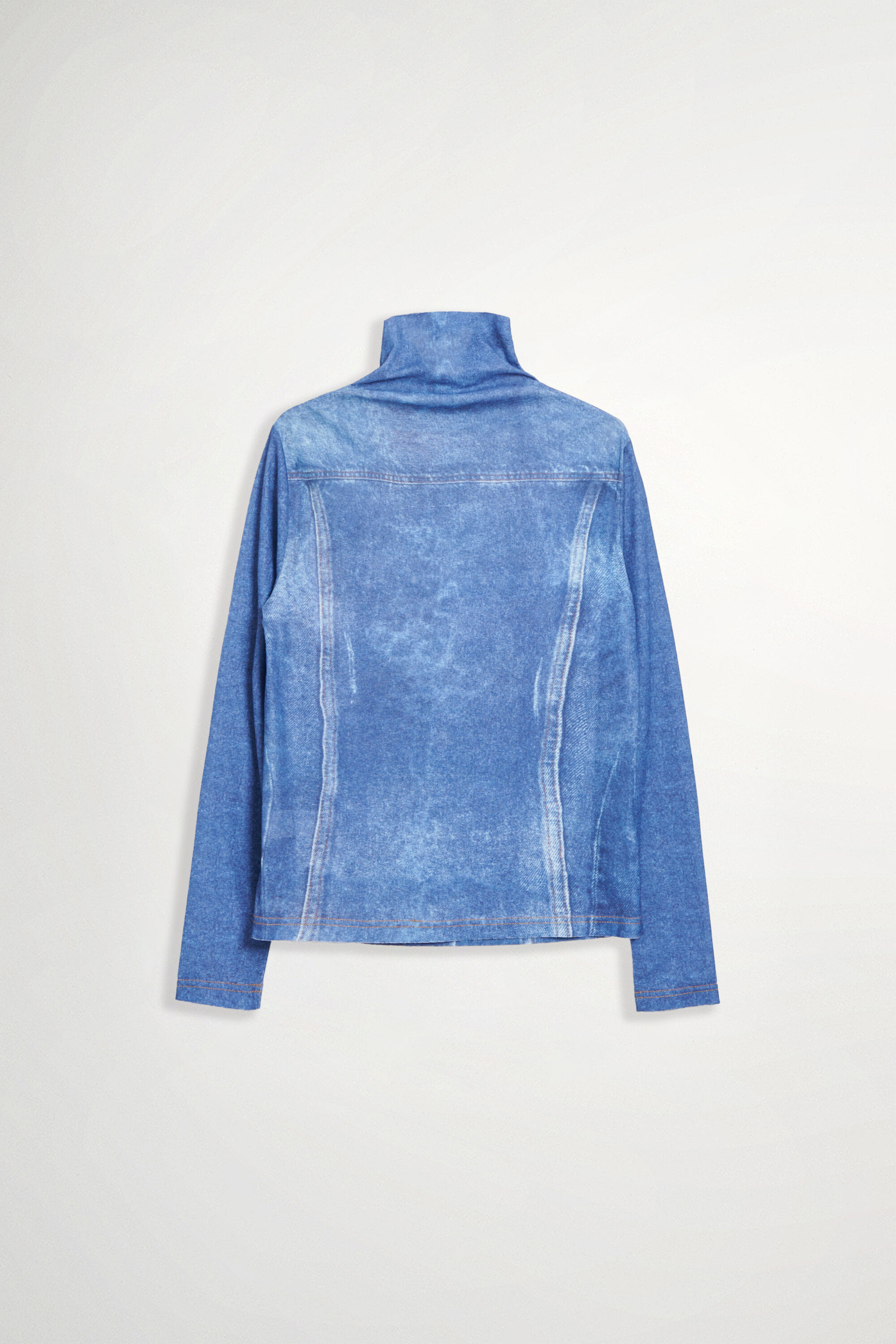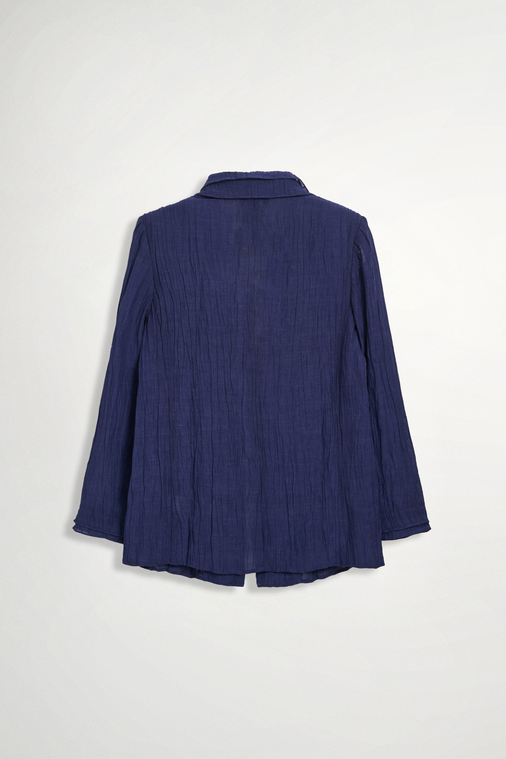 牛仔風情小荷葉抓褶牛仔上衣 - 寧靜黛藍