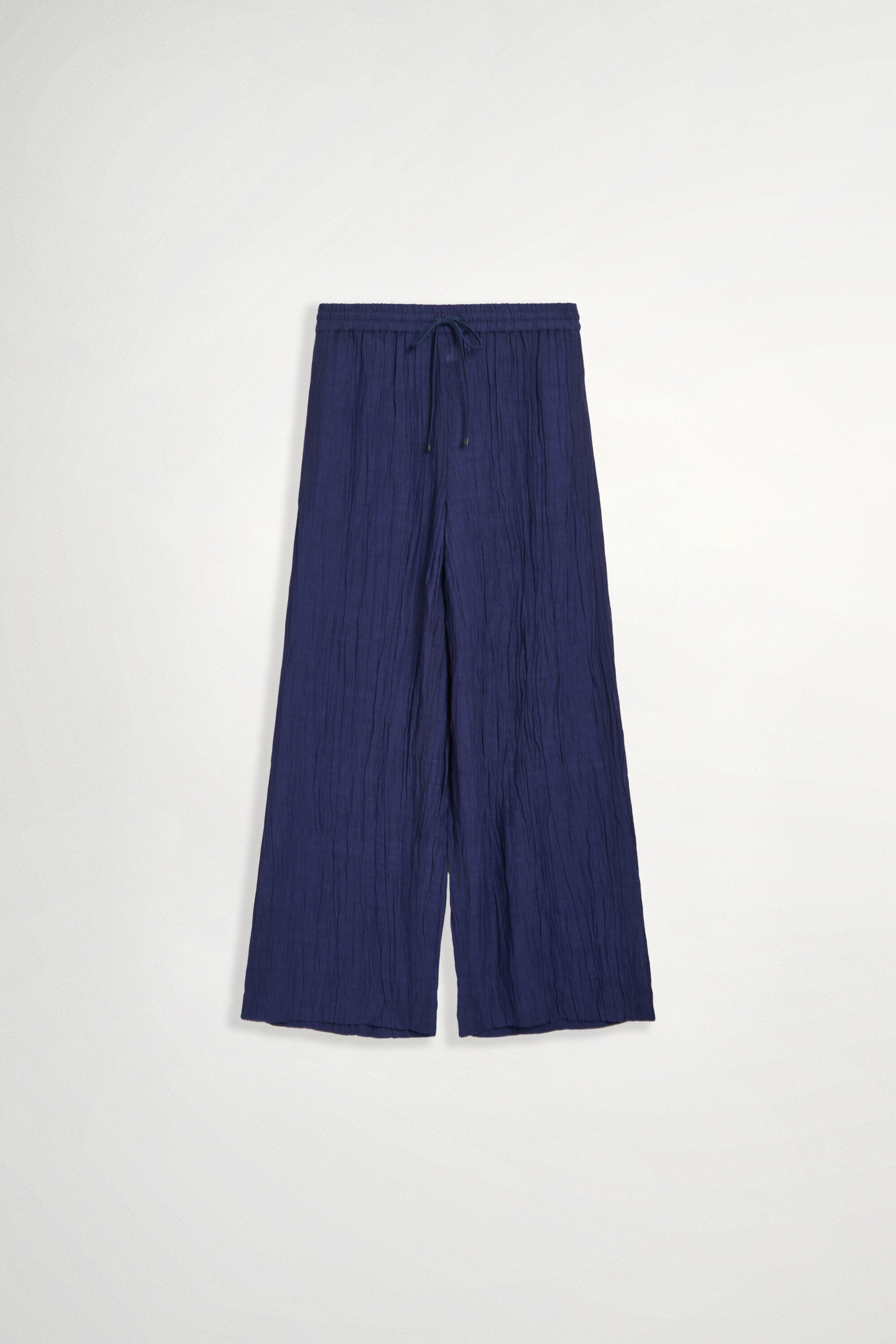 日常後鬆緊腰休閒寬褲 - 寧靜黛藍