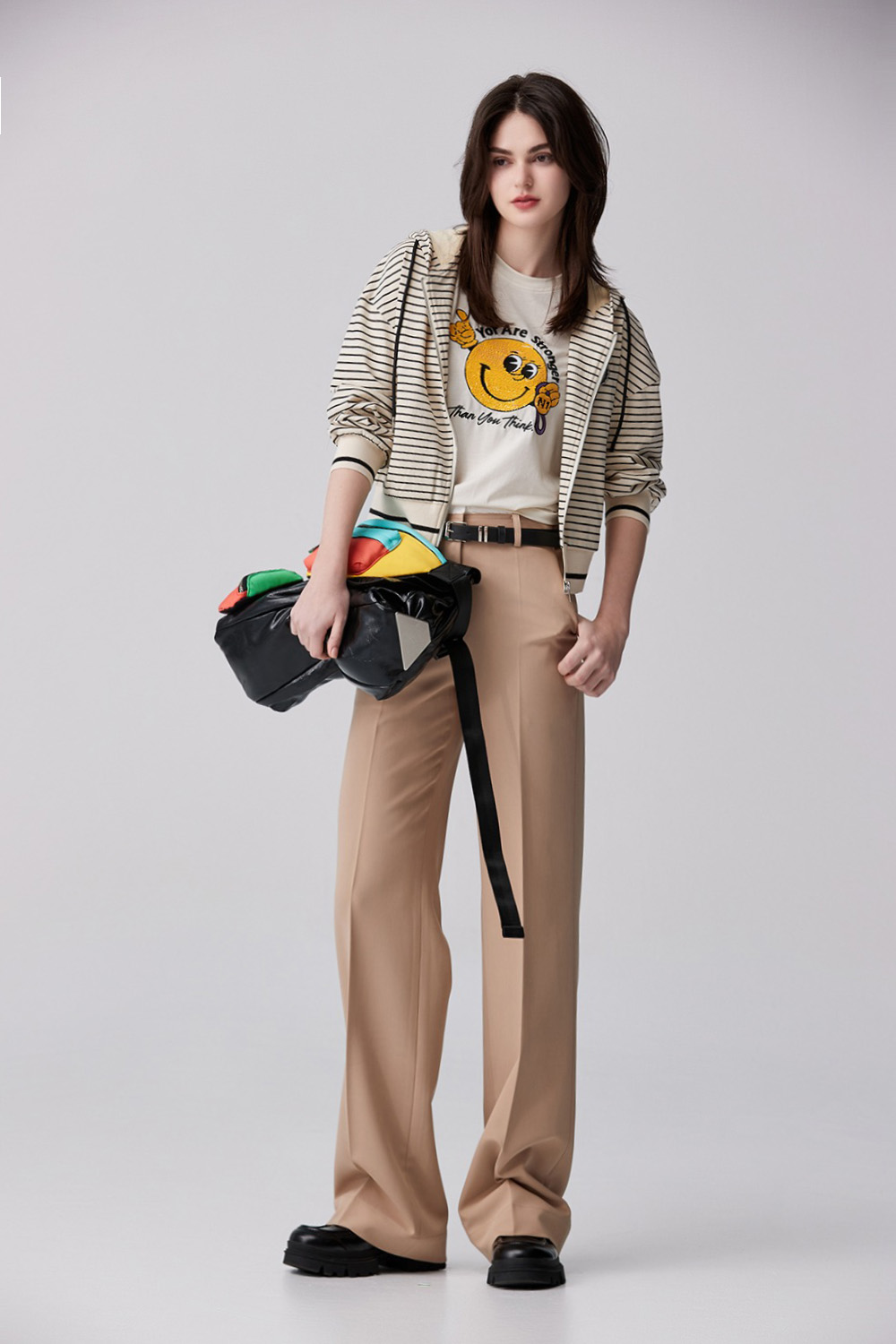 溫煦裸色拼接高領背心外套 - 微施粉澤