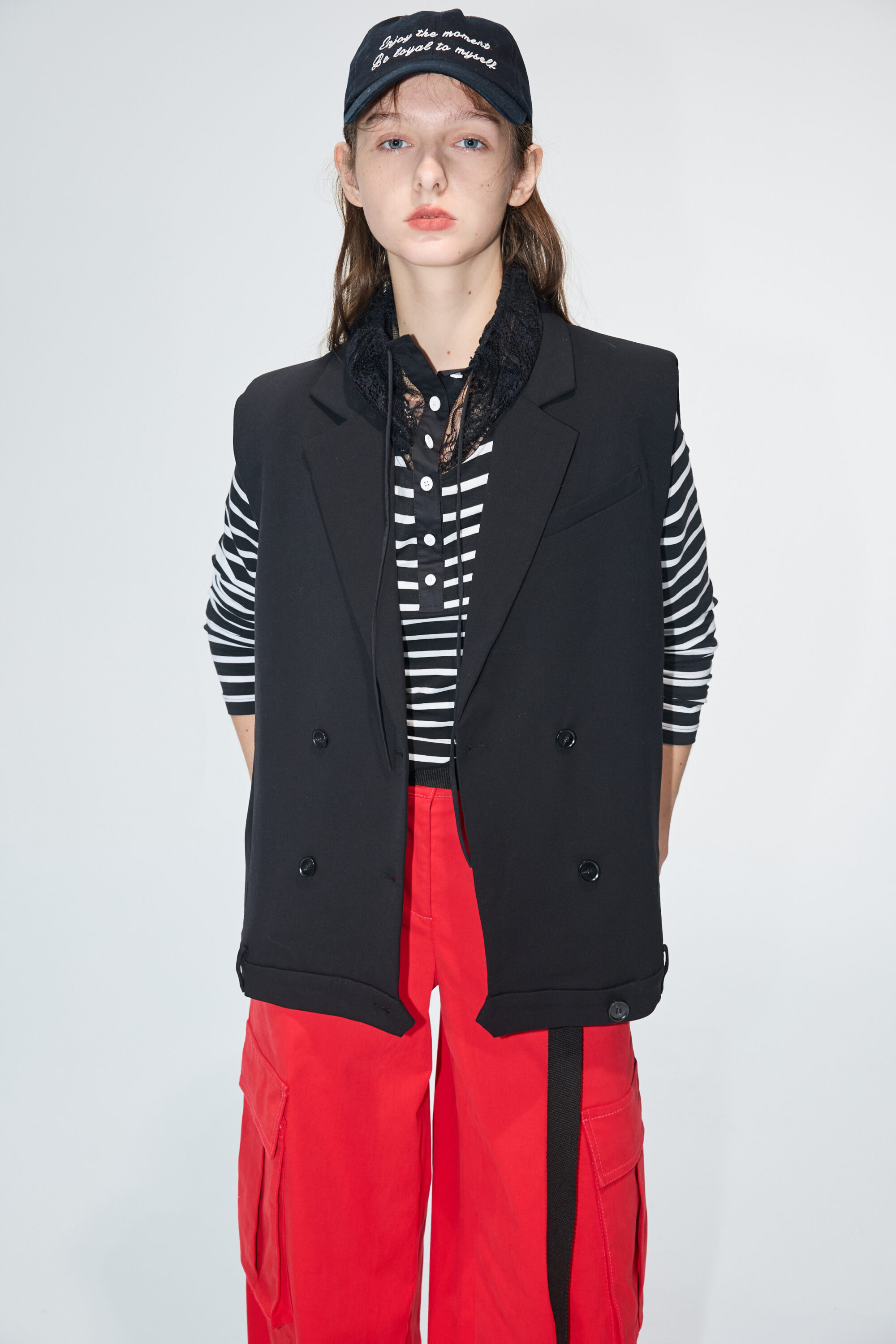 乾淨俐落雙排扣墊肩背心外套 - 神祕純黑