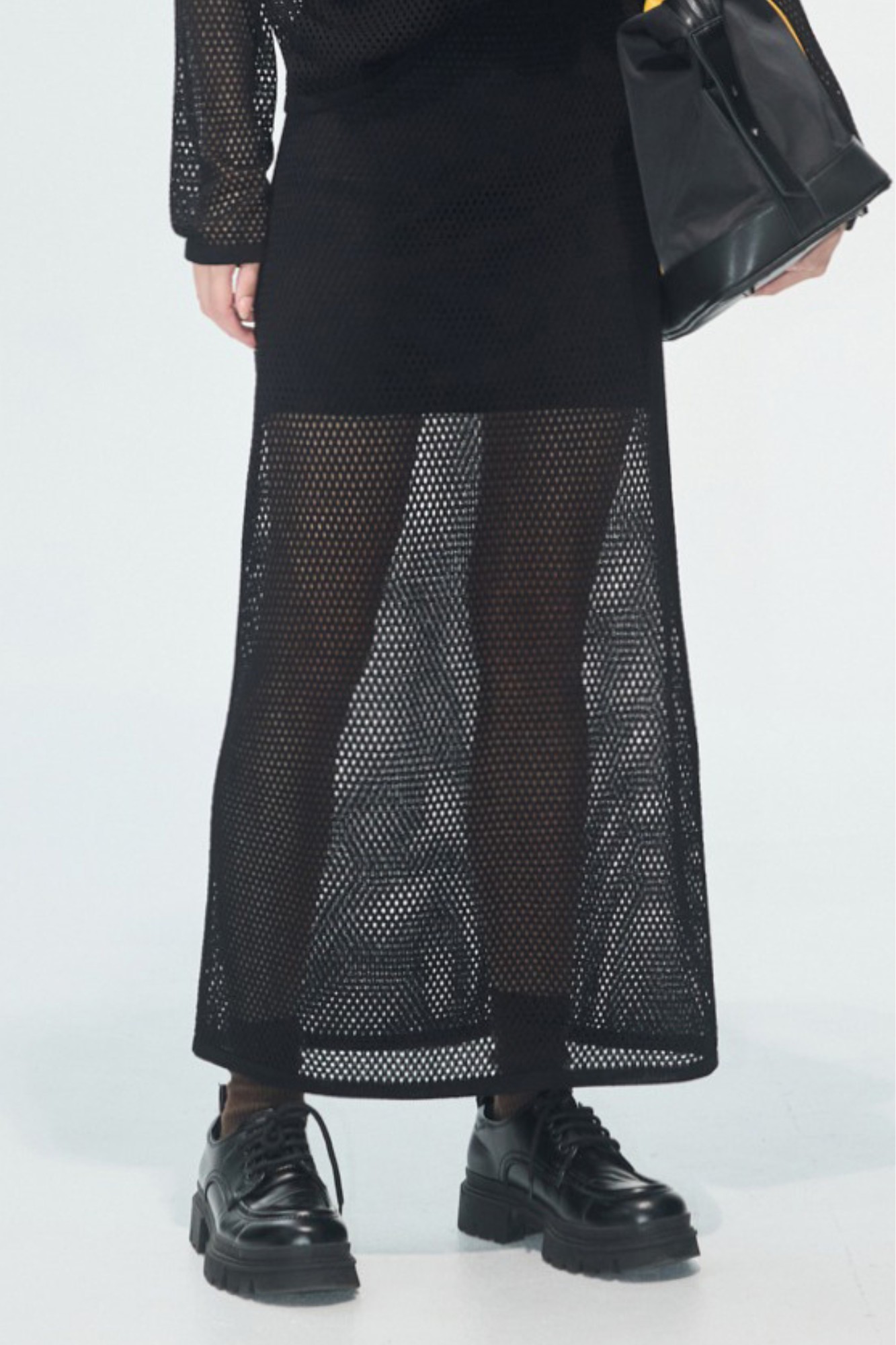 暗夜鏤空洞洞素面長裙 - 神祕純黑