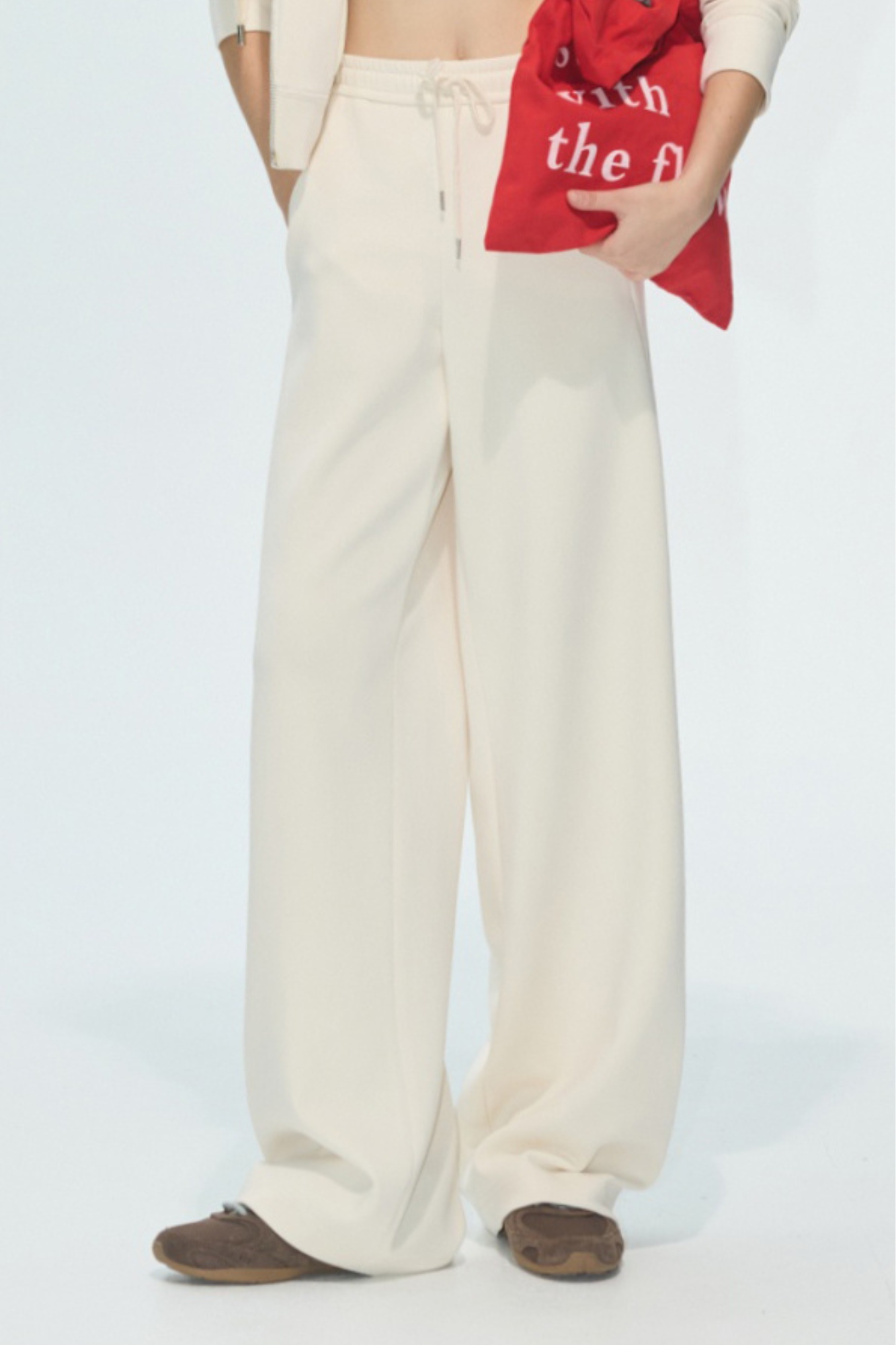 奶呼呼鬆緊腰休閒長褲 - 奶油杏色