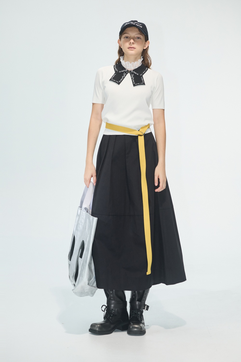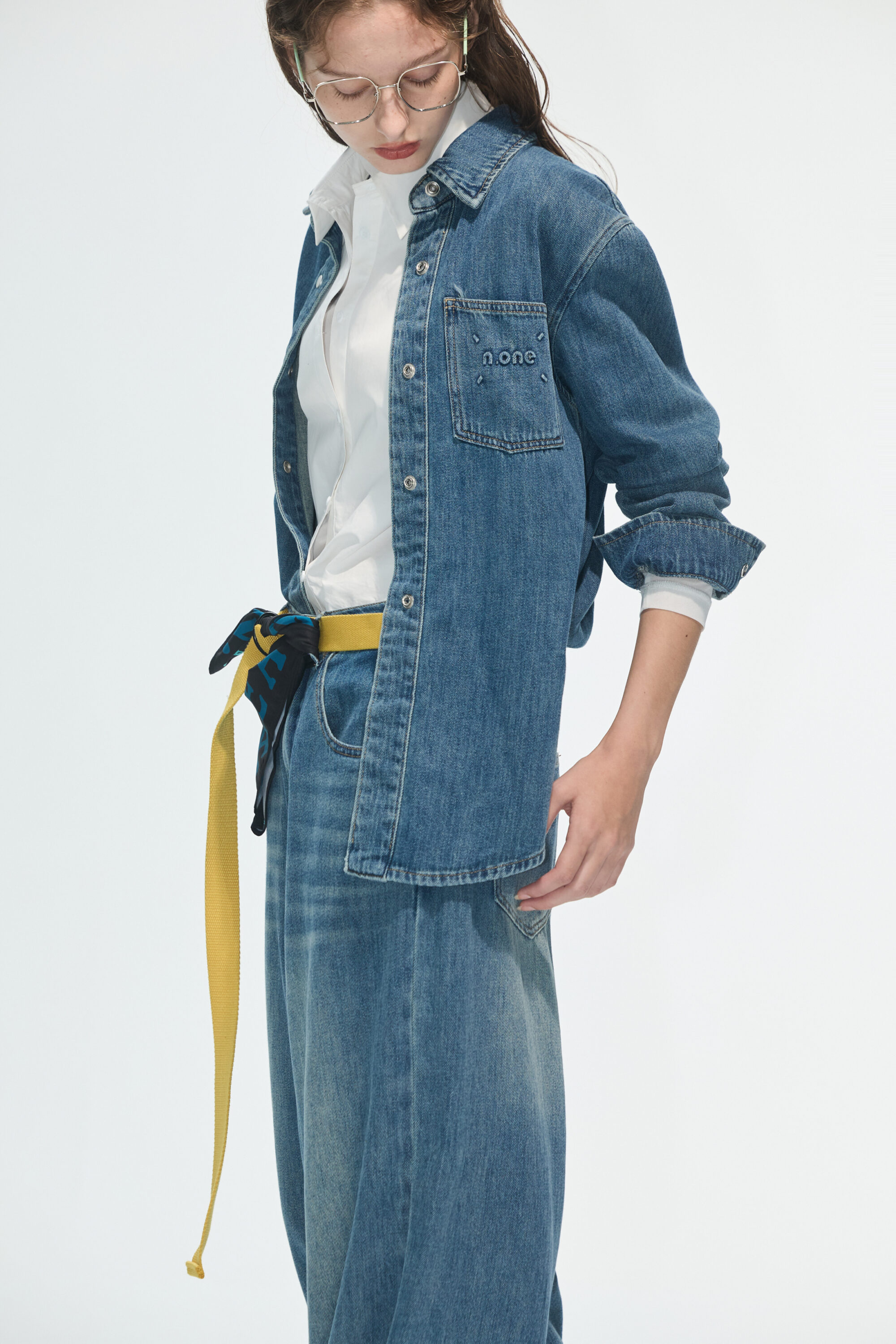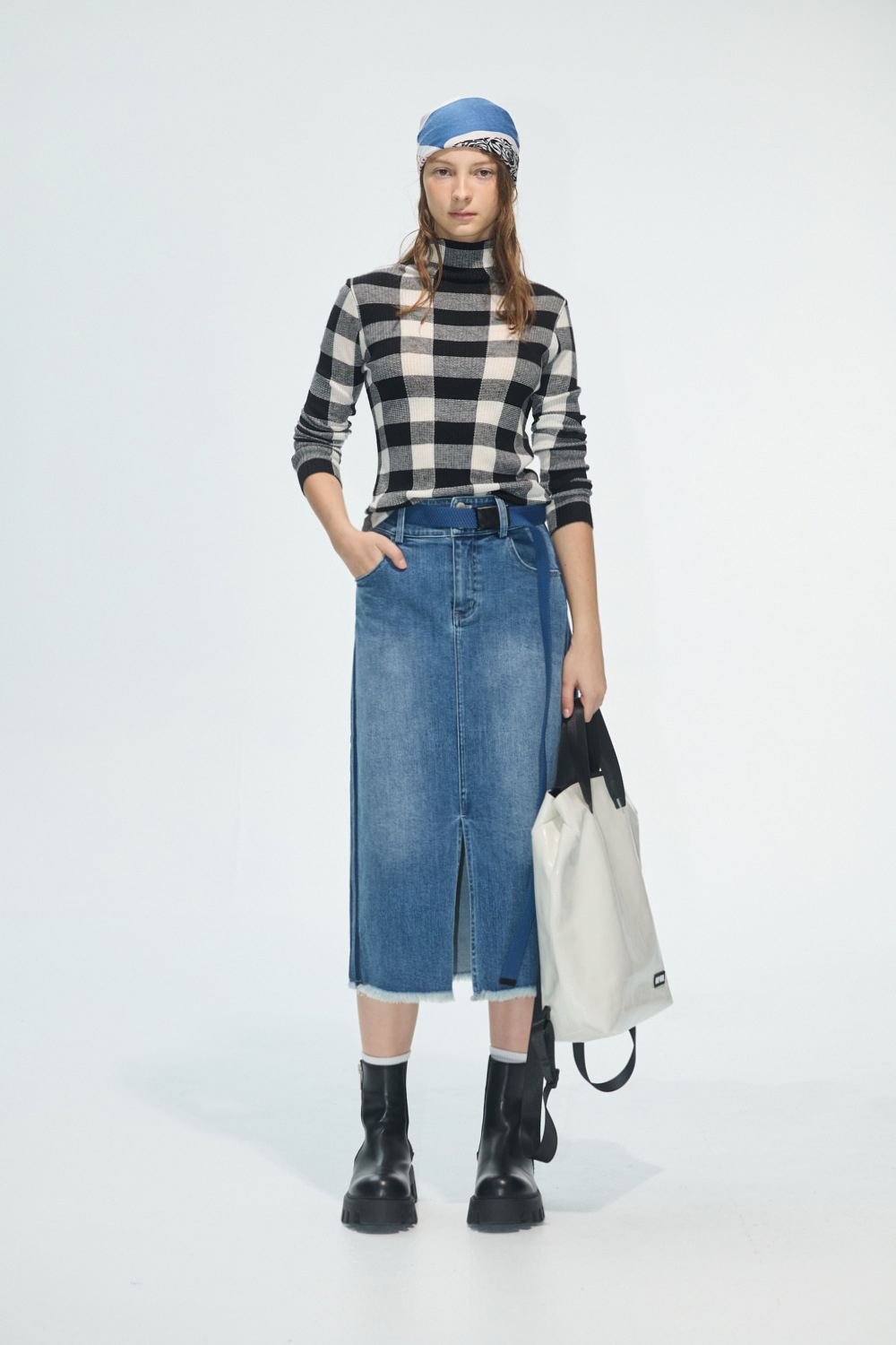 簡約線條前剪衩洗色牛仔裙 - 清新蔚藍