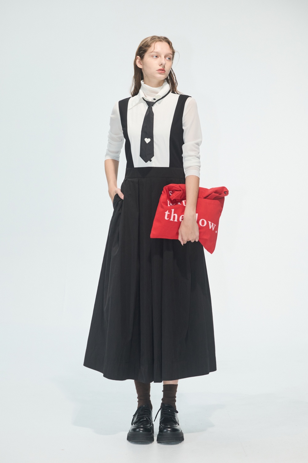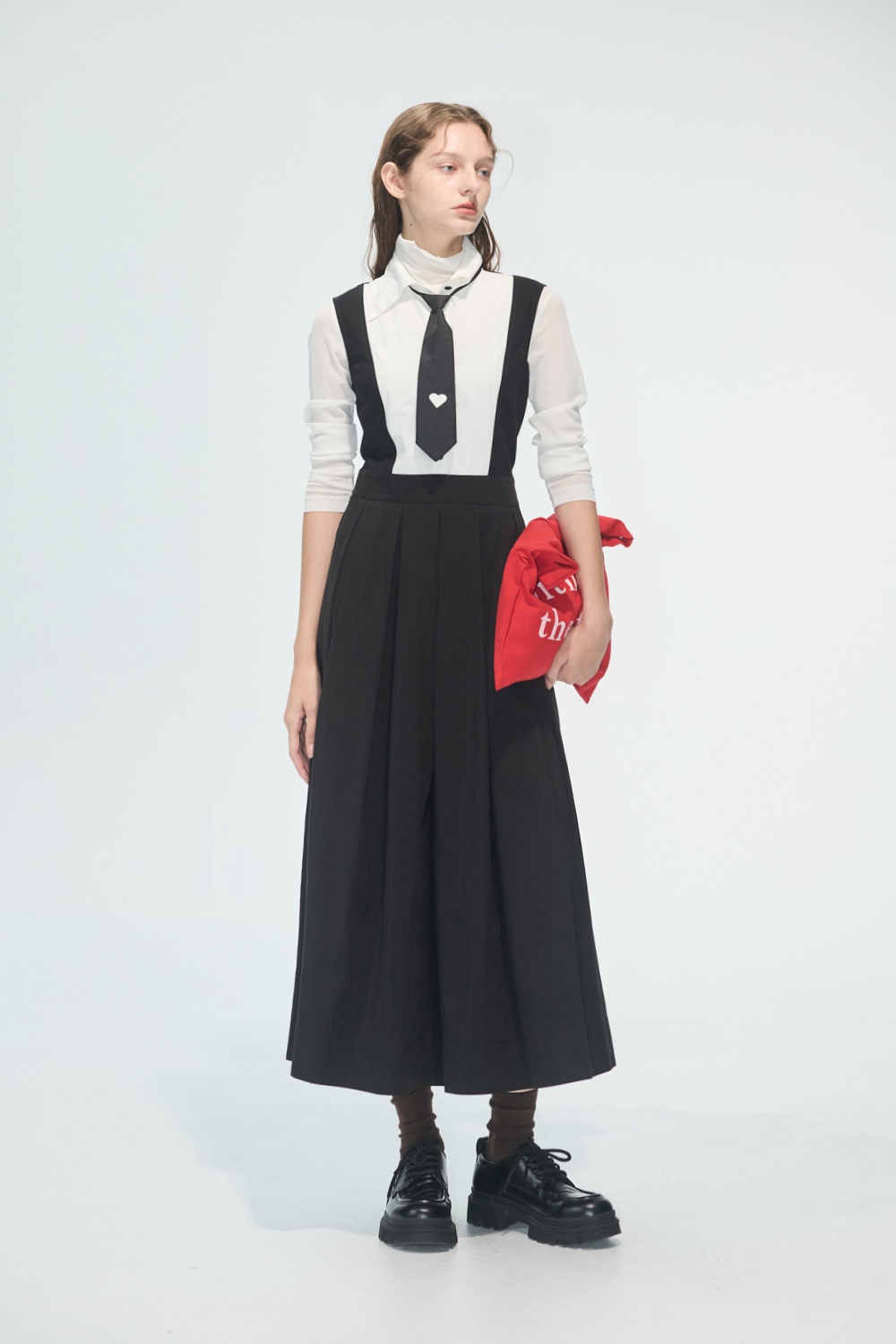 韓系通勤配色百摺連身洋裝 - 神祕純黑