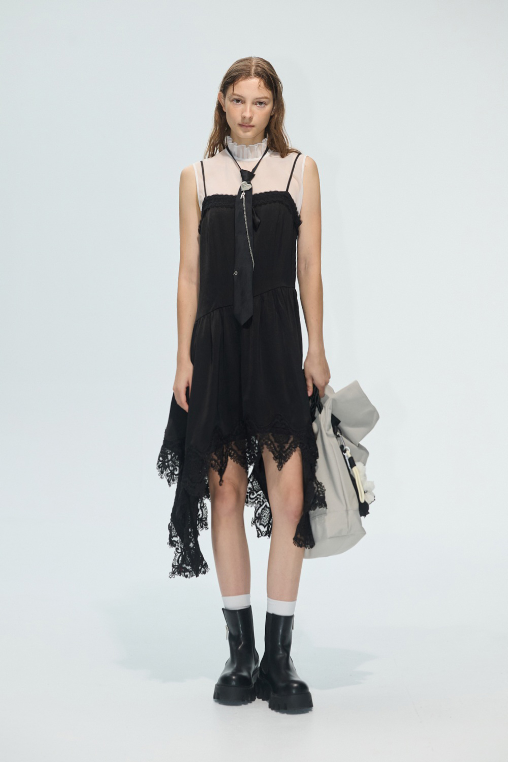 小復古vintage蕾絲花邊細肩帶洋裝 - 神祕純黑