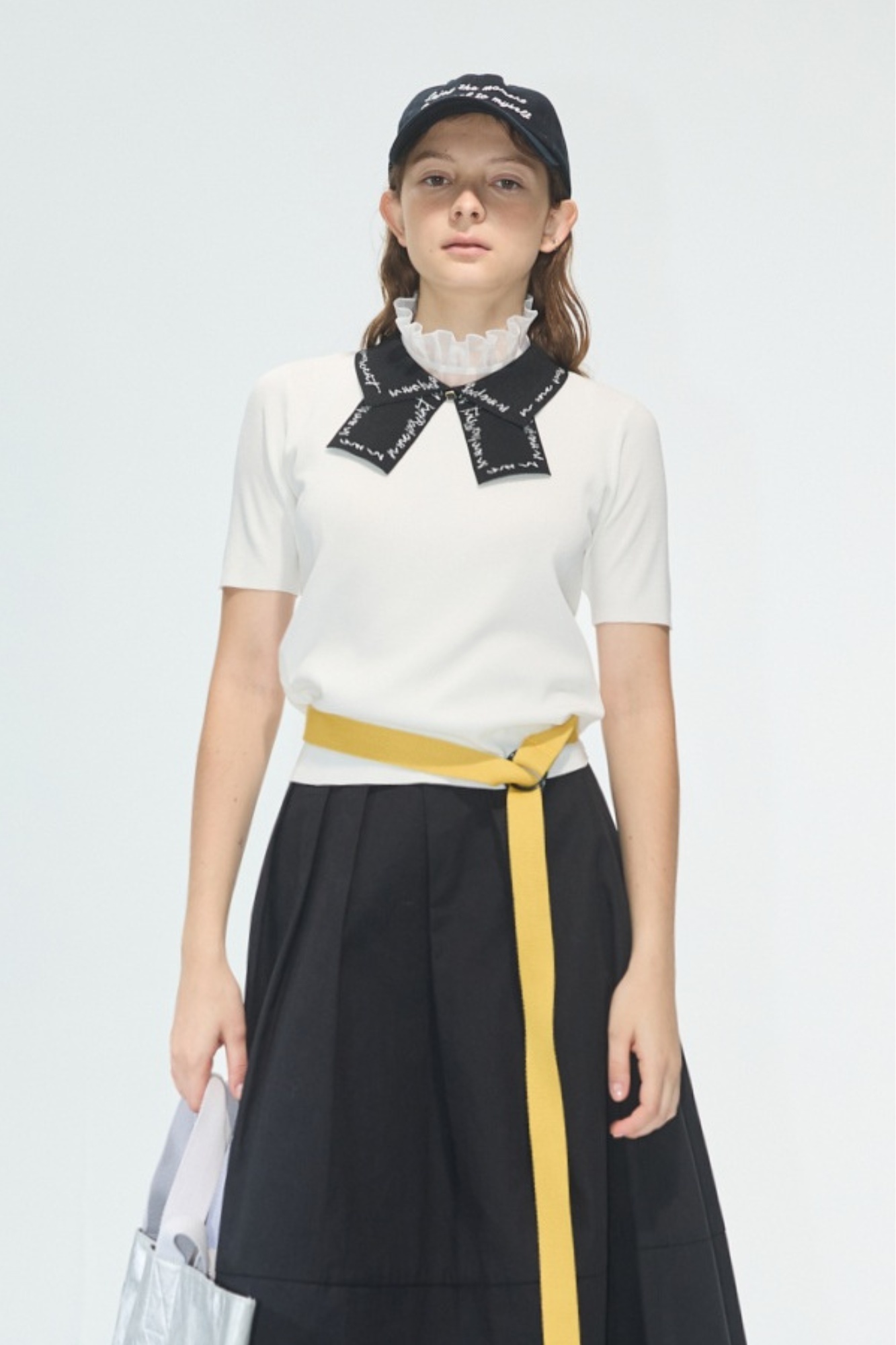 溫柔少女心蝴蝶結領片針織上衣 - 無瑕純白