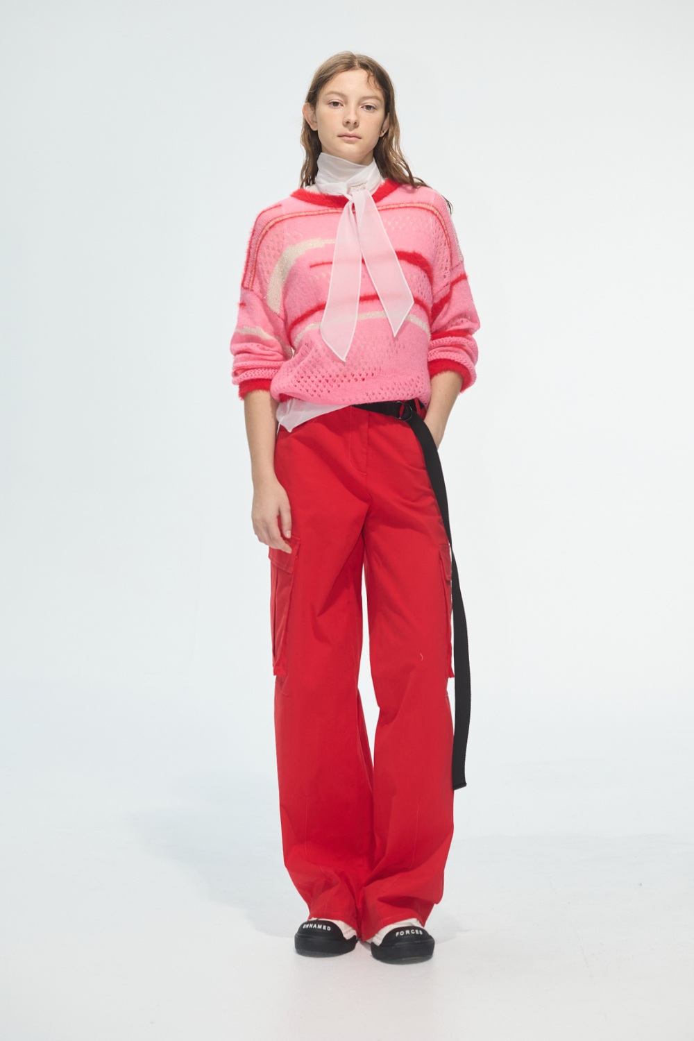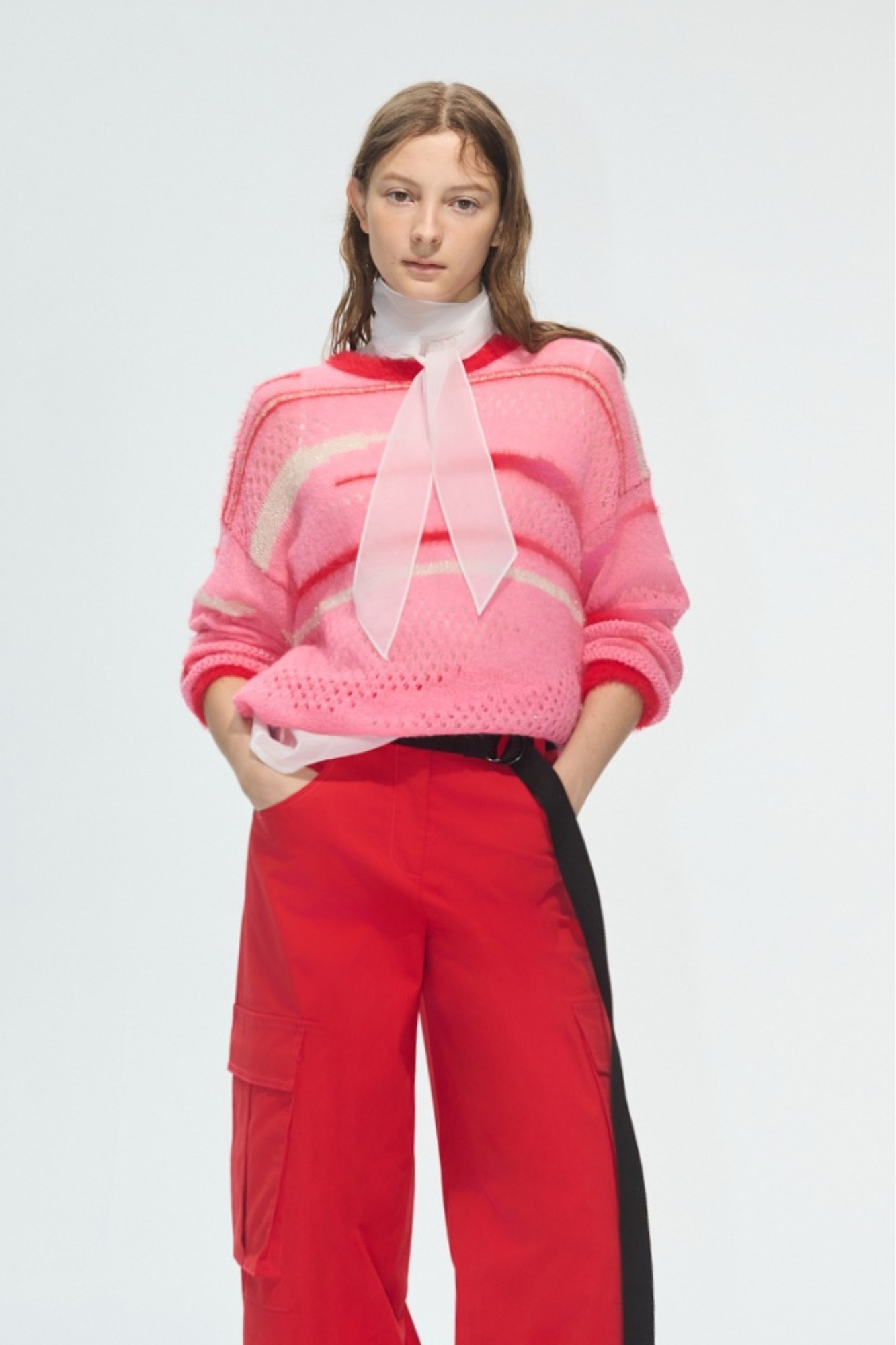 甜甜莓粉配色簍空毛衣 - 古典藕粉