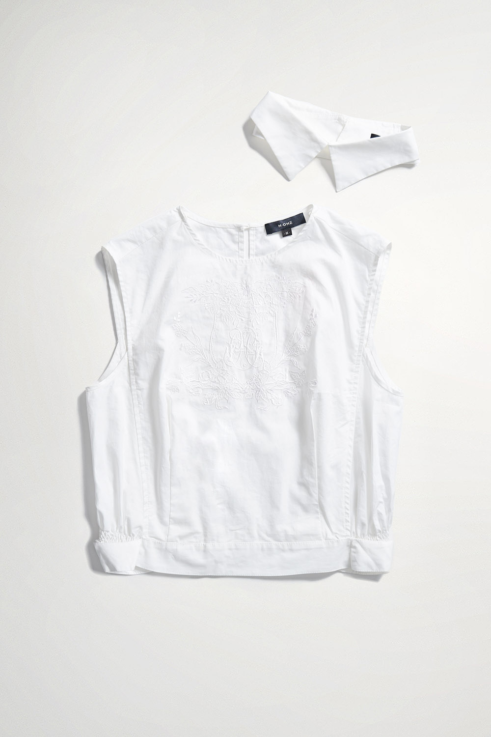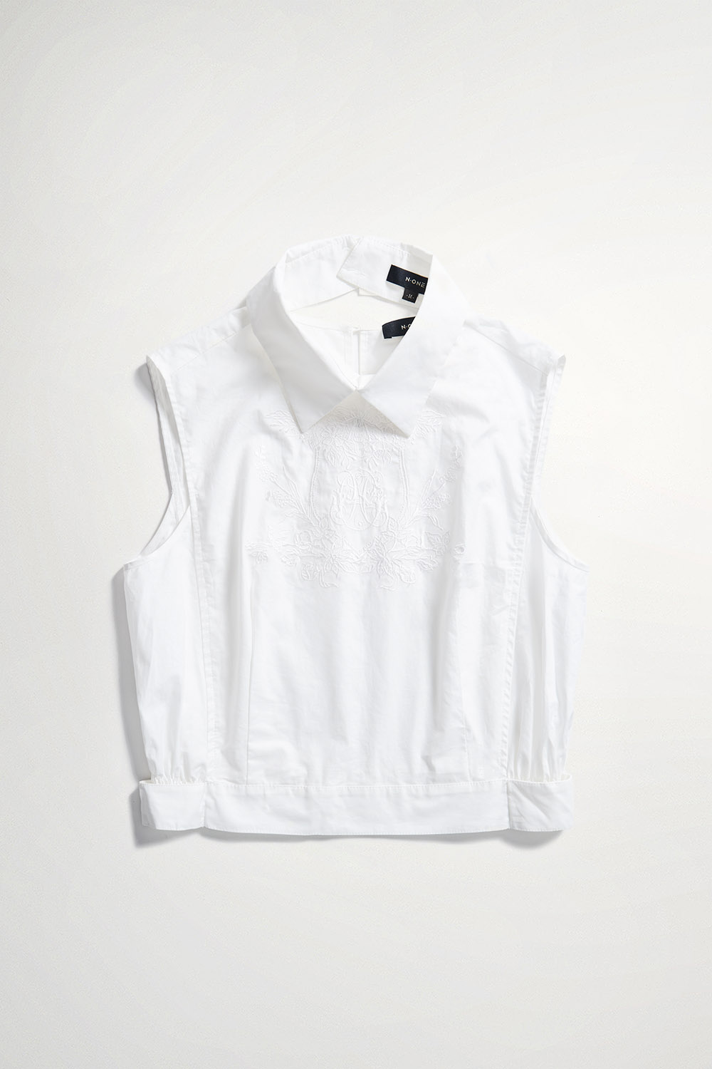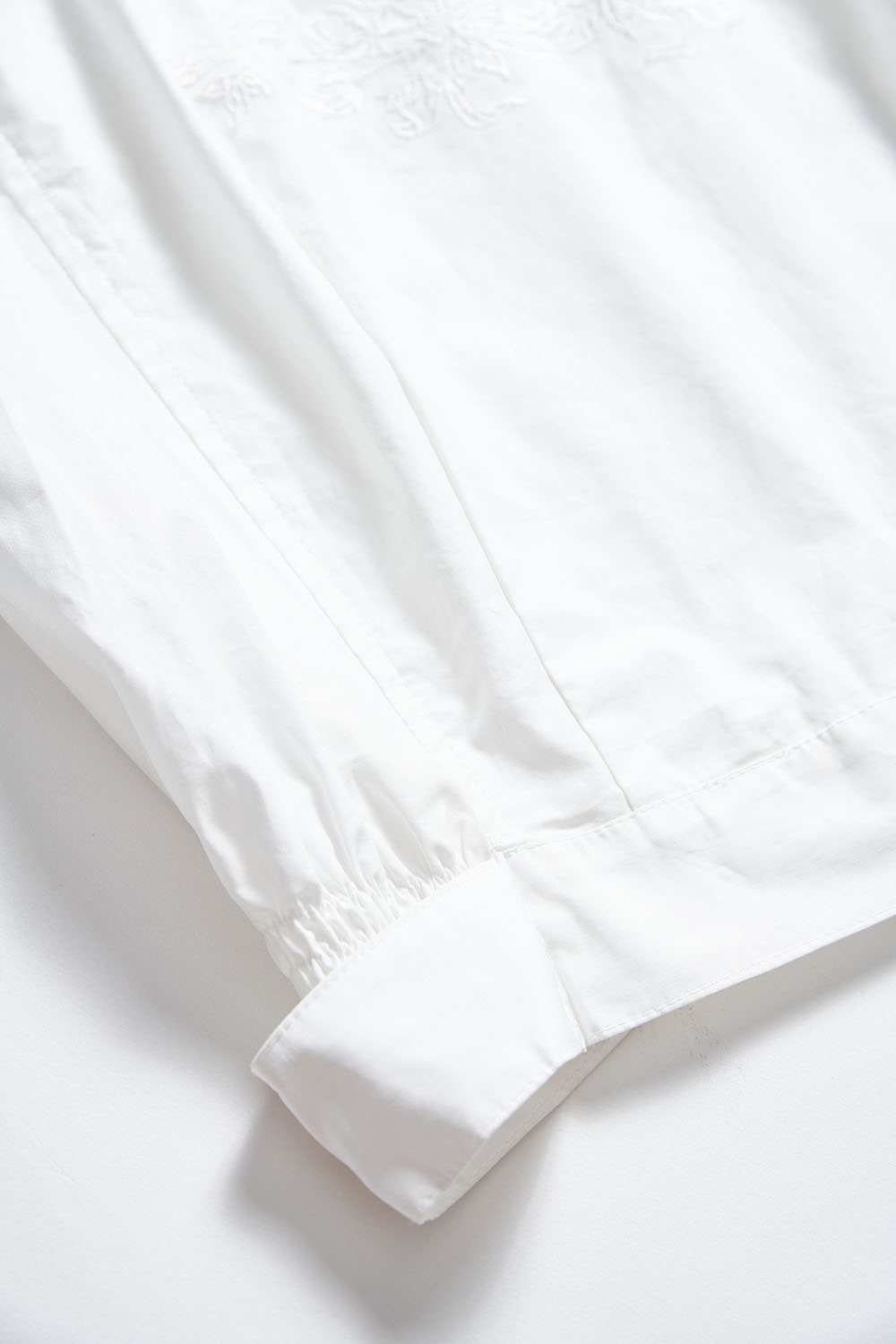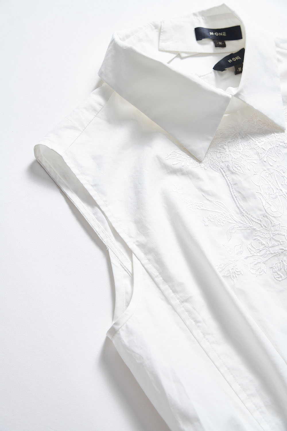 獨佔精緻刺繡設計收腰翻領上衣(附襯衫領片) - 無瑕純白, L