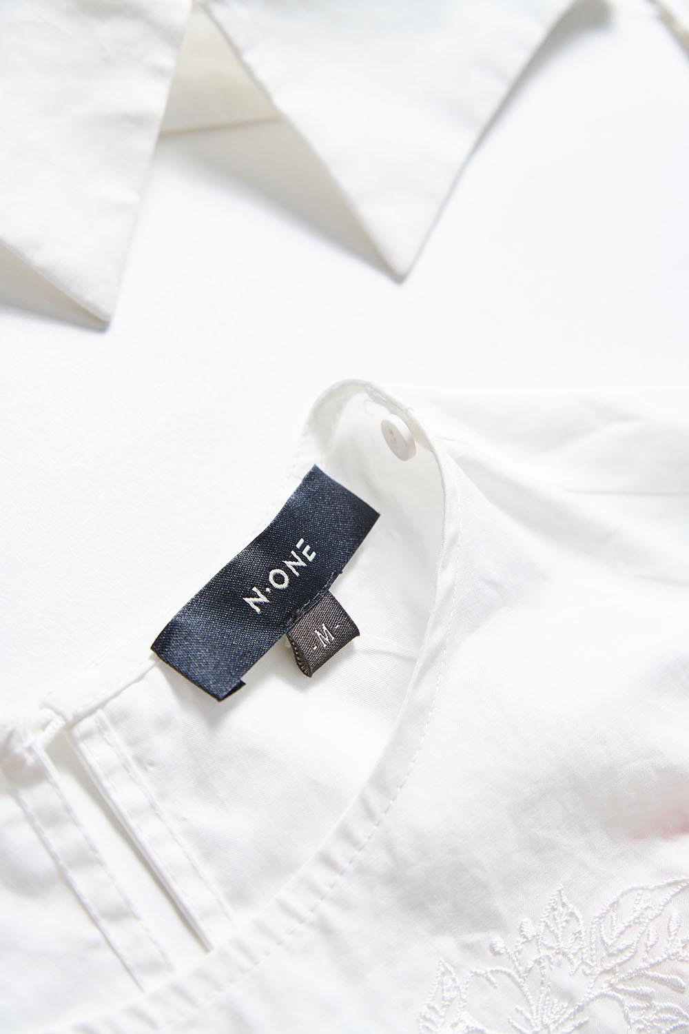 獨佔精緻刺繡設計收腰翻領上衣(附襯衫領片) - 無瑕純白, M