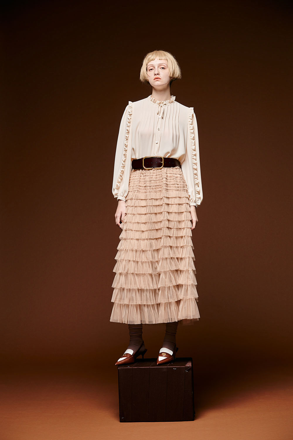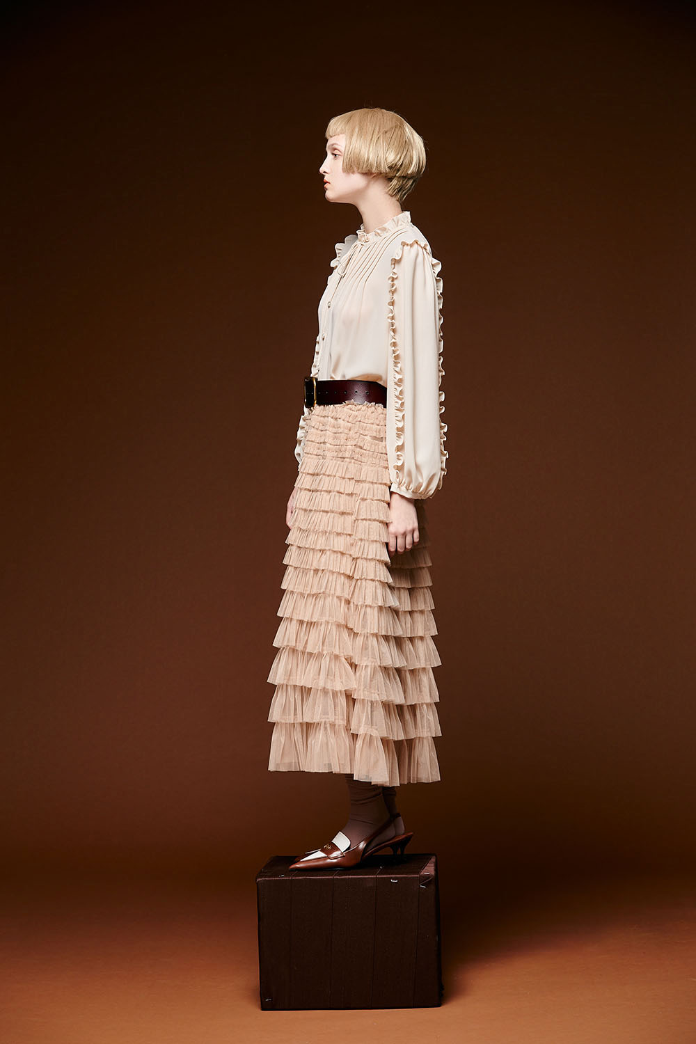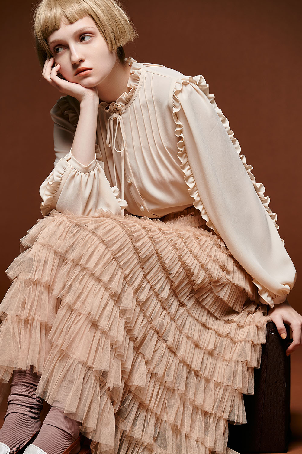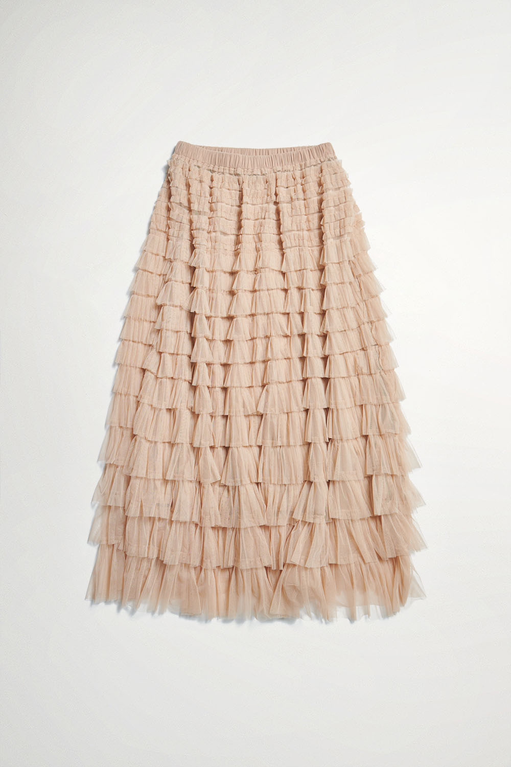 韻致高調細褶層次長裙 - 既睡粉黛, F