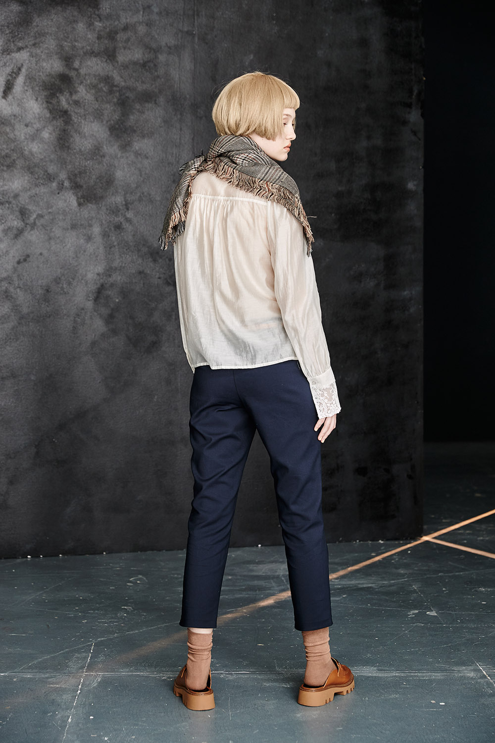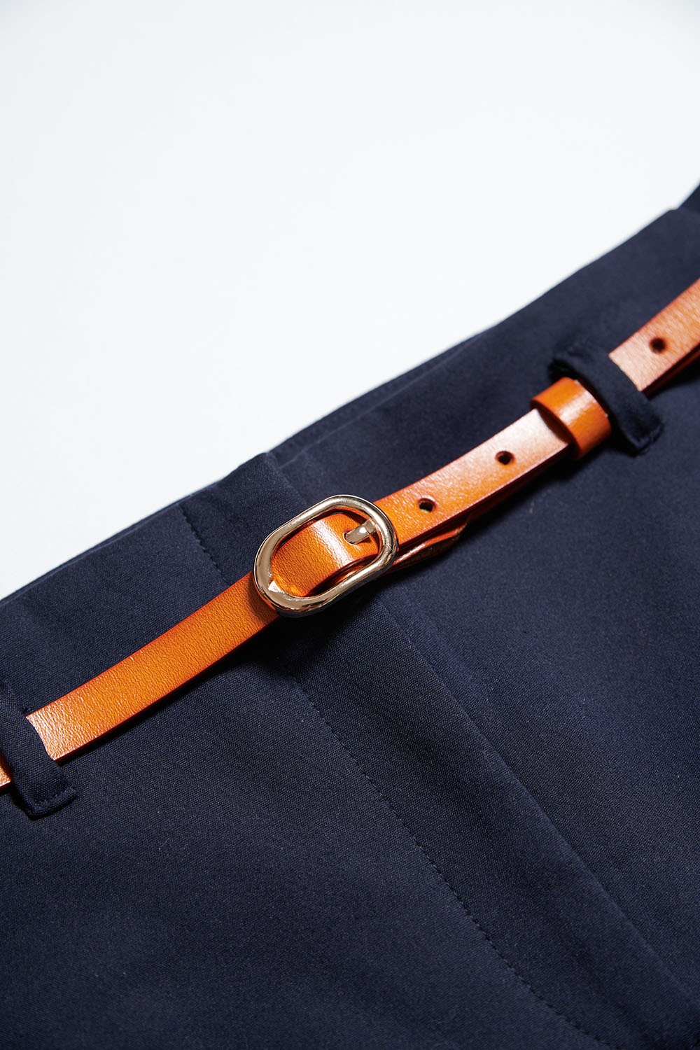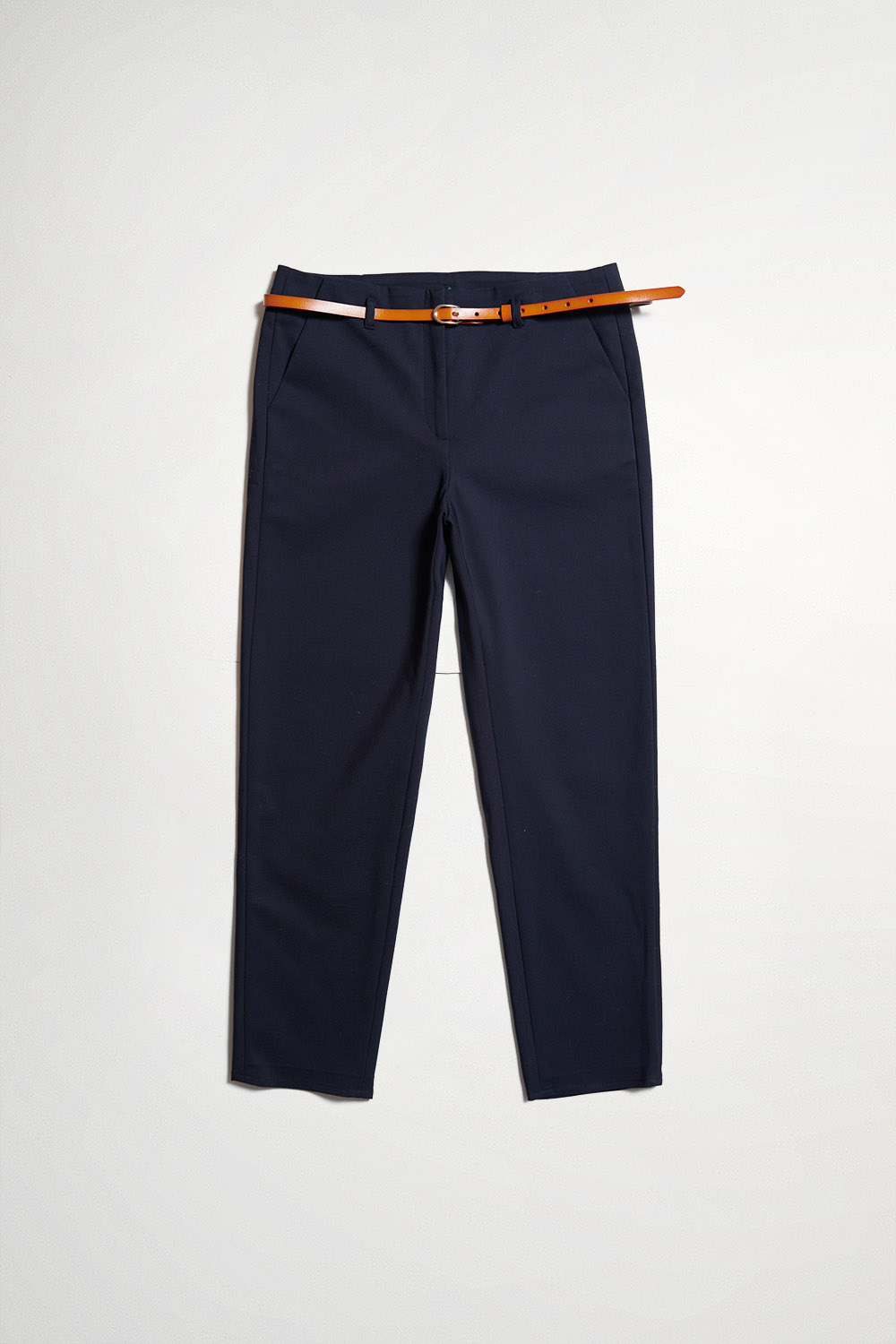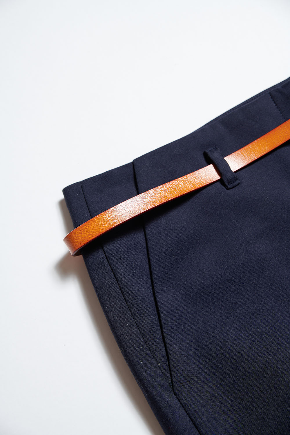 寧靜等待立體中線窄管褲(附皮帶) - 寧靜黛藍, S