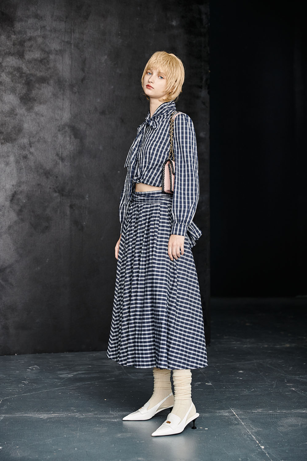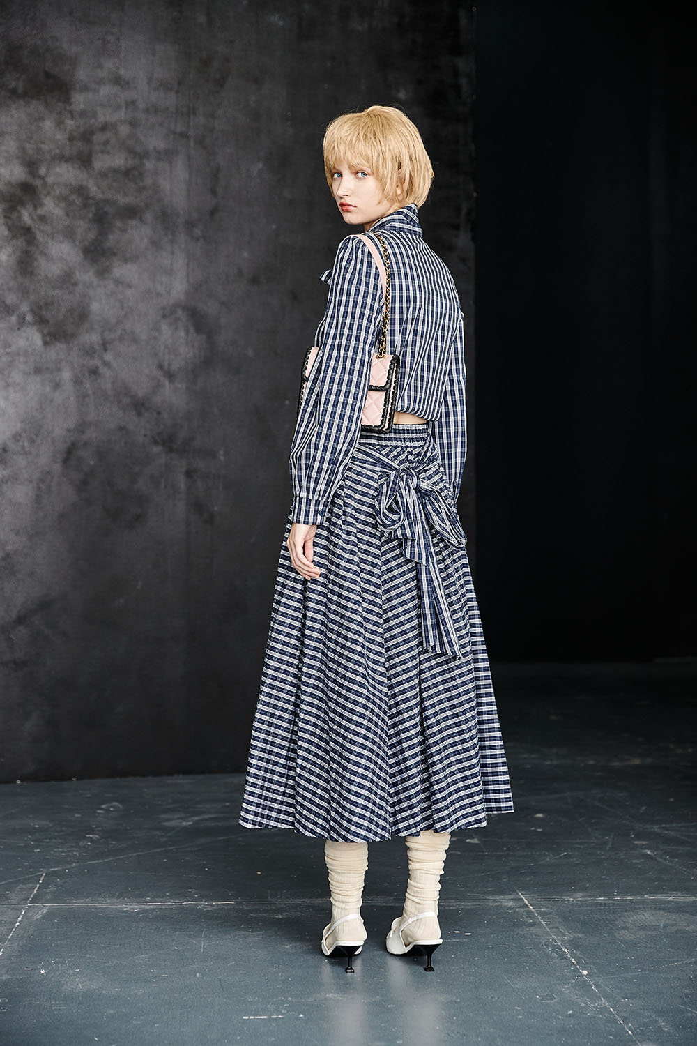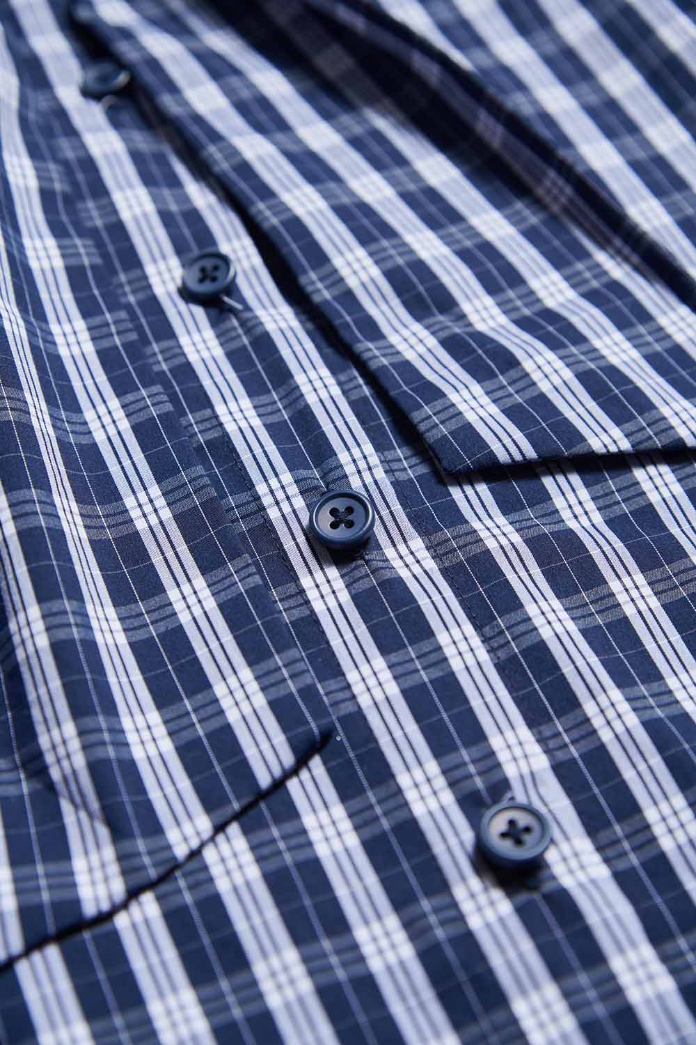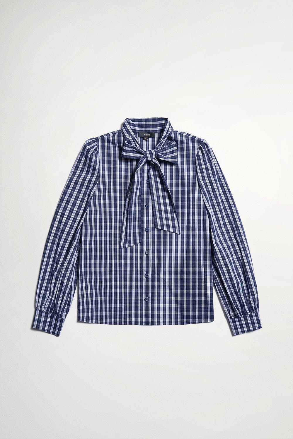美意尋韻領口綁帶格紋襯衫 - 寧靜黛藍, S