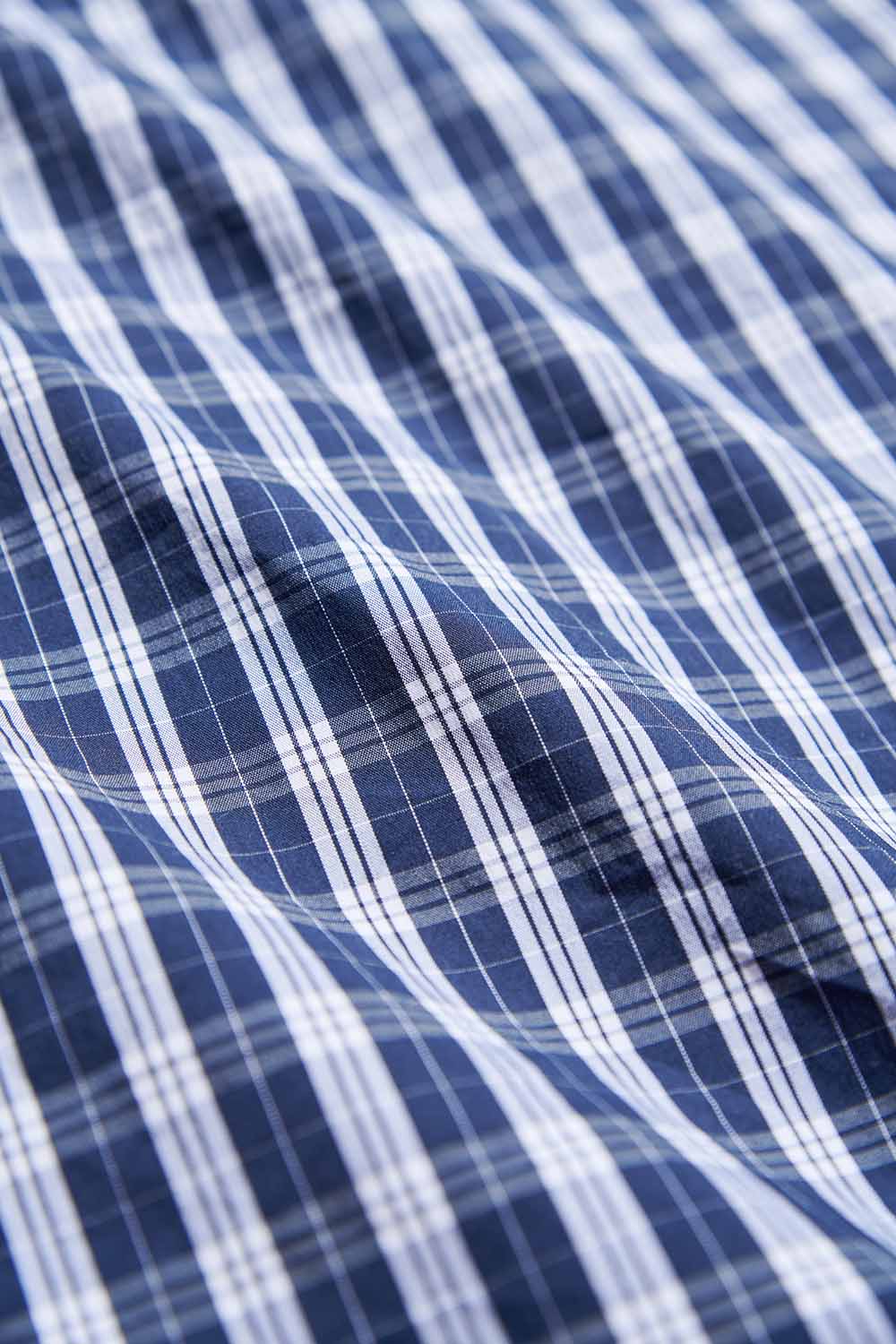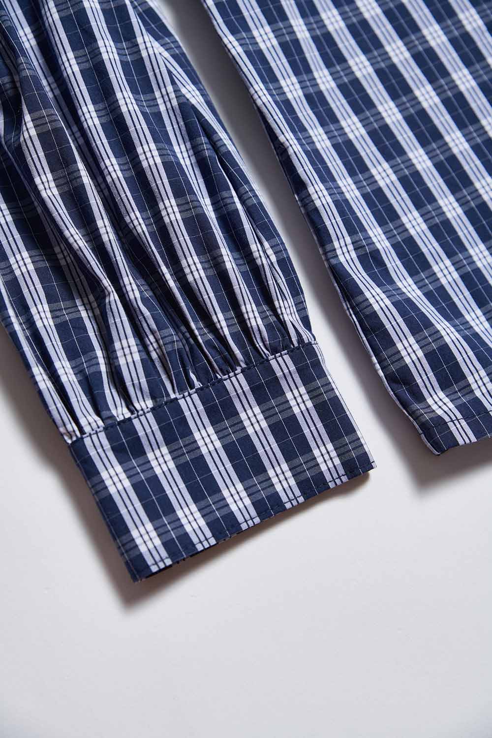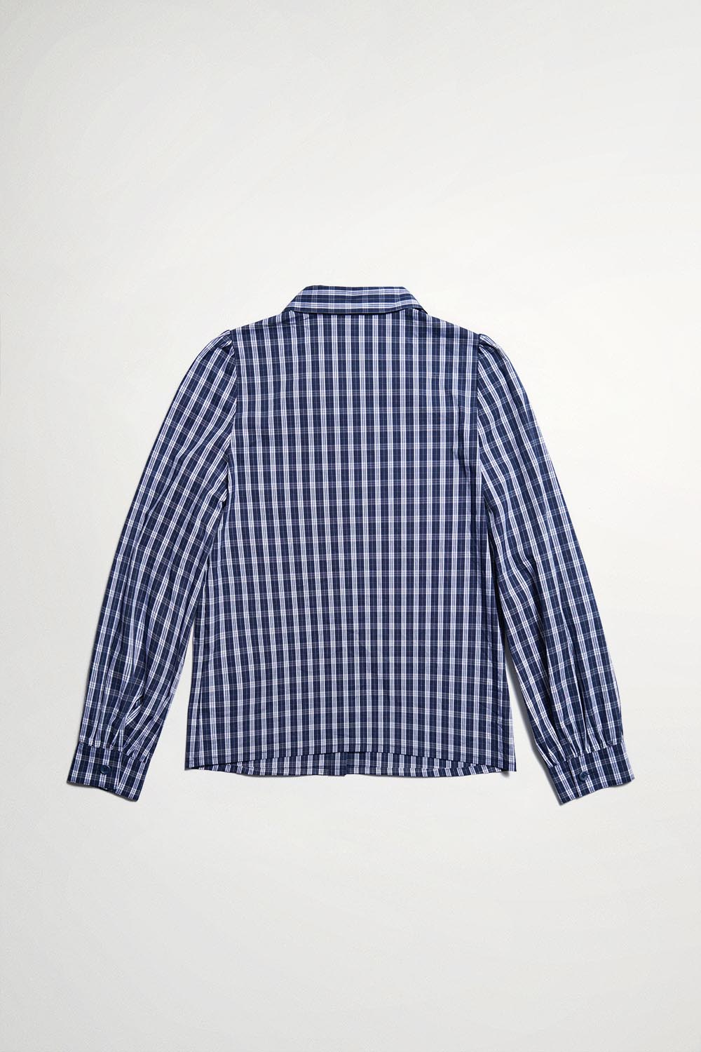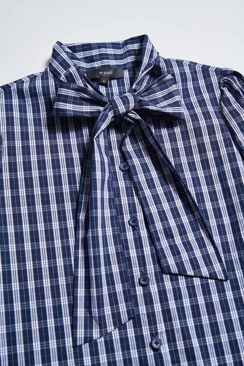 美意尋韻領口綁帶格紋襯衫 - 寧靜黛藍, L