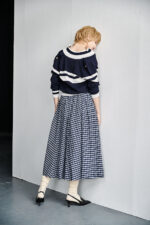 逐光行進格紋細褶長裙(附綁帶) - 寧靜黛藍, S