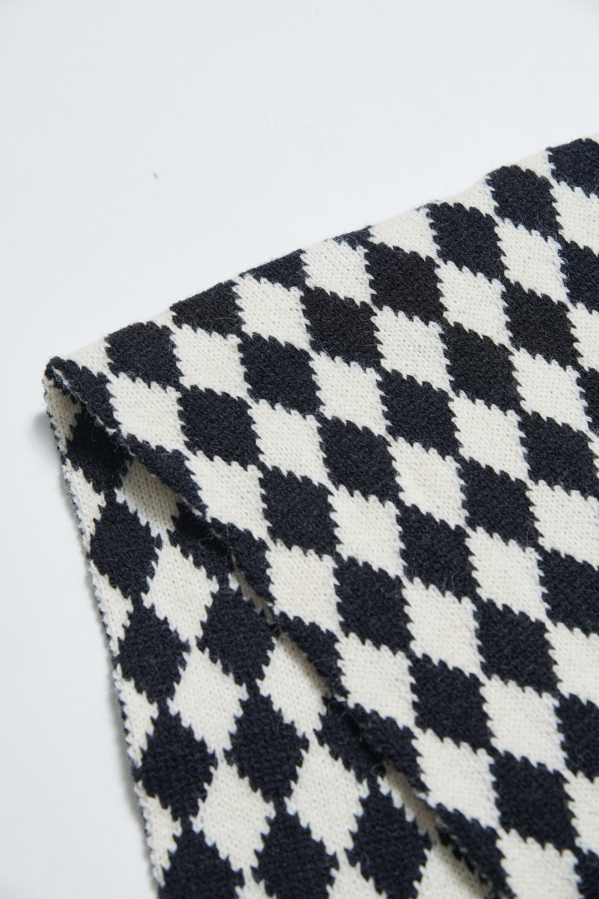遇盼偶意菱格紋毛絨感長•圍巾 - 神祕純黑, F
