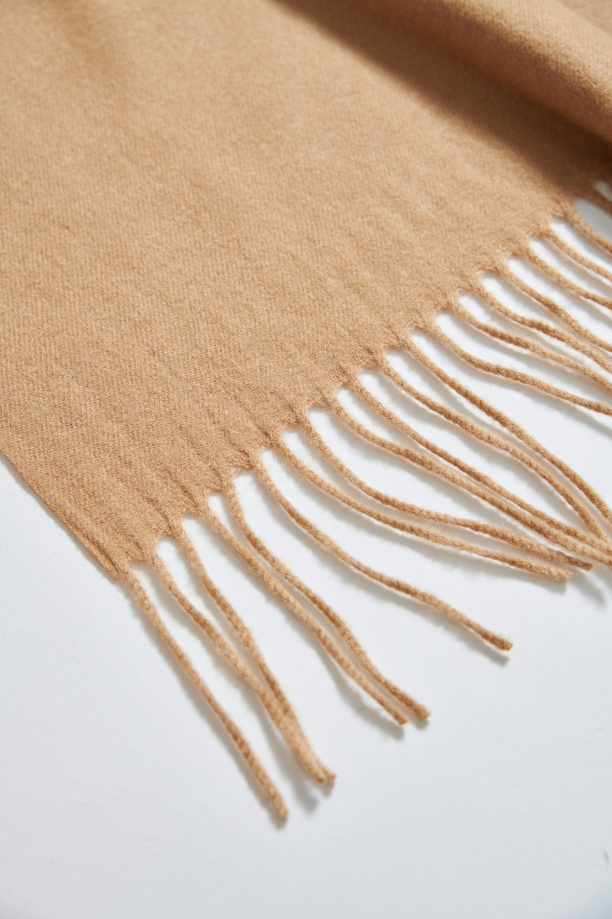 潤影悠見寬版流蘇•圍巾 - 淺亞麻金