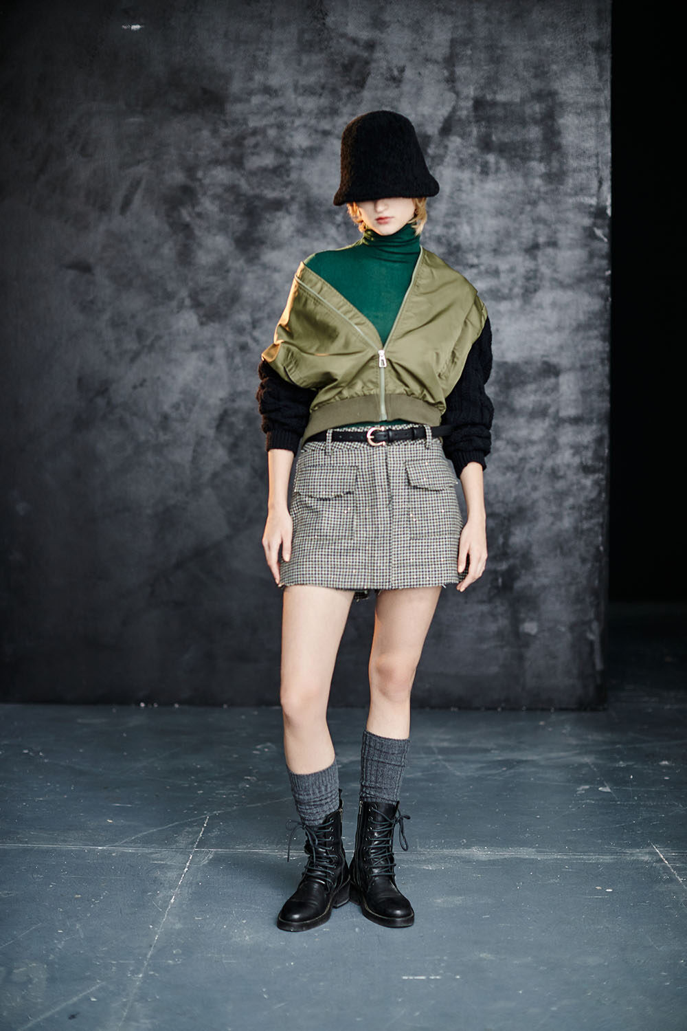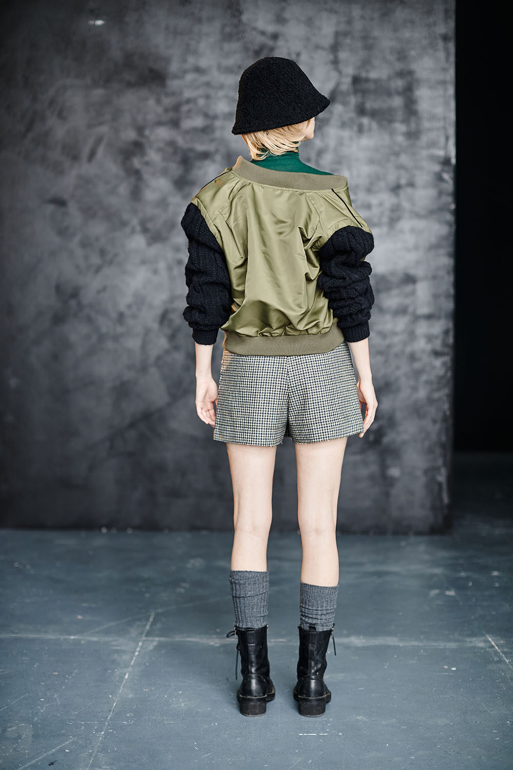 自然烘托千鳥紋毛料褲裙 - 蒼翠欲滴, L