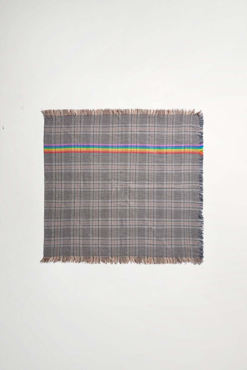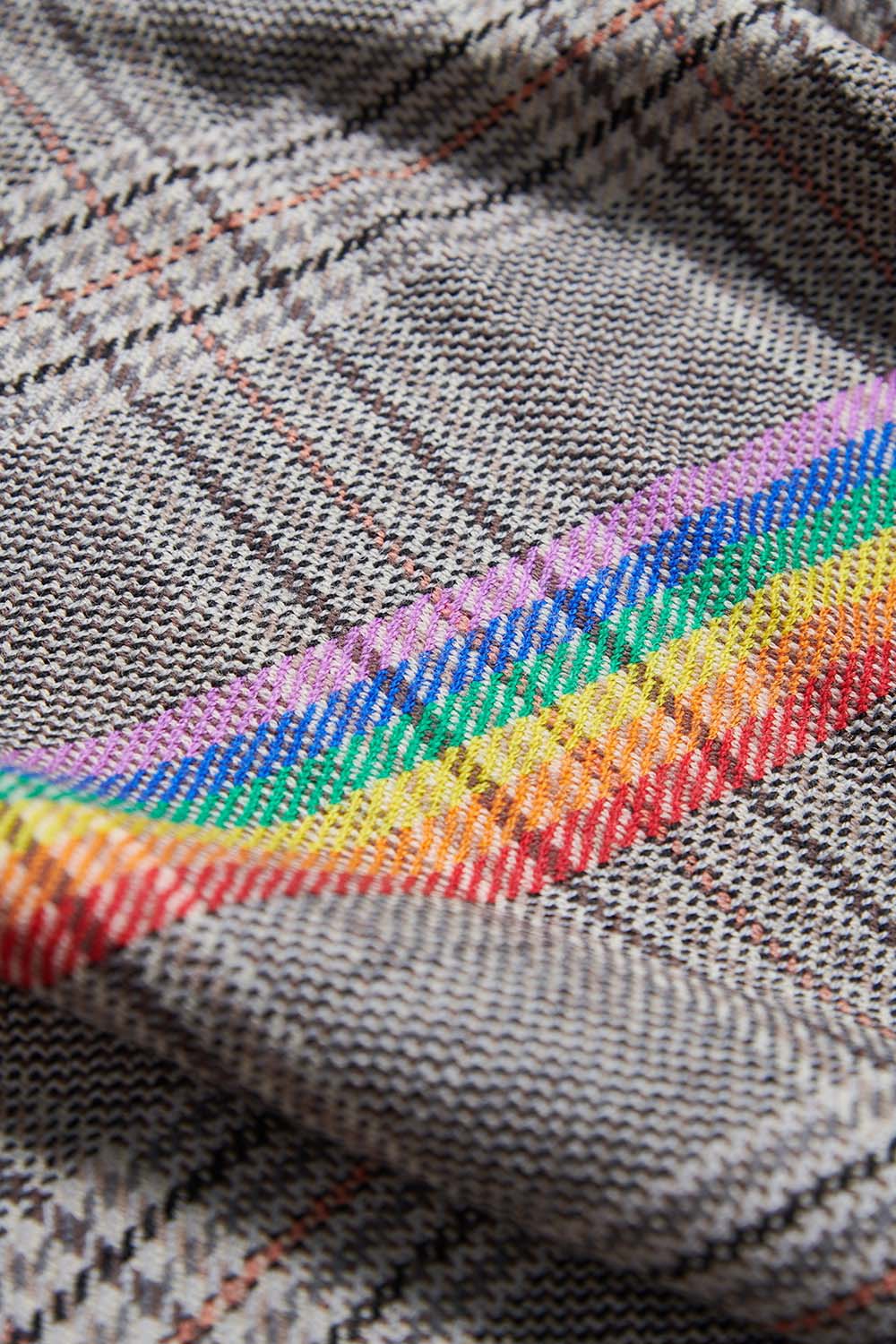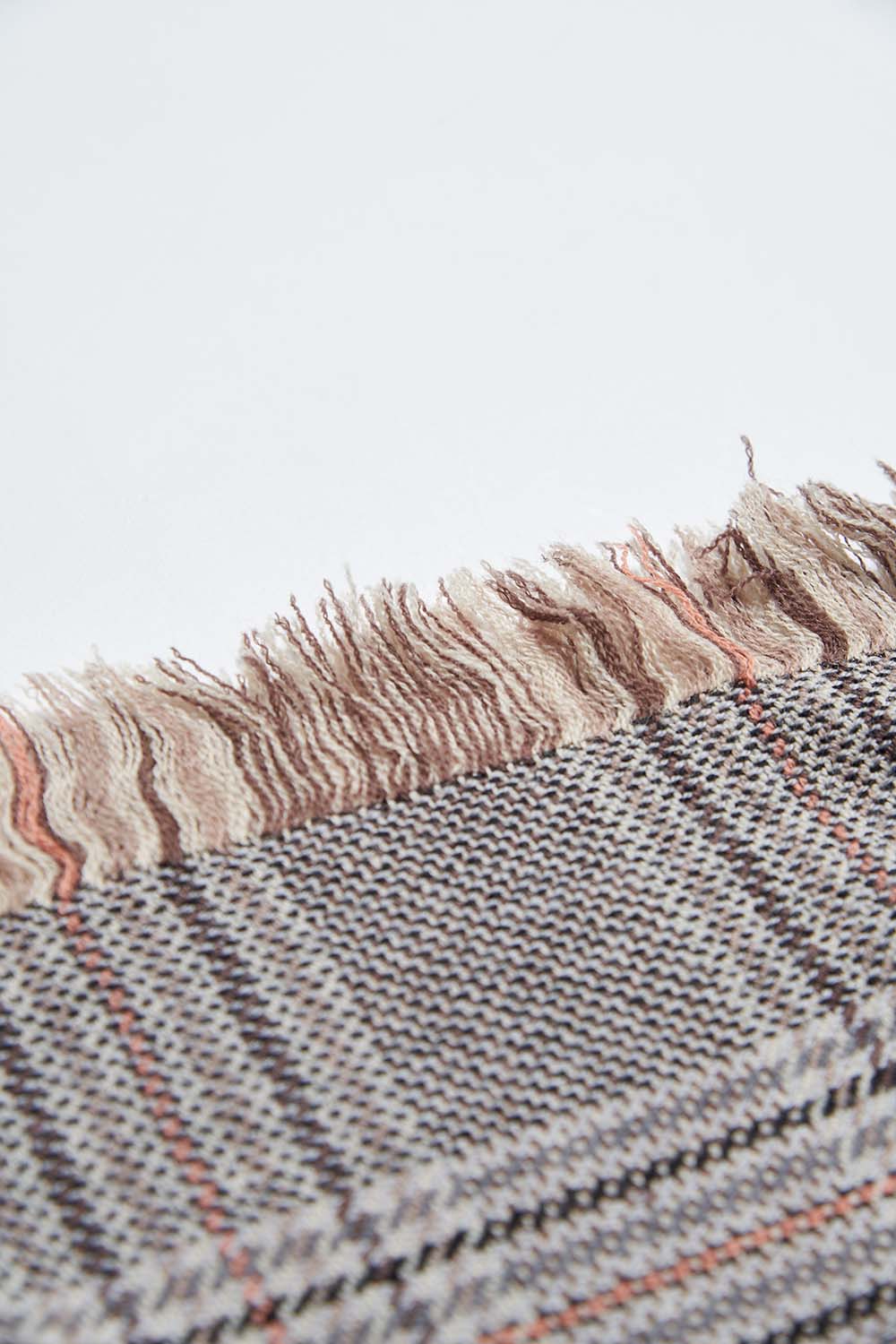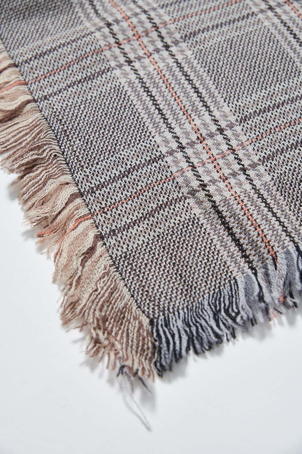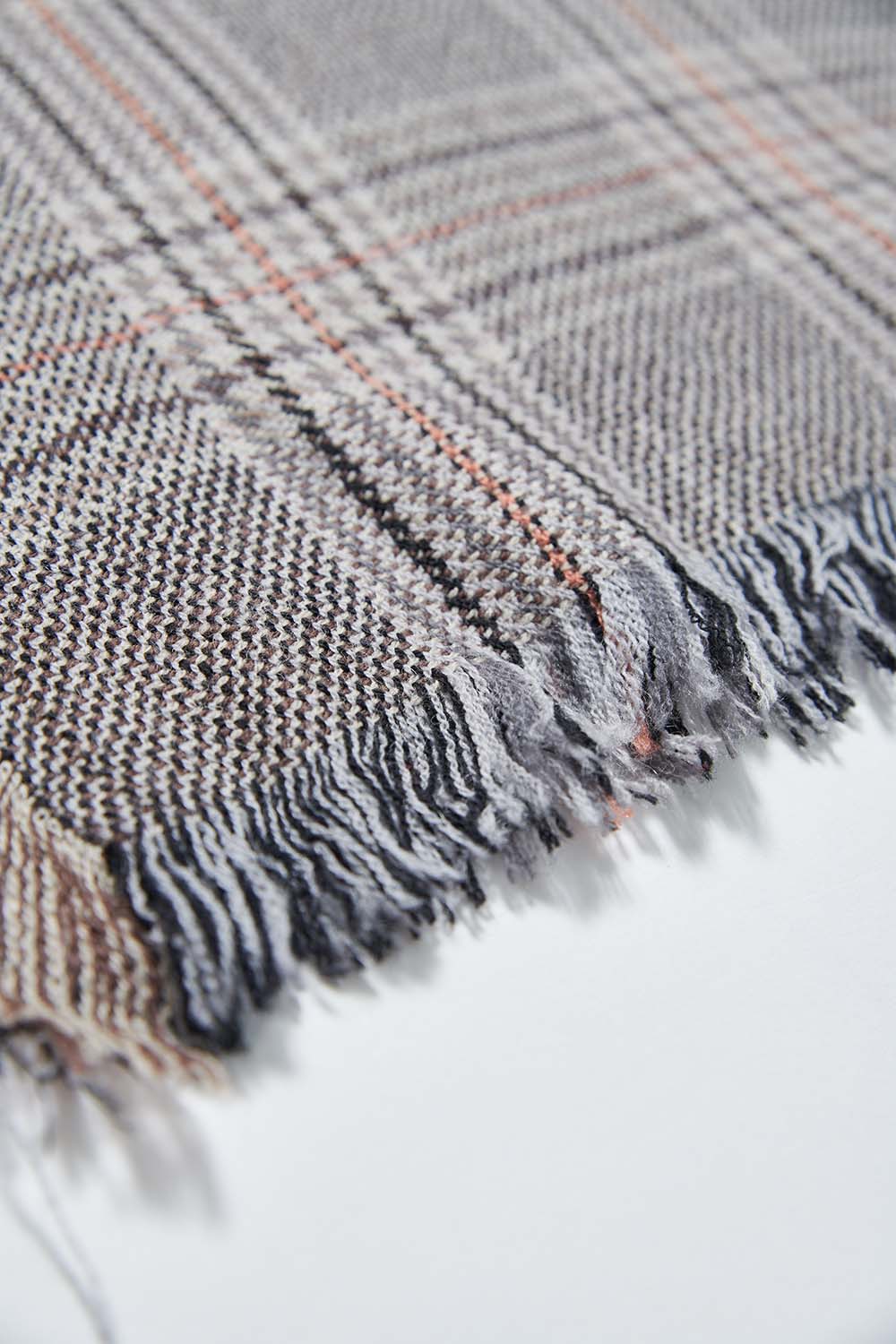 燦爛彩光格紋流蘇•圍巾(100%羊毛) - 沉穩霧灰
