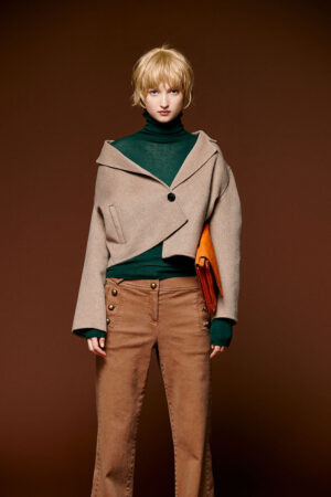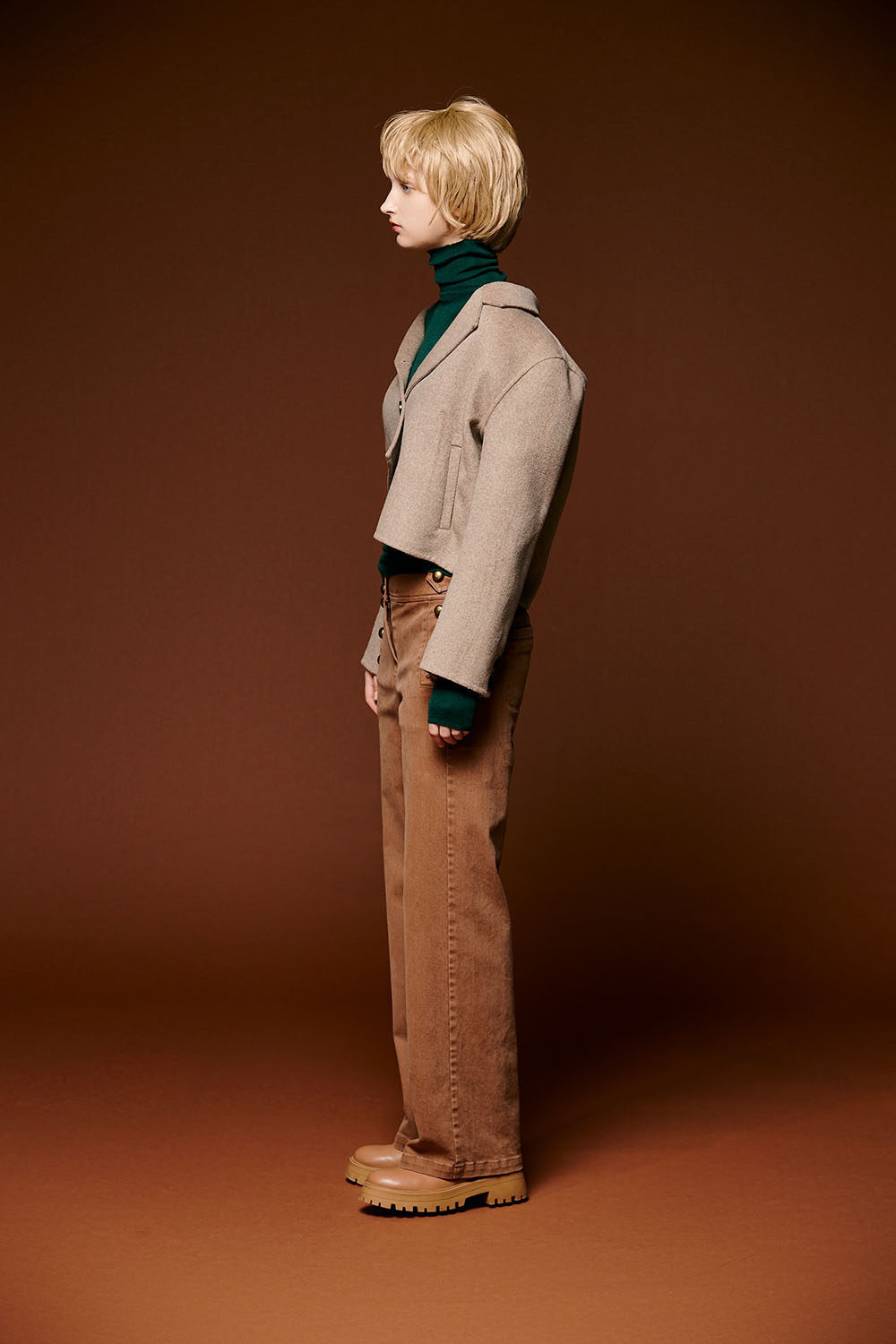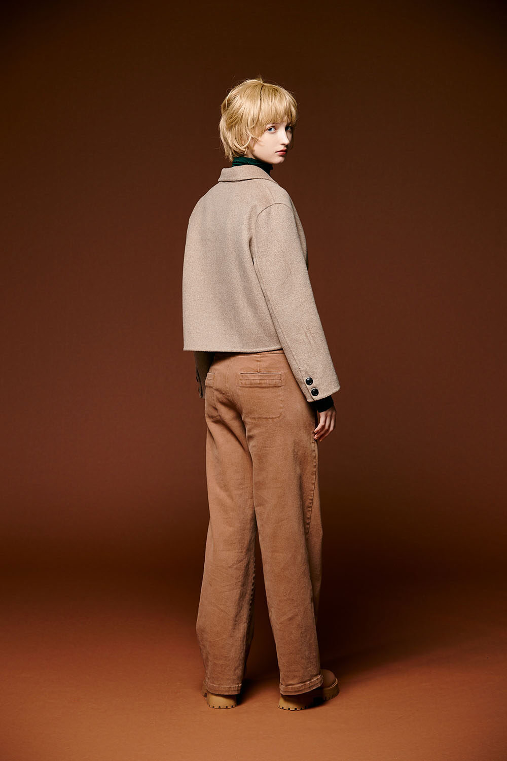與棕同遊短版雙面穿翻領羊毛外套 - 古樸咖啡, M