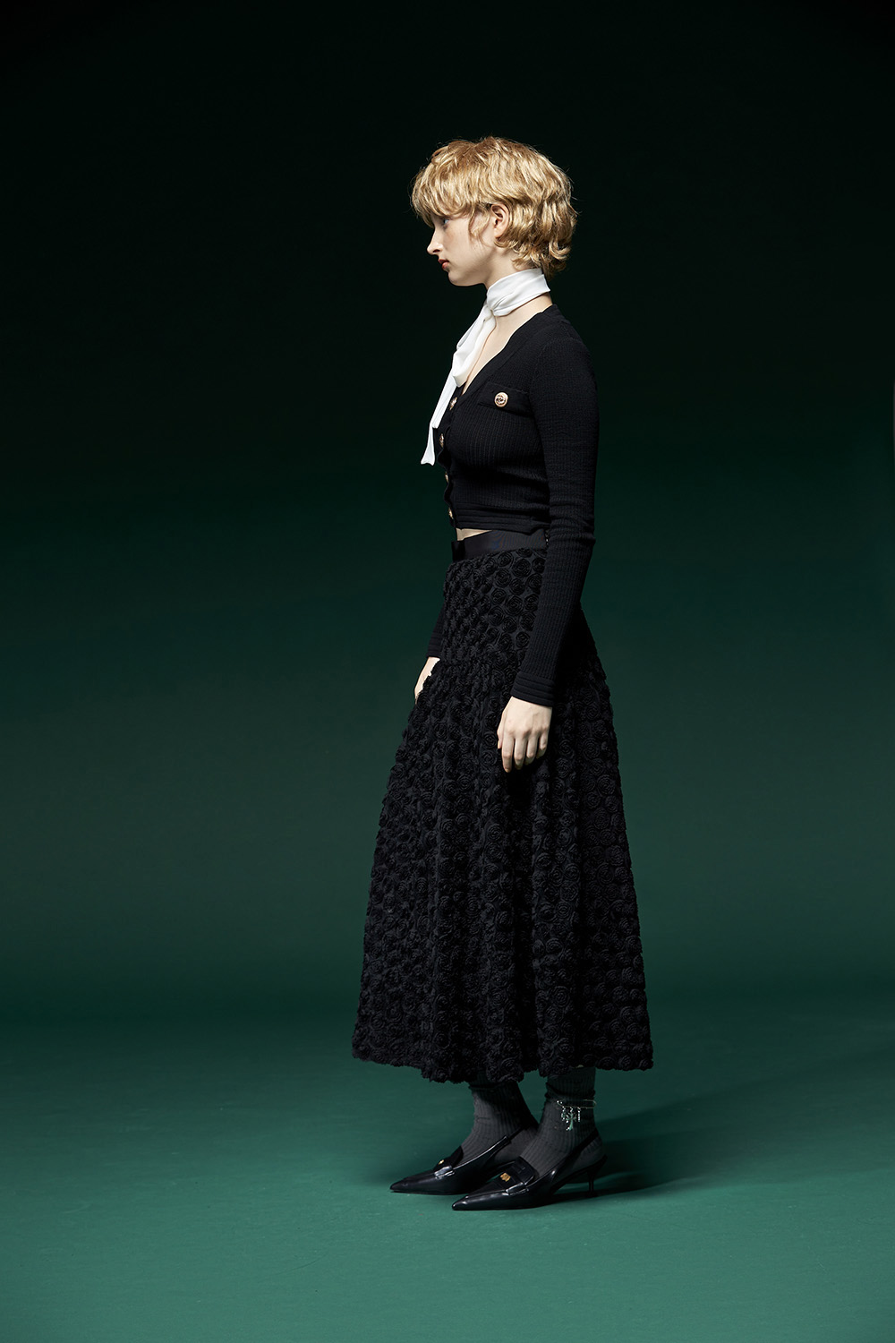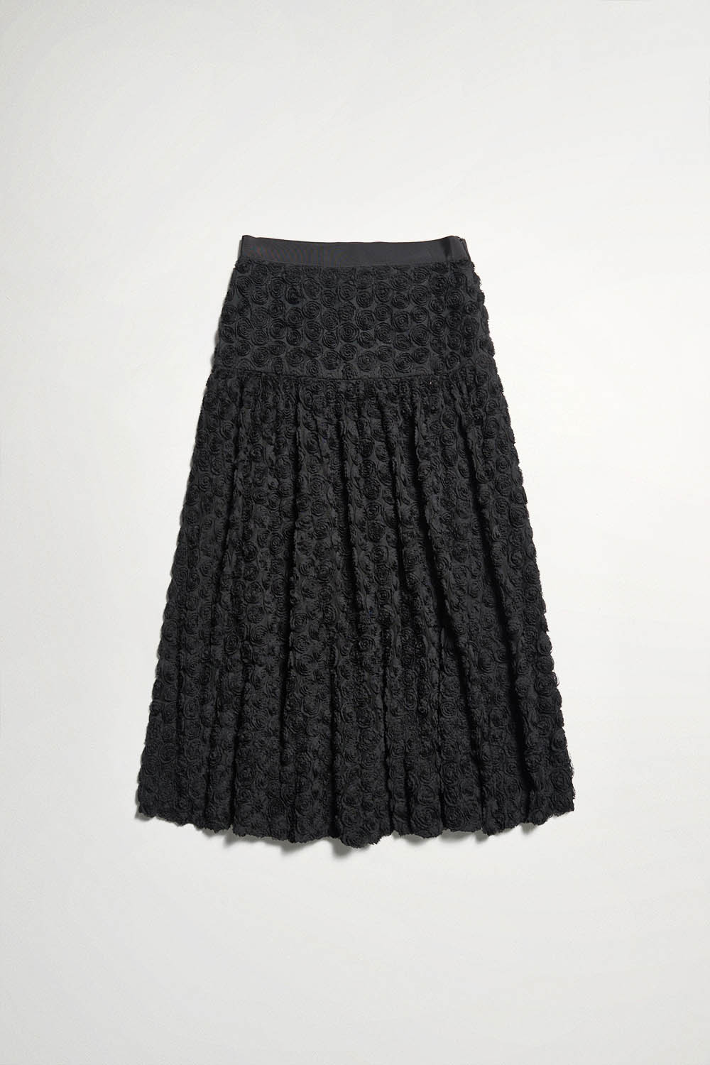 初質花意壓紋細褶長裙 - 神祕純黑, F