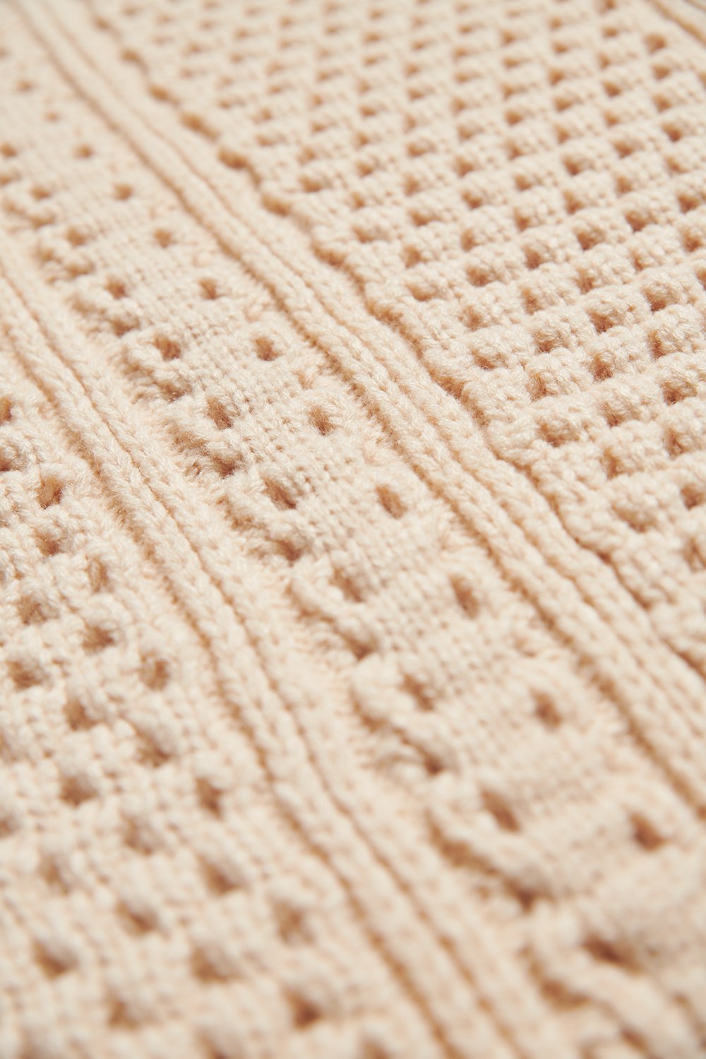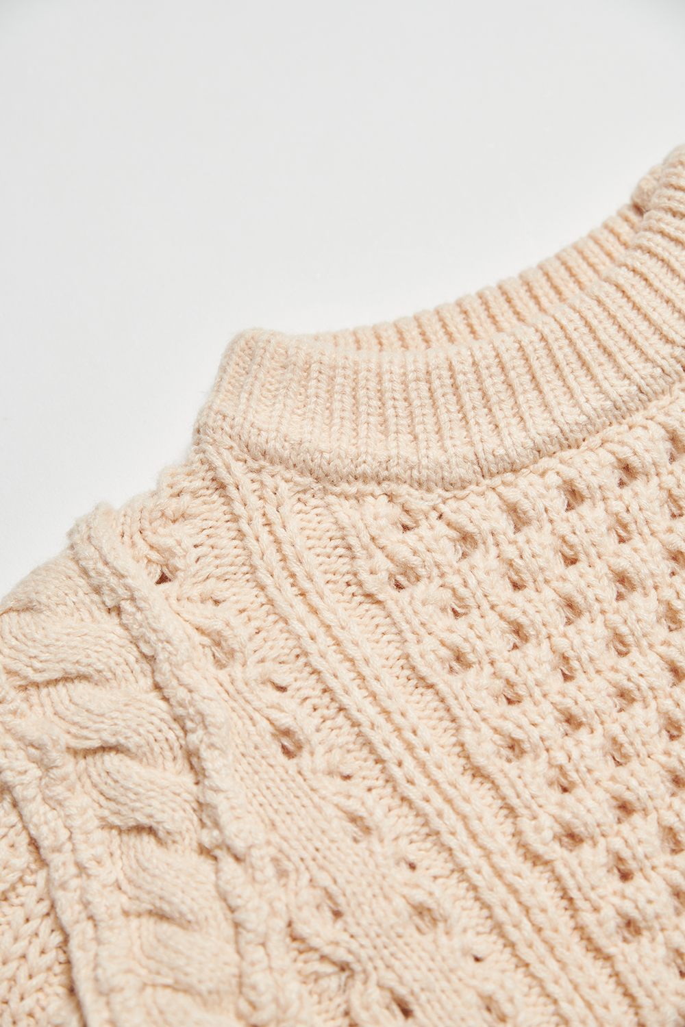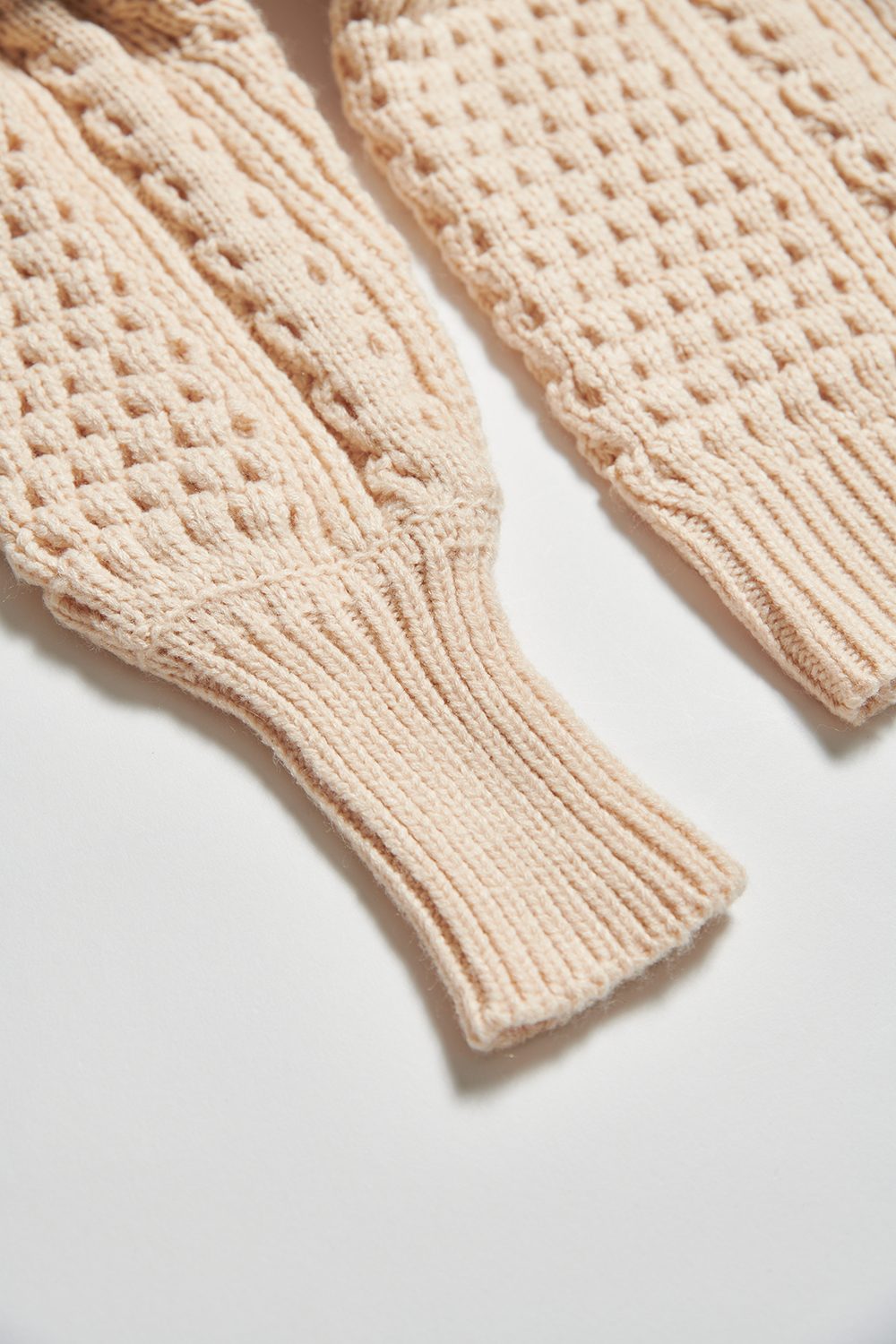 暮煦慵懶粗針織寬鬆長版上衣 - 奶油杏色, F