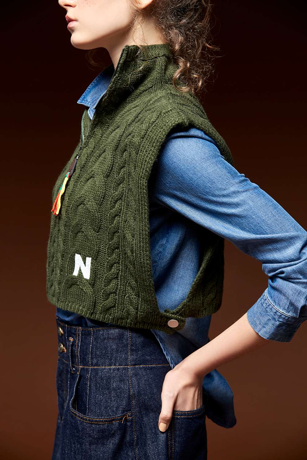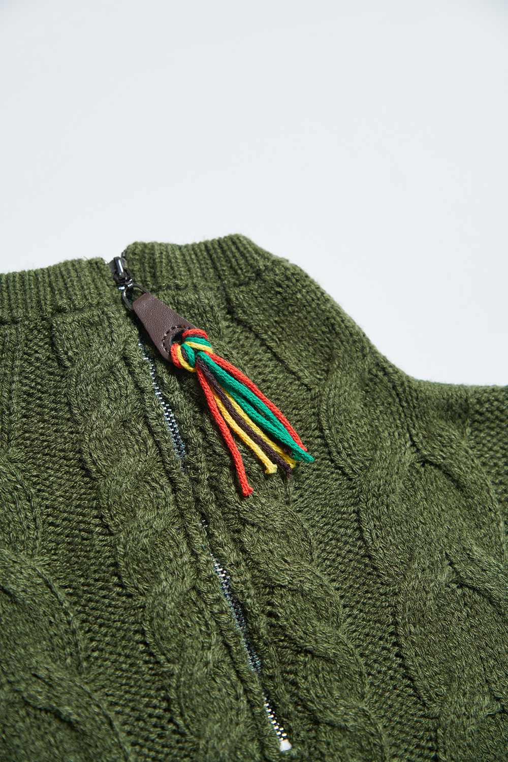 側邊以鈕釦成為亮點 麻花織紋更顯自然舒適