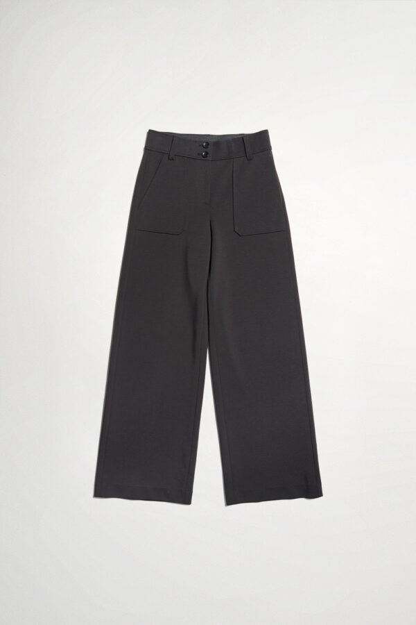 與心啟程俐落鬆緊直筒寬褲 - 神祕純黑, L