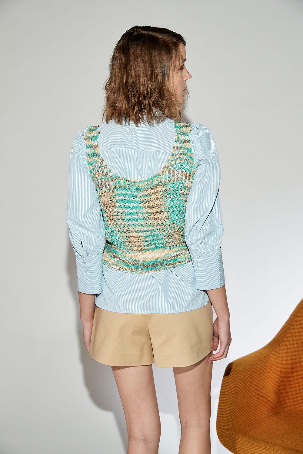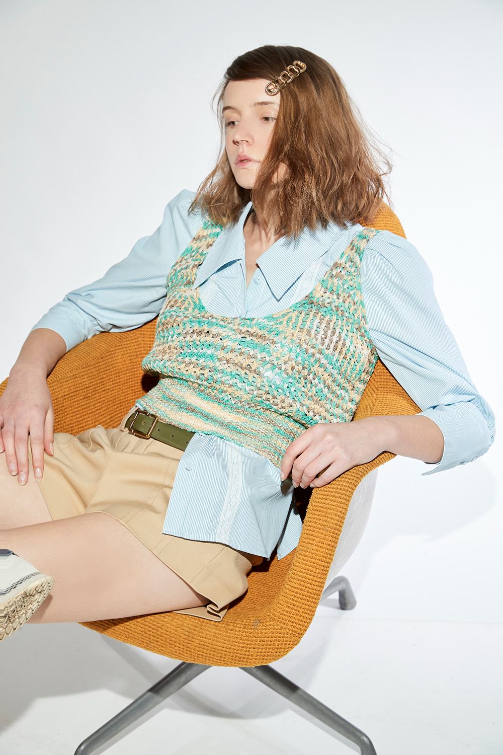 馥美注入粗針織低領收腰背心 - 平靜翠綠, F