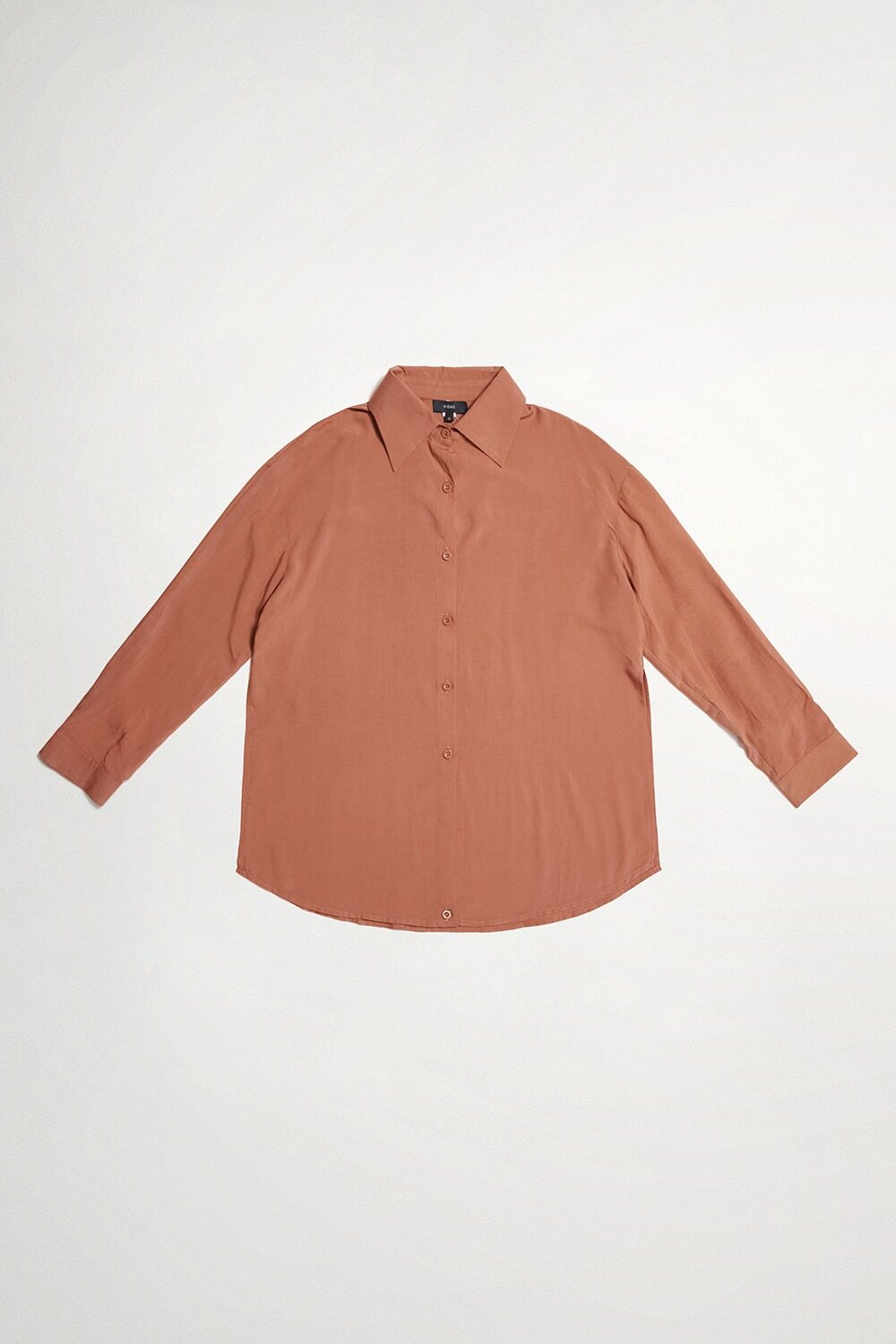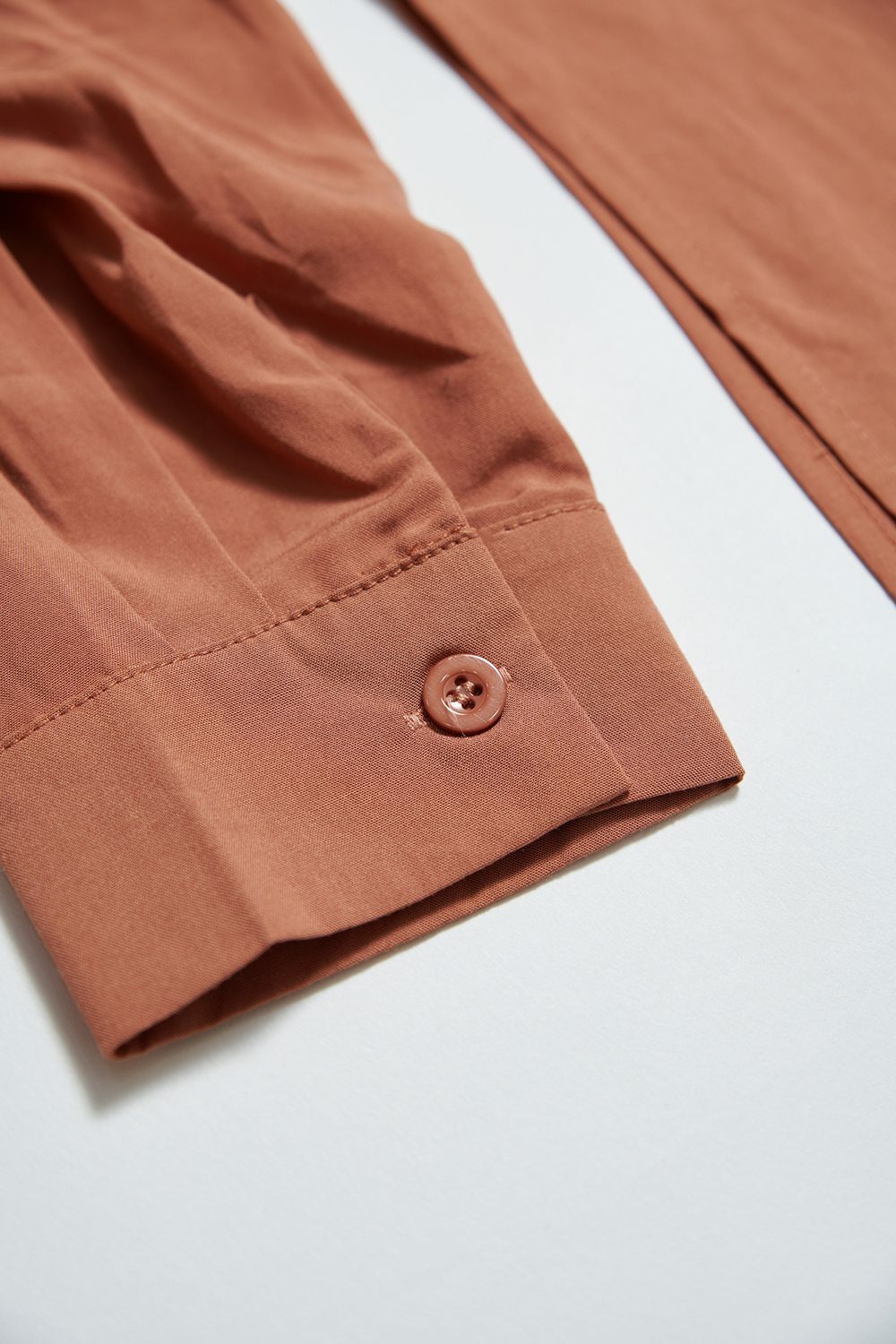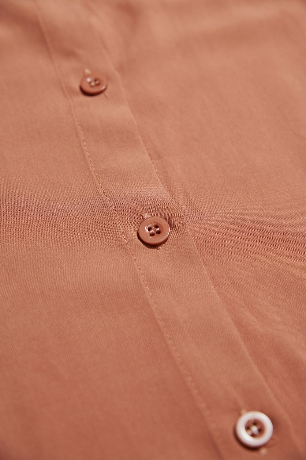 自在美絮下襬綁帶兩穿式收腰襯衫 - 古樸咖啡, L