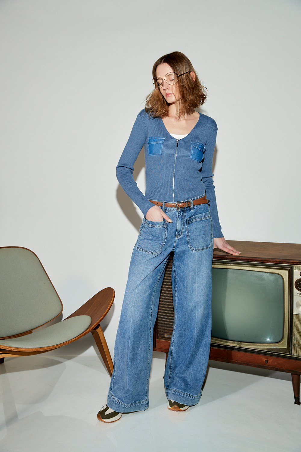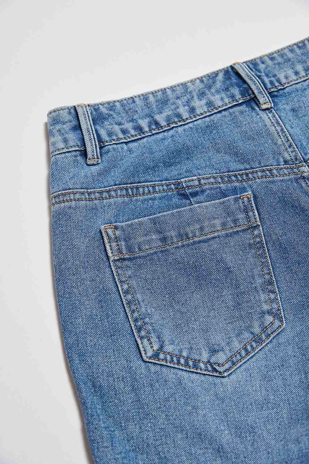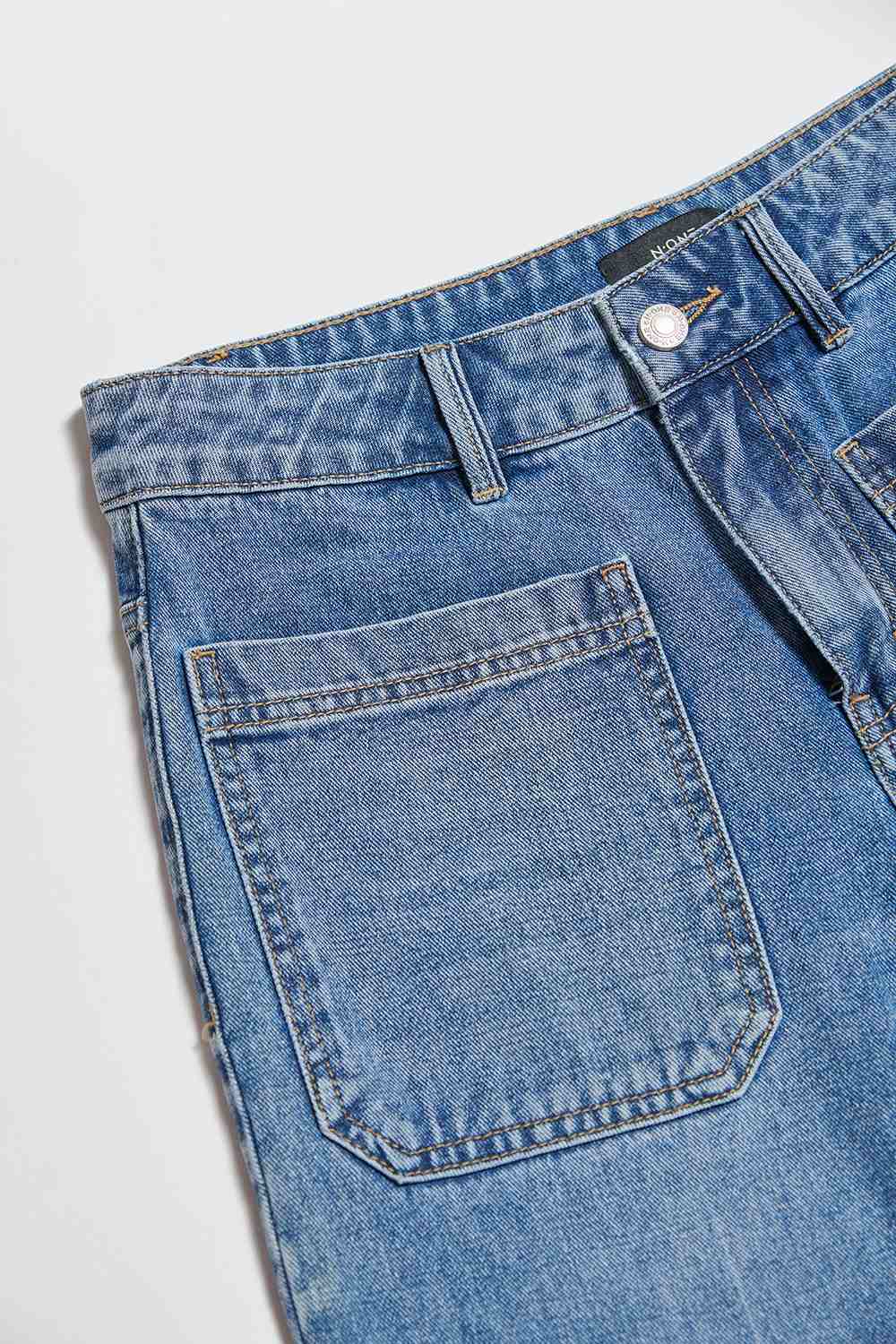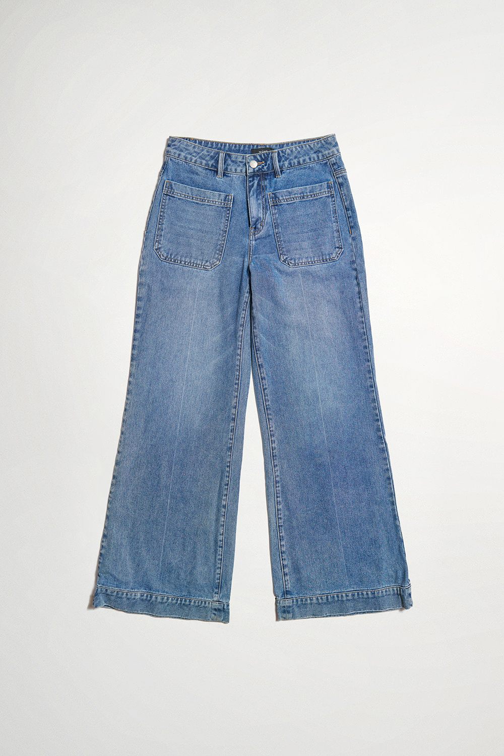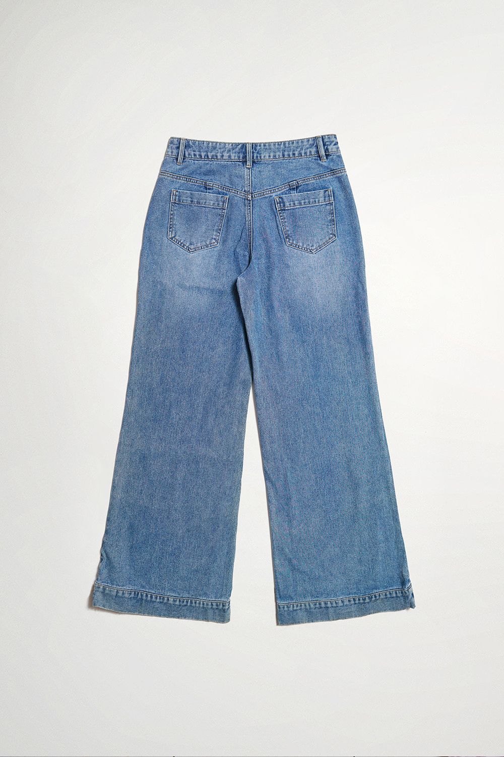 舒影落晨大口袋刷白牛仔低腰寬管褲
