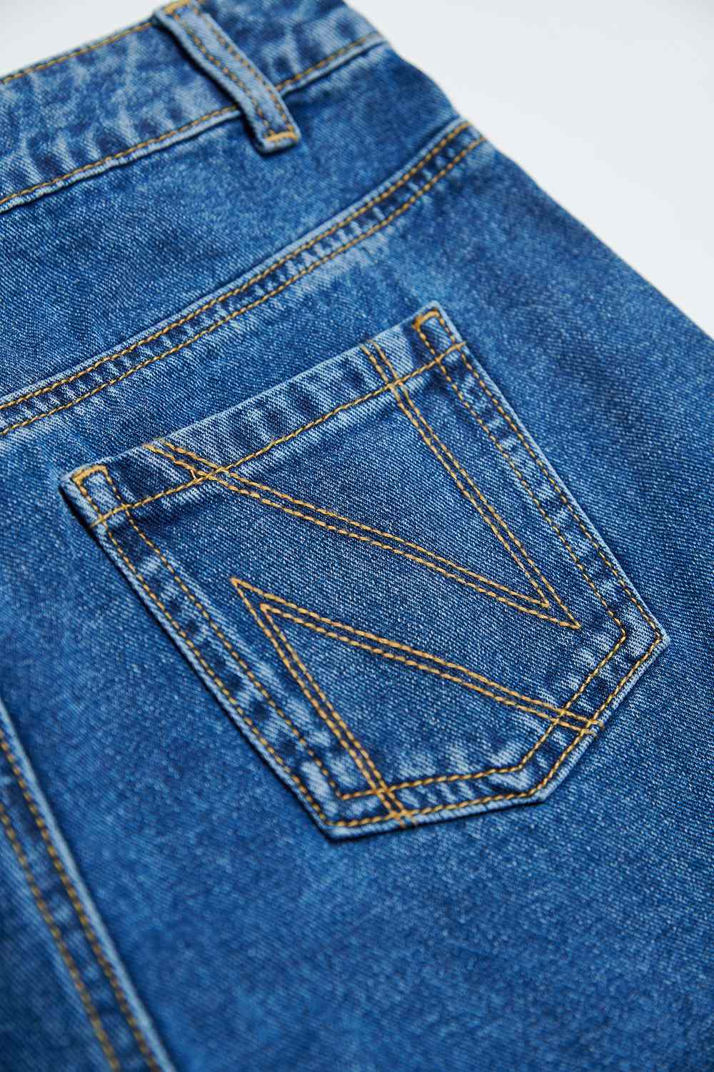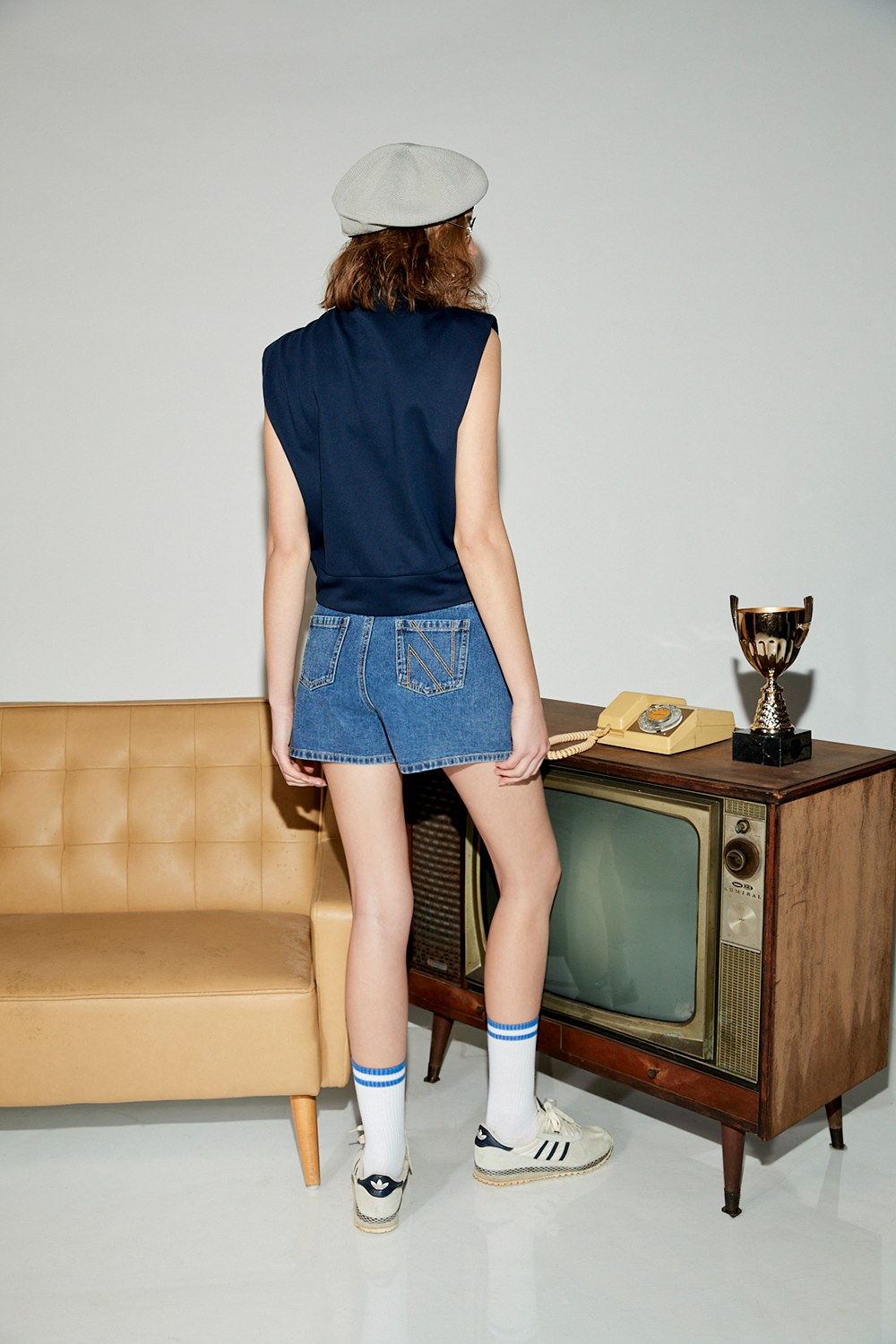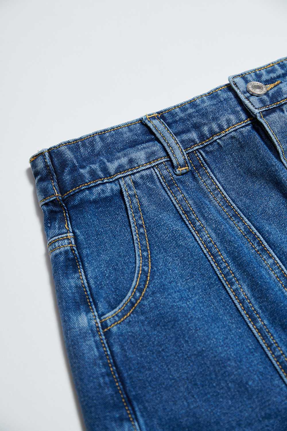 某日清晨拼接織紋排釦牛仔短裙褲 - 寧靜黛藍, L