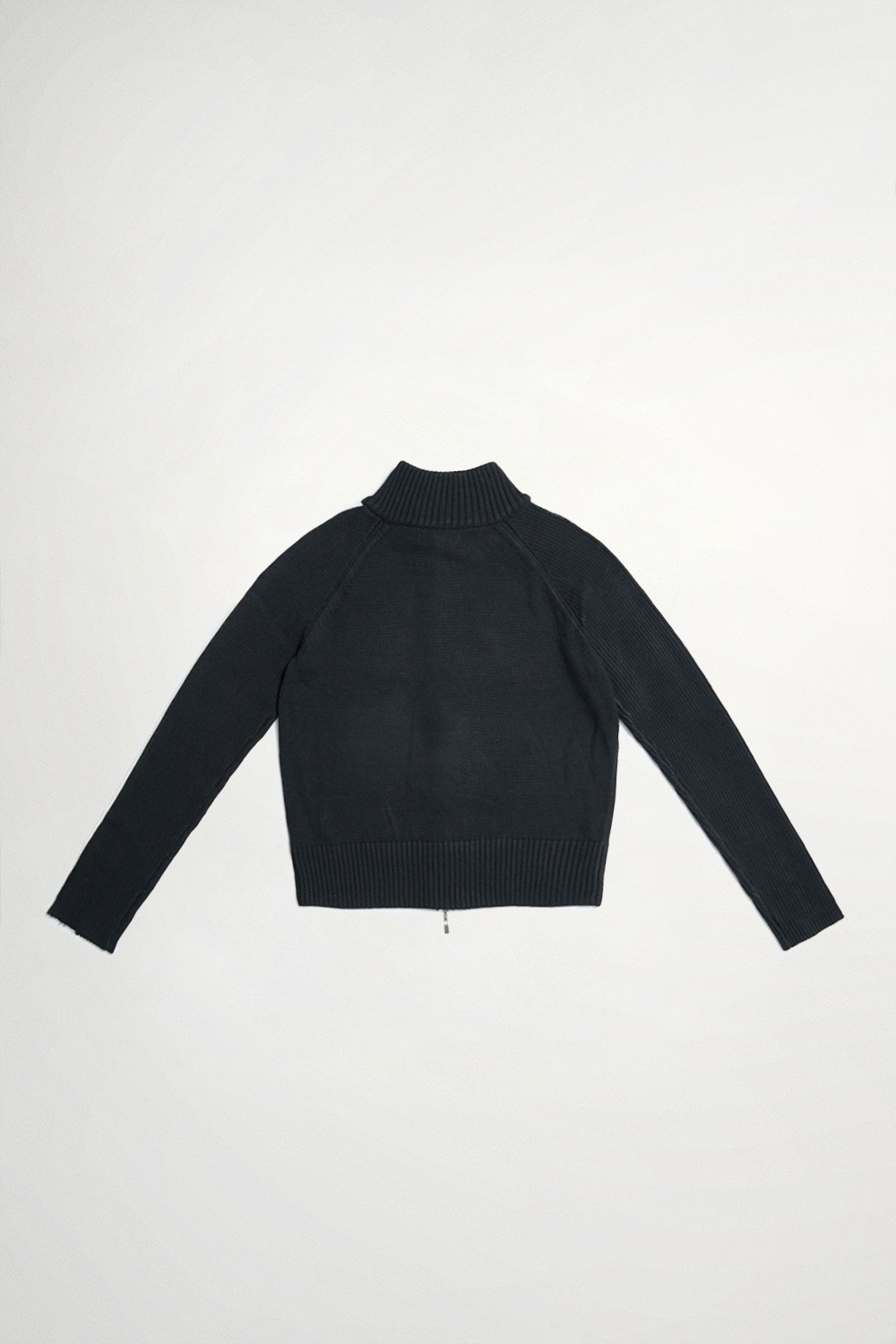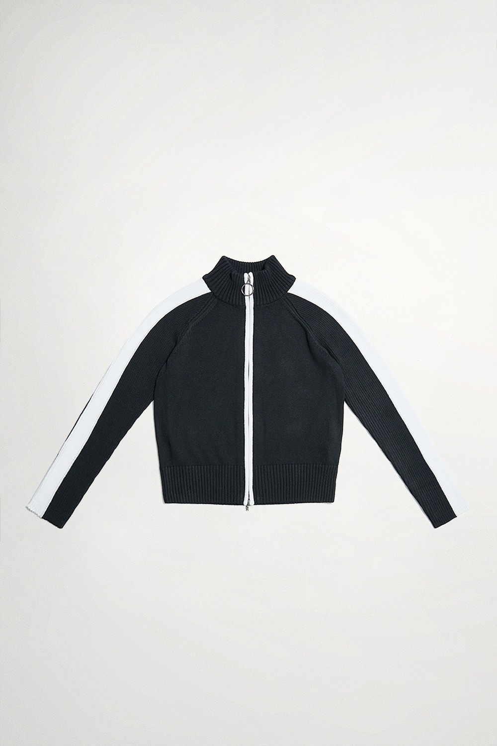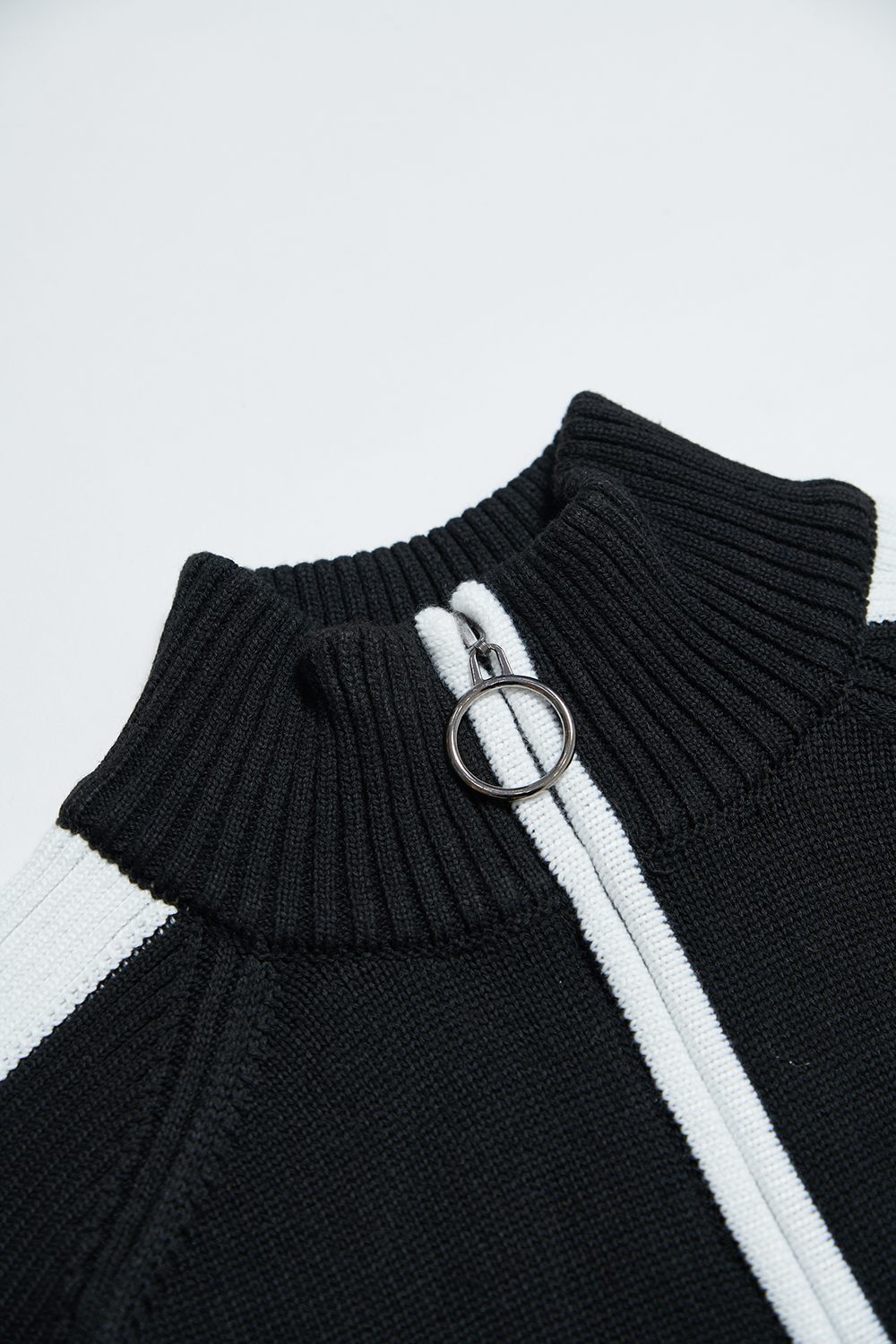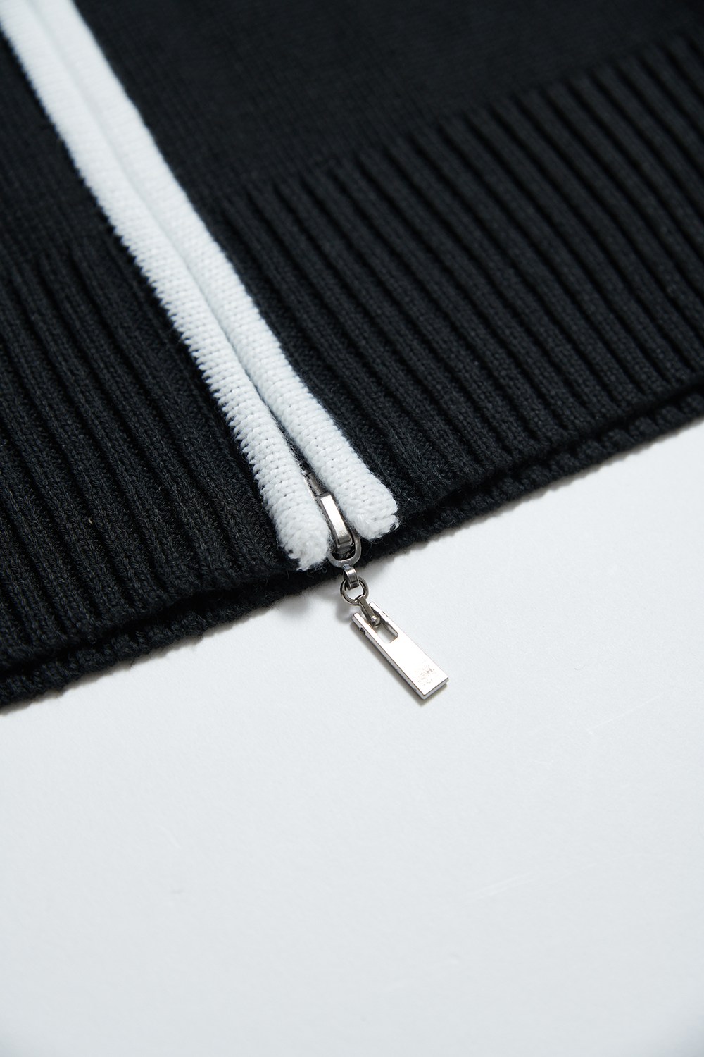 莫與拾光邊線立領合身針織外套 - 神祕純黑, S