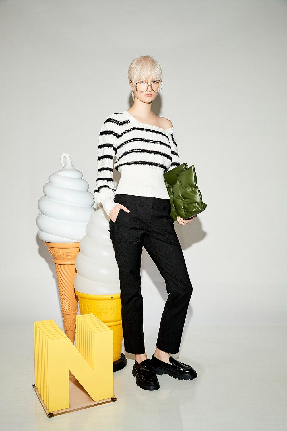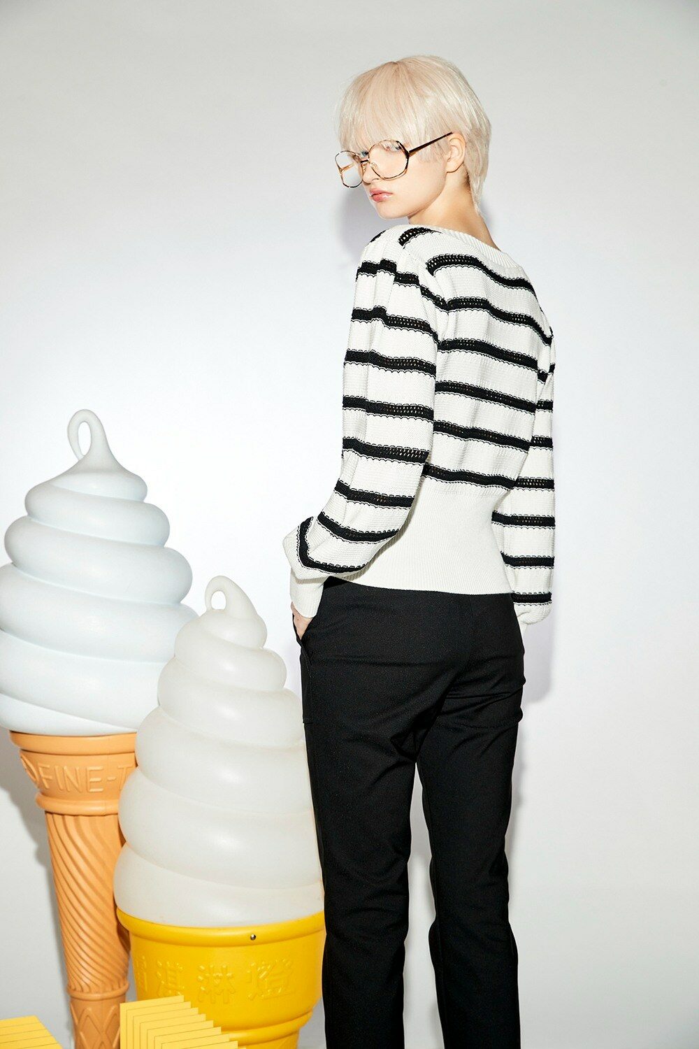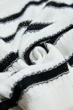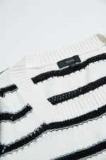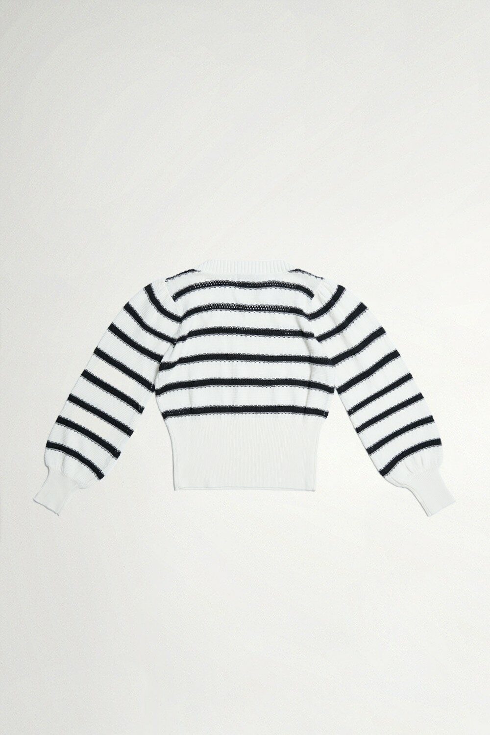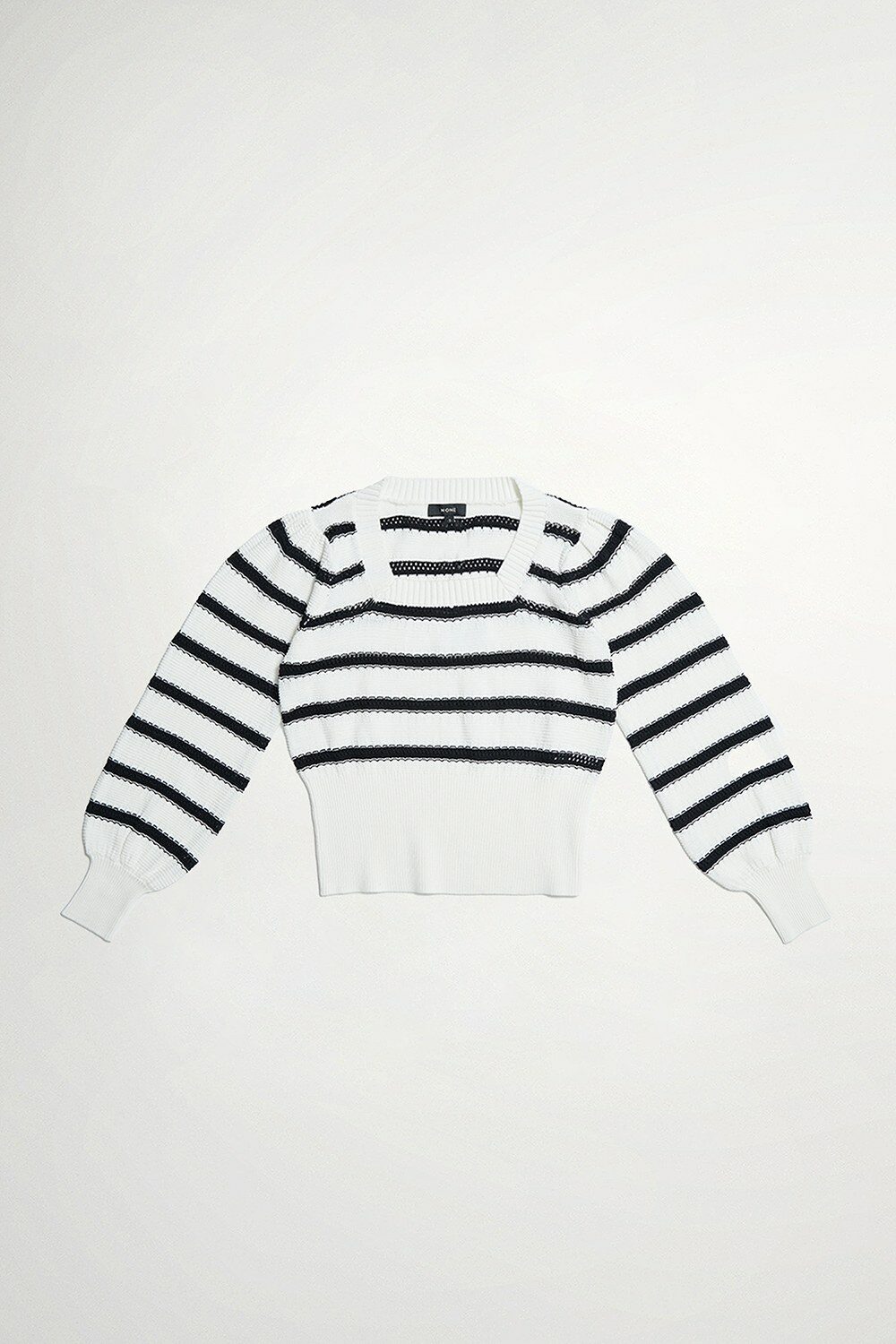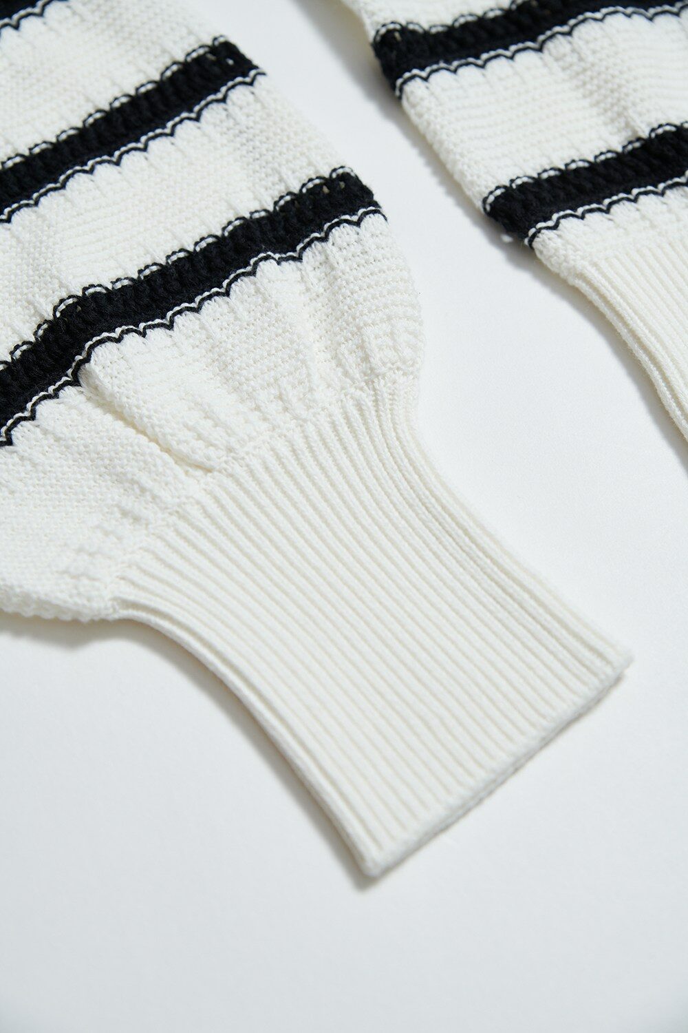 境忽陪想方領鏤空條紋收腰針織上衣 - 無瑕純白, S