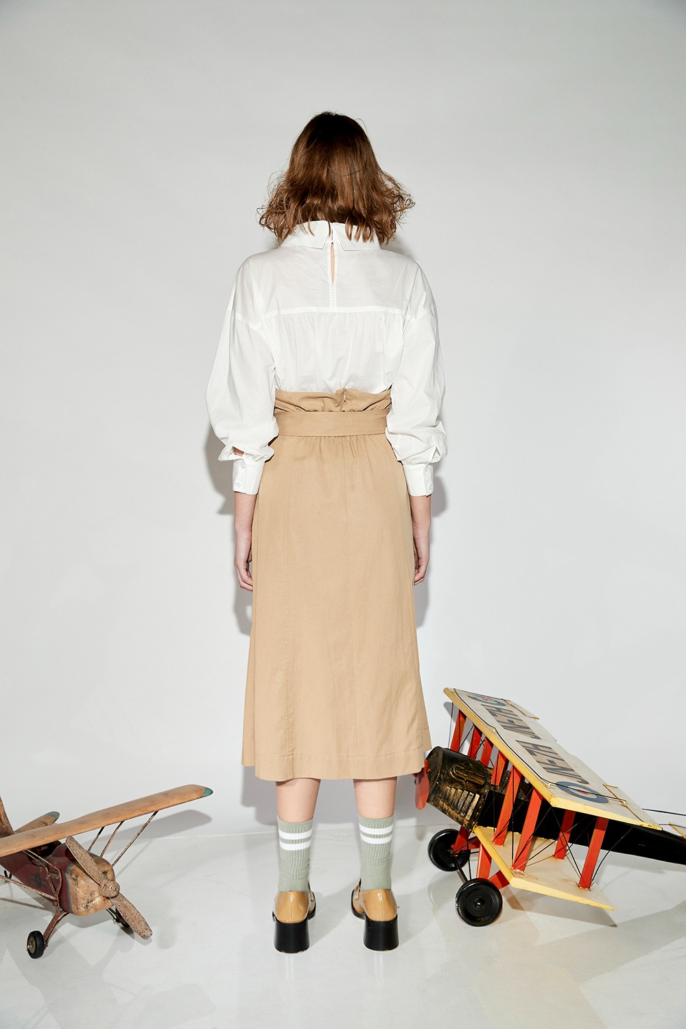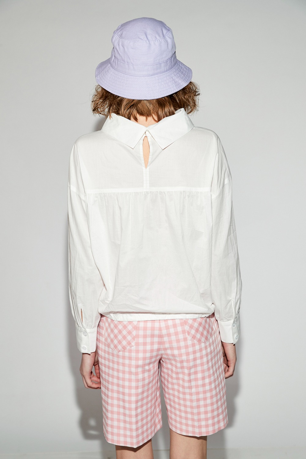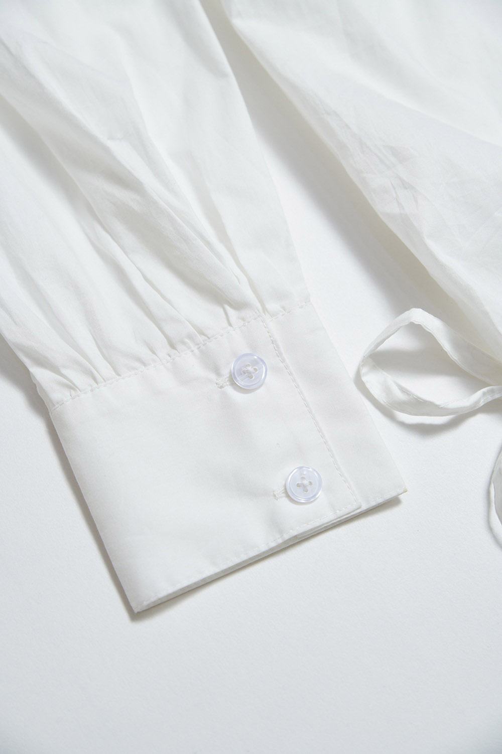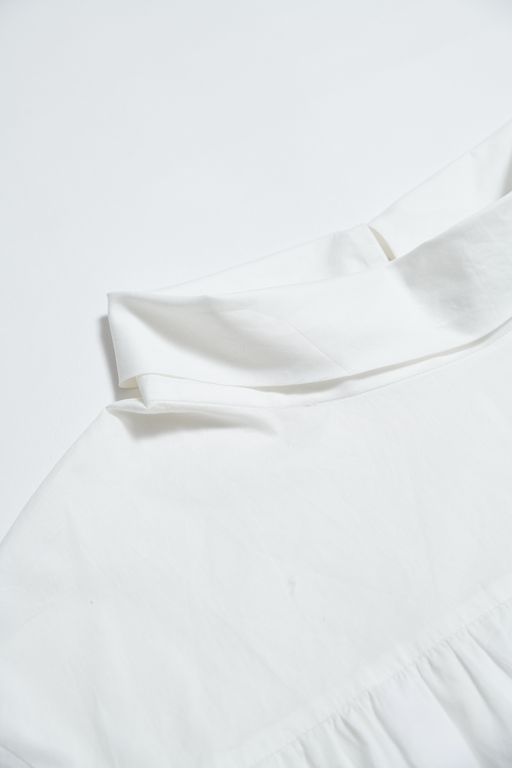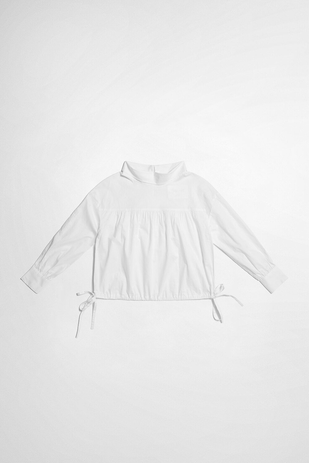 獨悠創語綁帶收腰垂墜立領細褶上衣