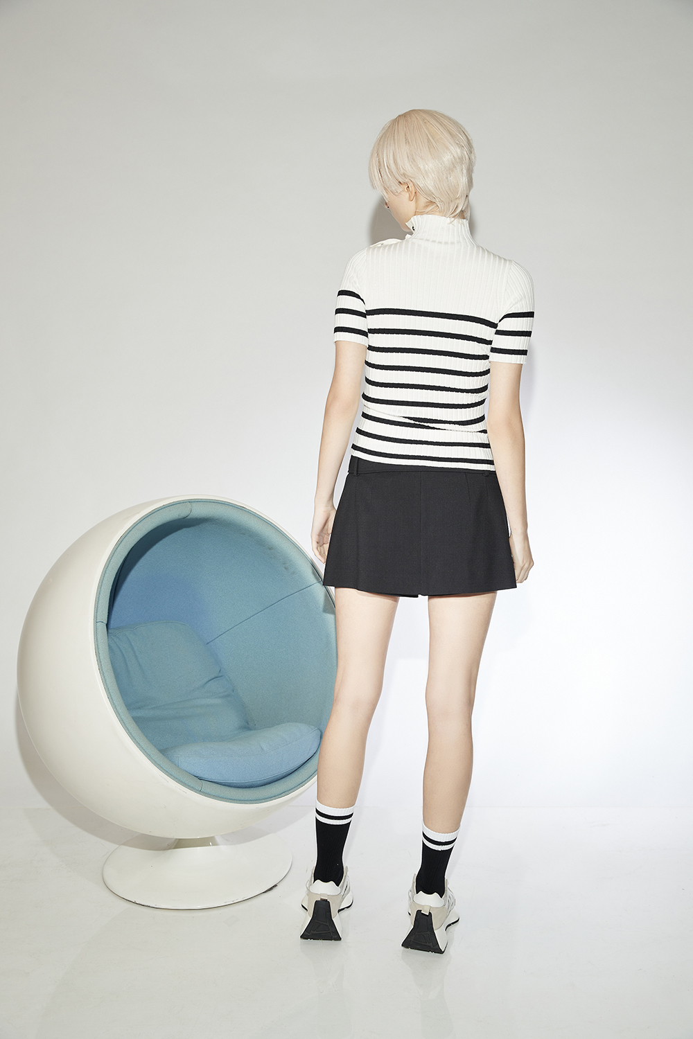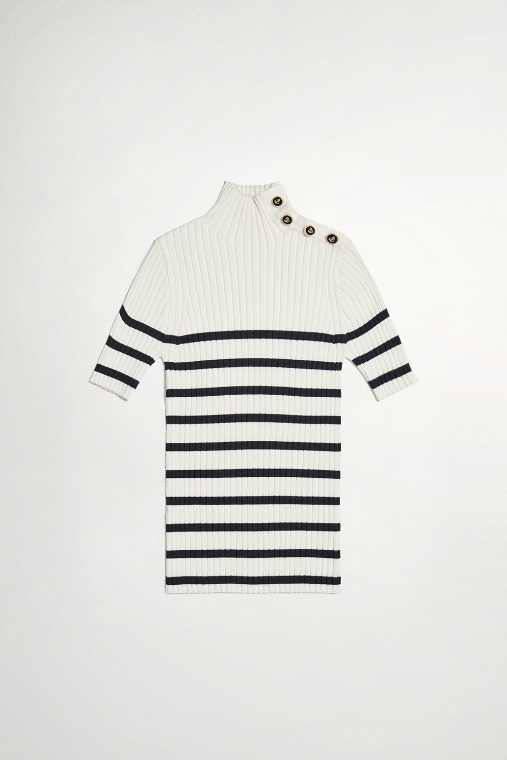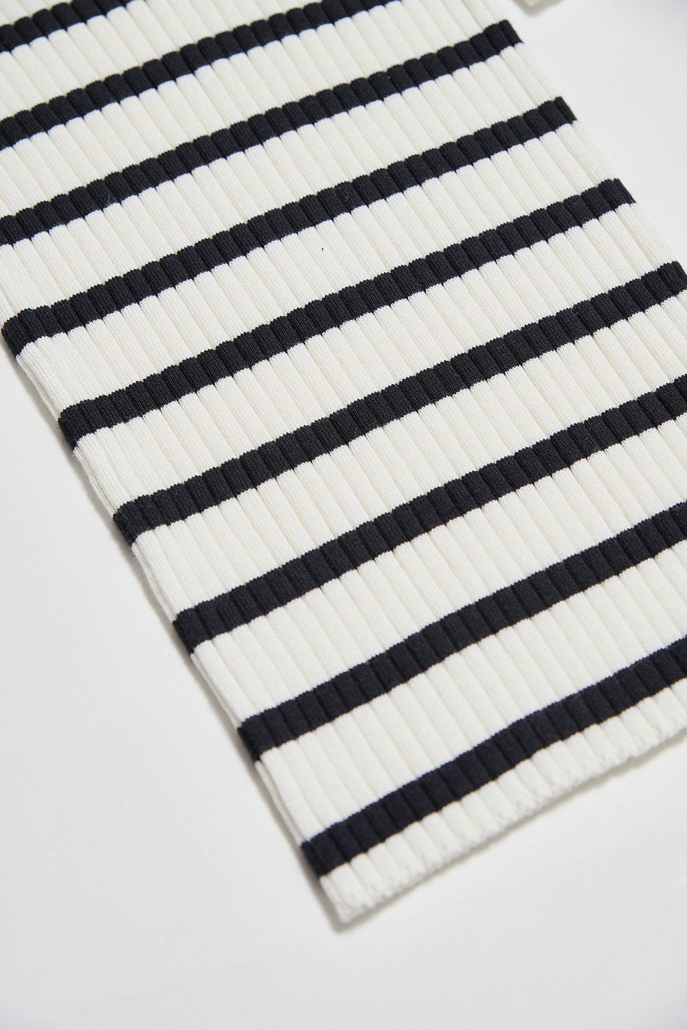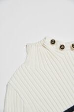 溫現暖暈小立領排釦條紋針織合身上衣 - 無瑕純白, M