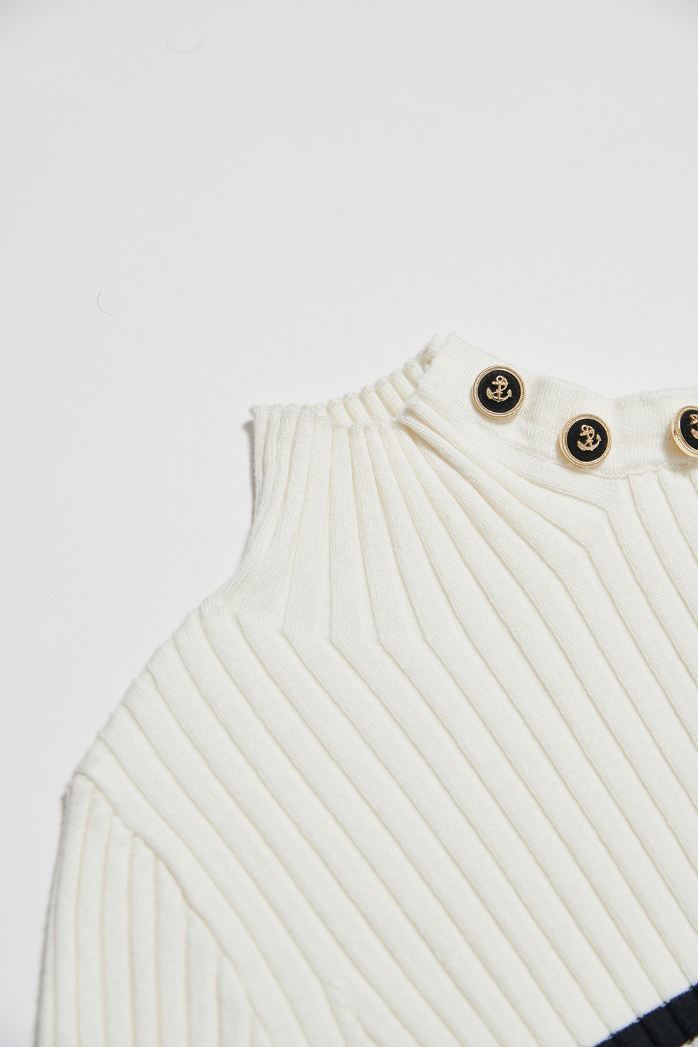 溫現暖暈小立領排釦條紋針織合身上衣 - 無瑕純白, L