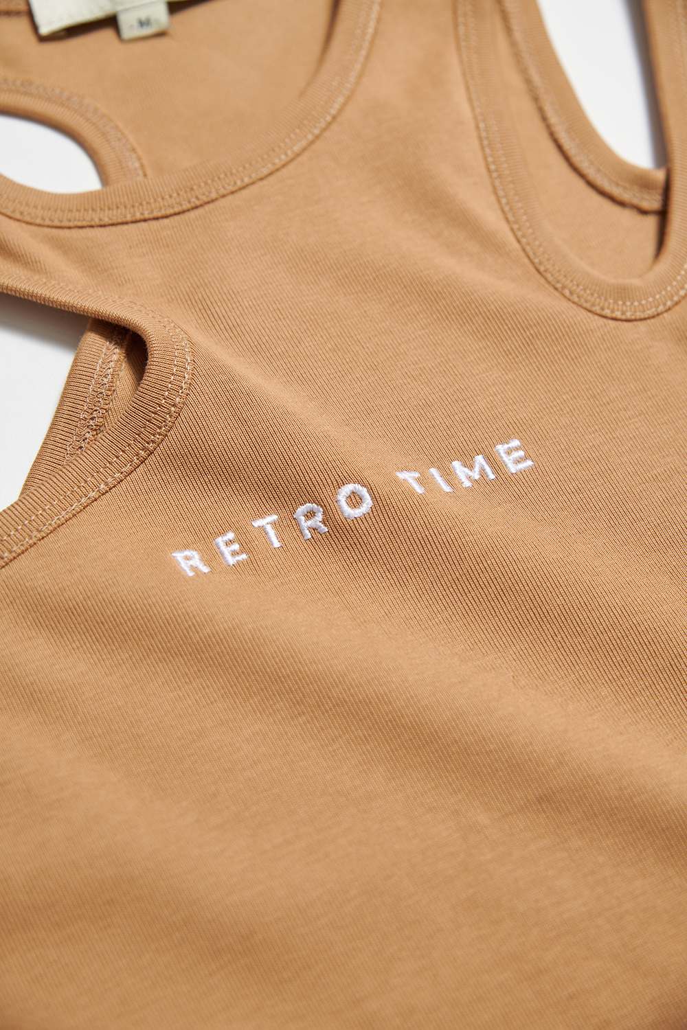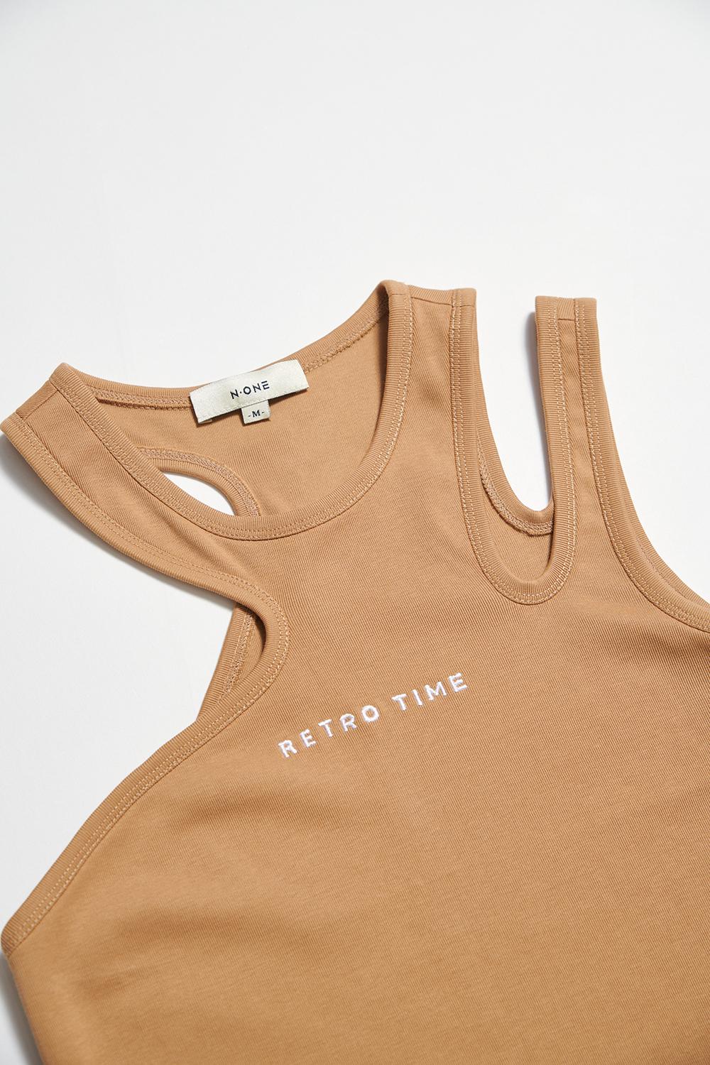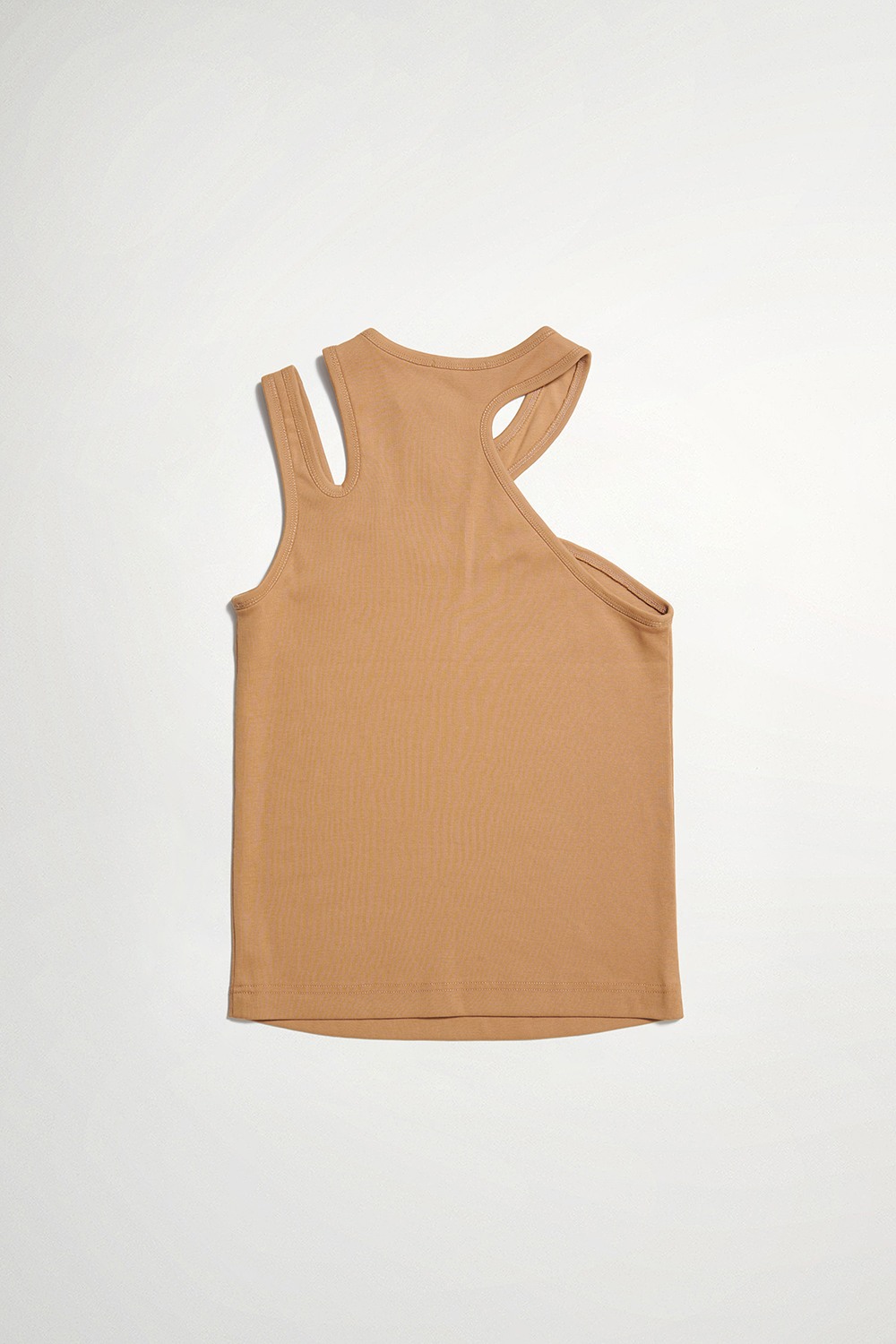 漫織緩暮鏤空不對稱肩帶刺繡背心 - 淺亞麻金, L