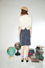 緻恆典範前開衩格紋窄身A字裙 - 深邃藏藍, L