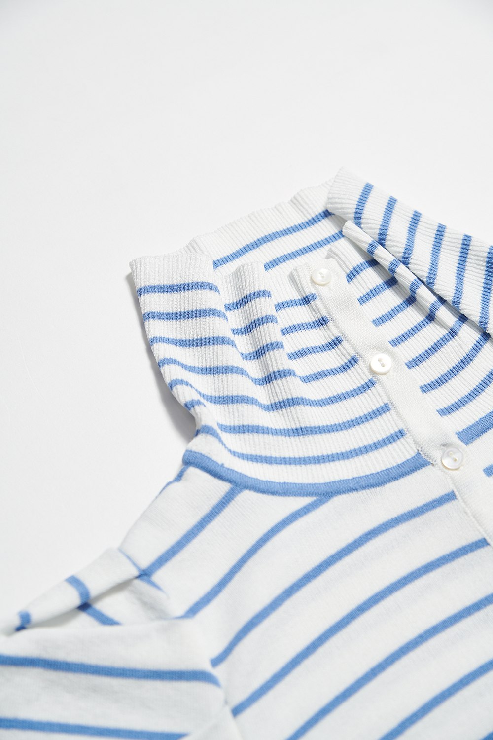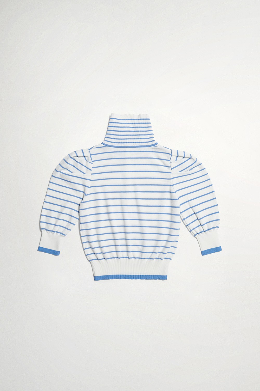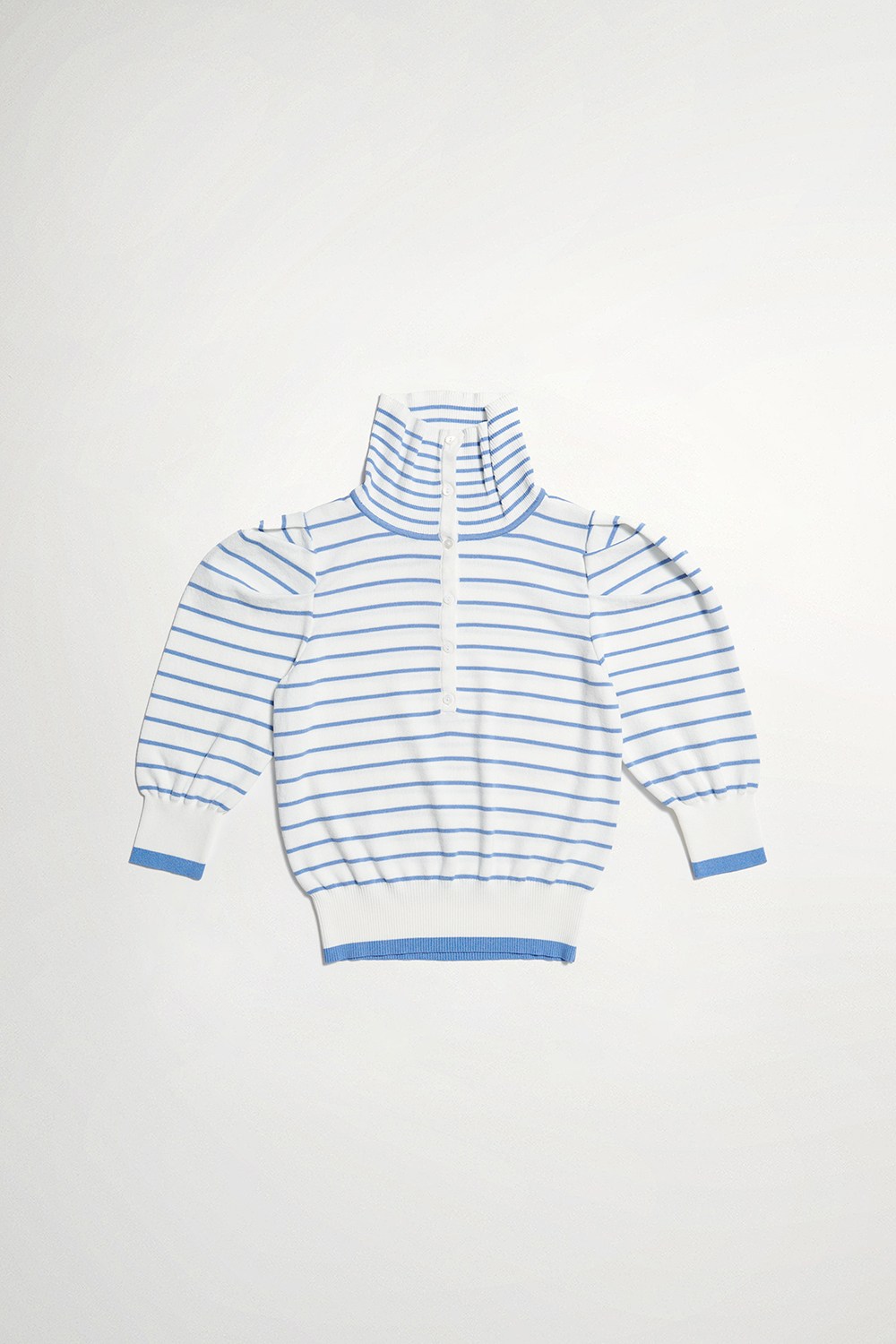 清澈河畔翻領墊肩澎袖針織上衣 - 寧靜黛藍, S