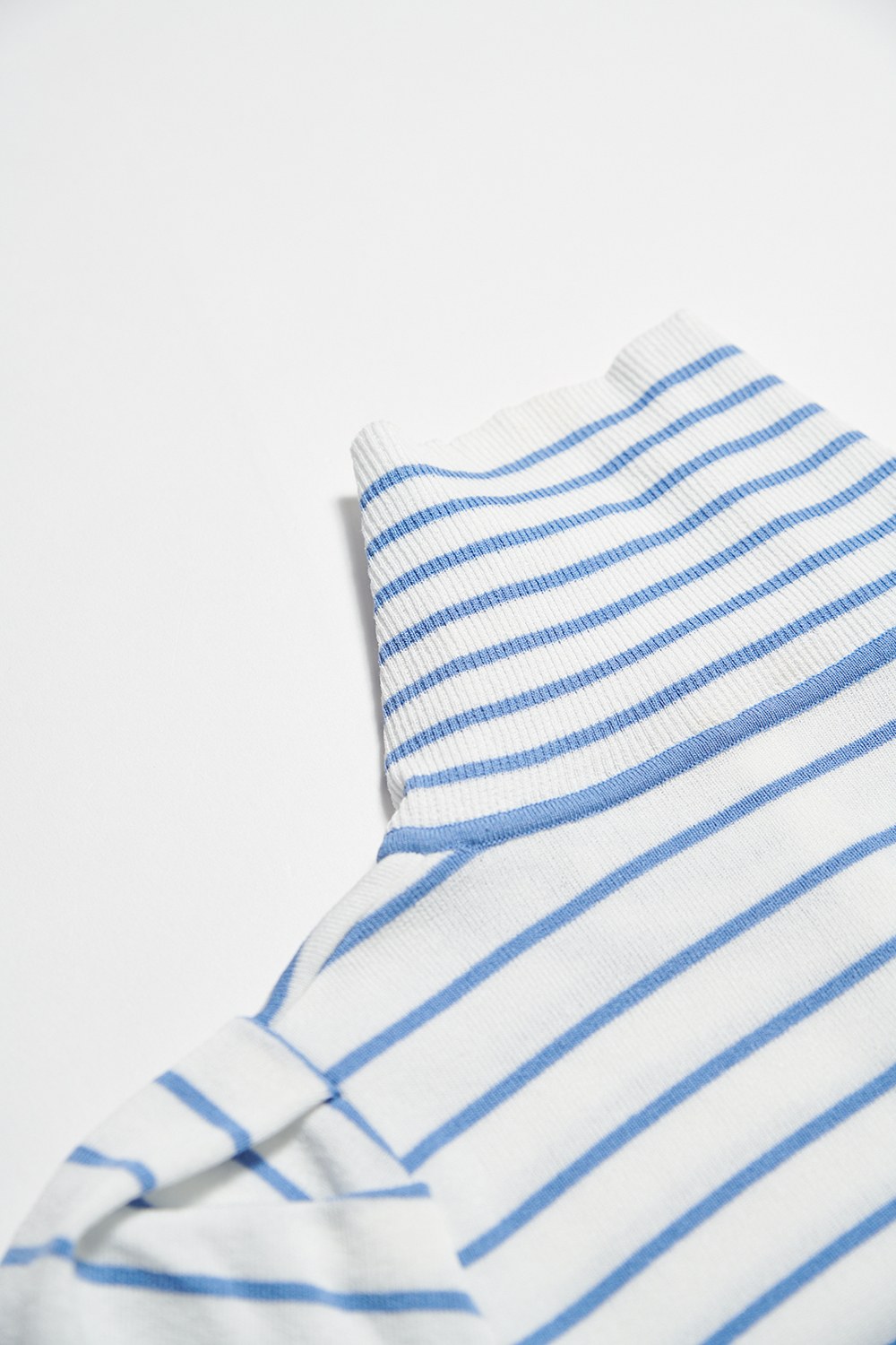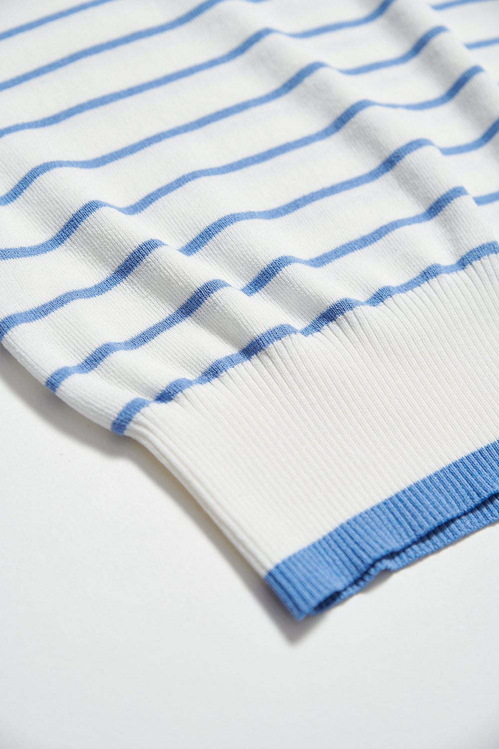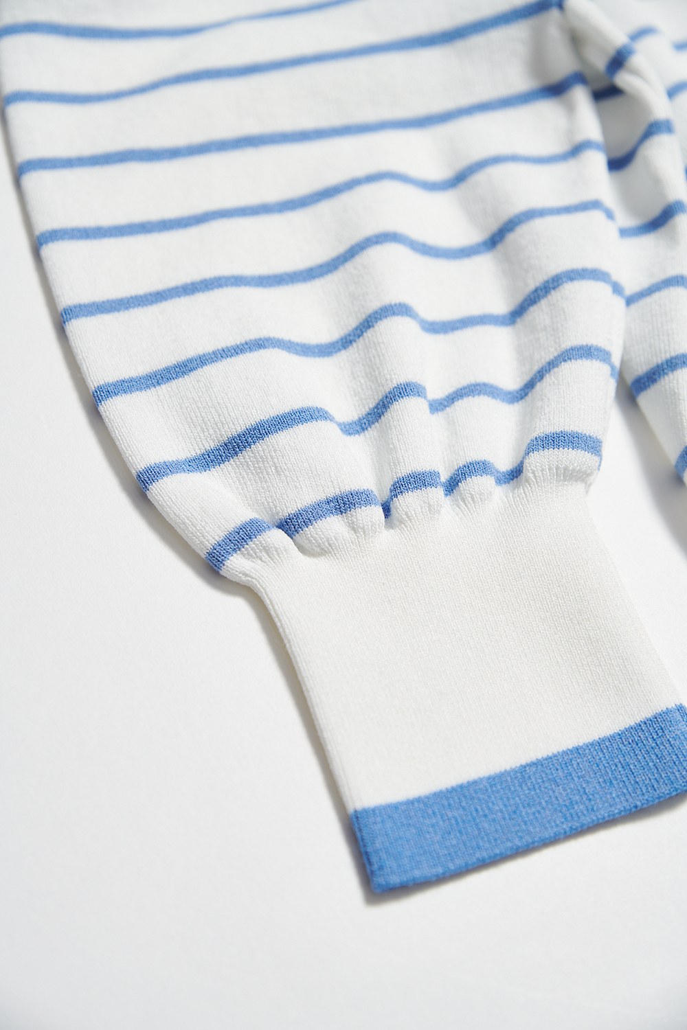 清澈河畔翻領墊肩澎袖針織上衣 - 寧靜黛藍, S