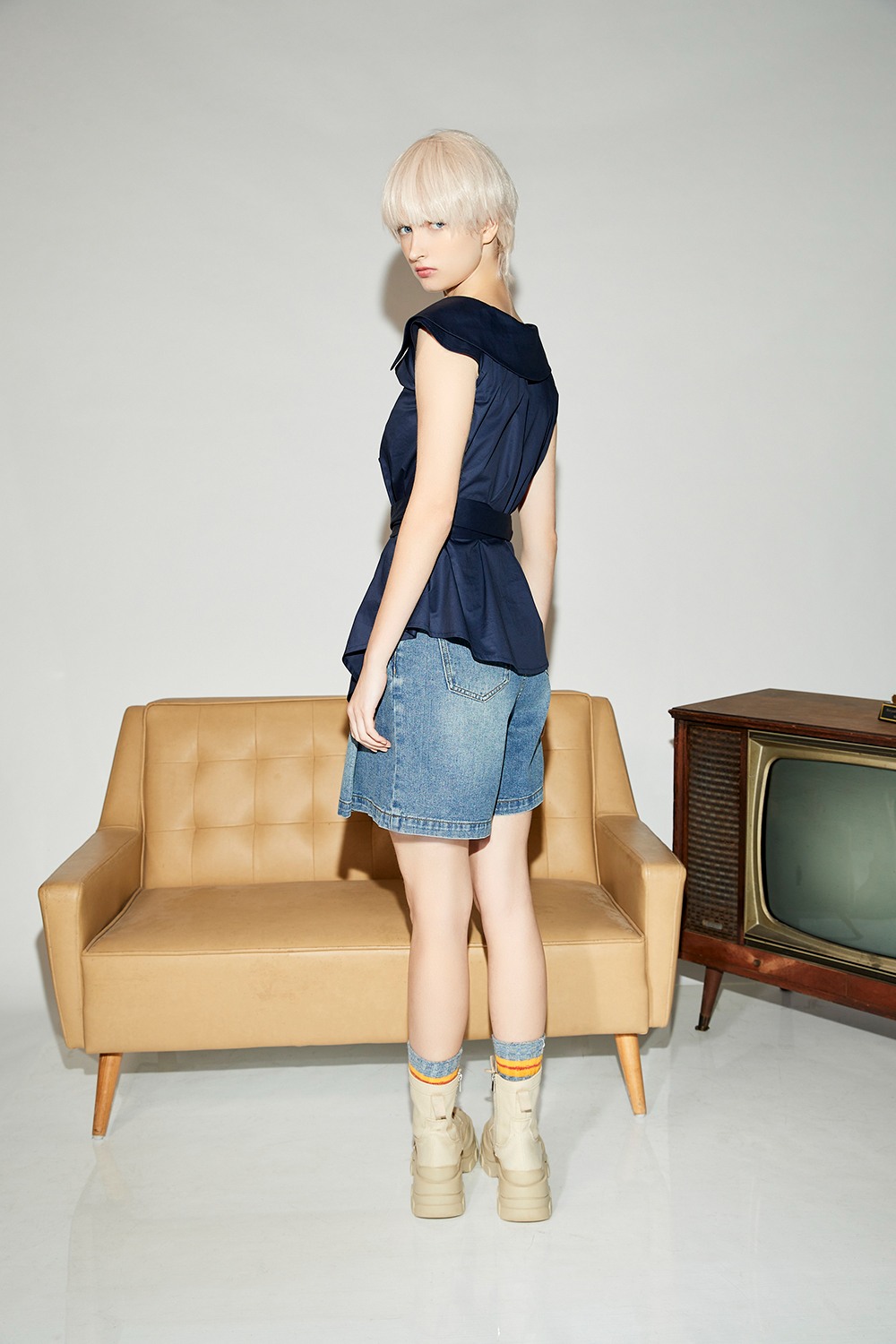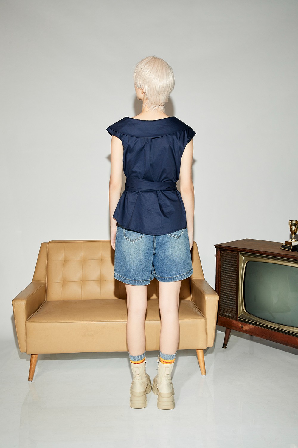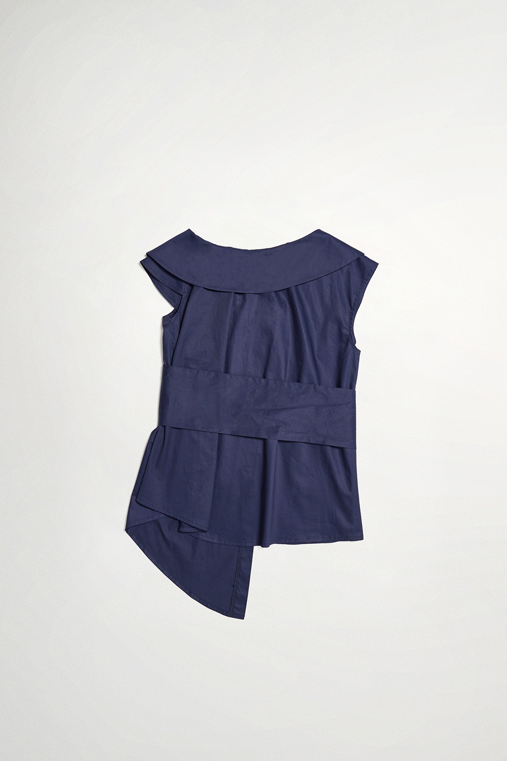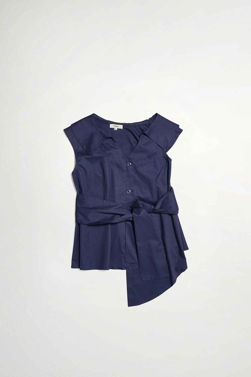 暮夜悠緻翻領不規則袖綁帶襯衫式背心(附綁帶) - 深邃藏藍, L