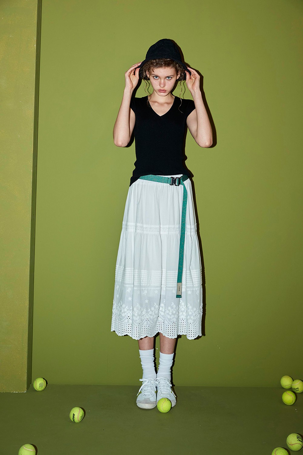 落肩搭配著兩側排釦含蓄而自在 佐以暮綠色為理想加分