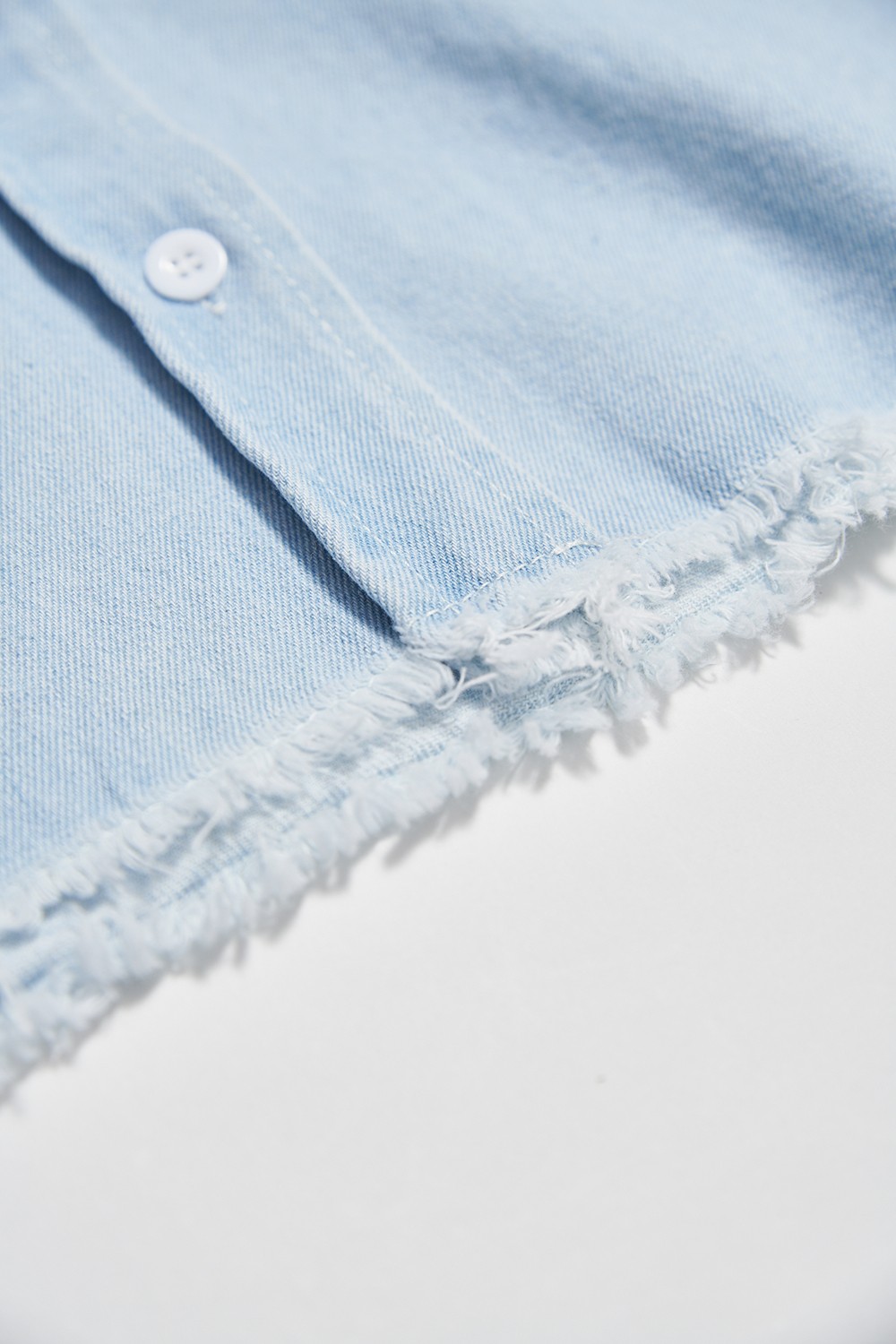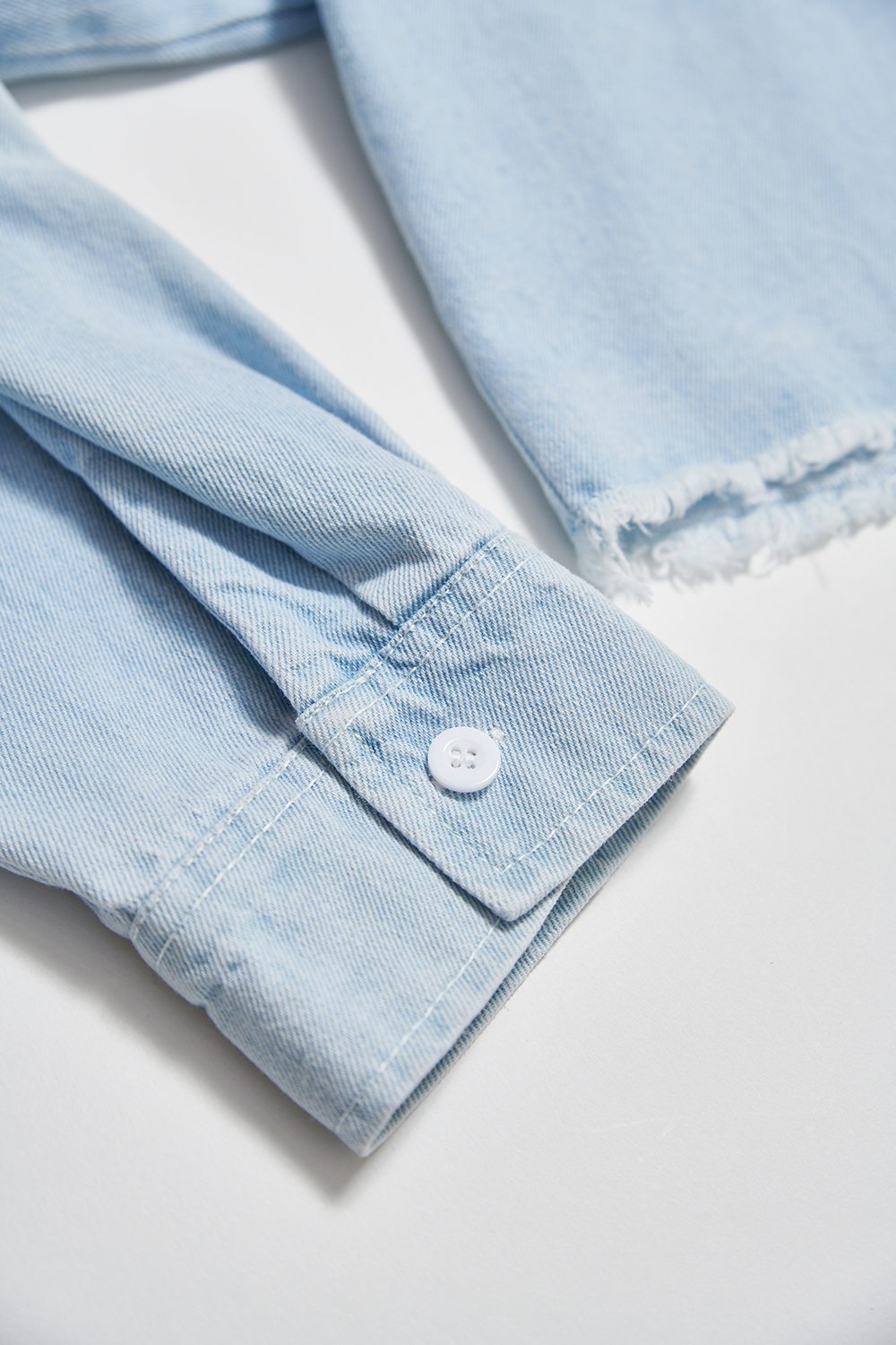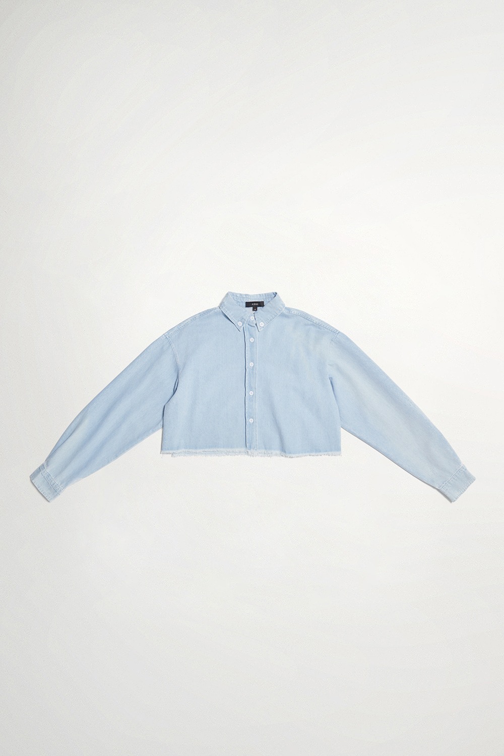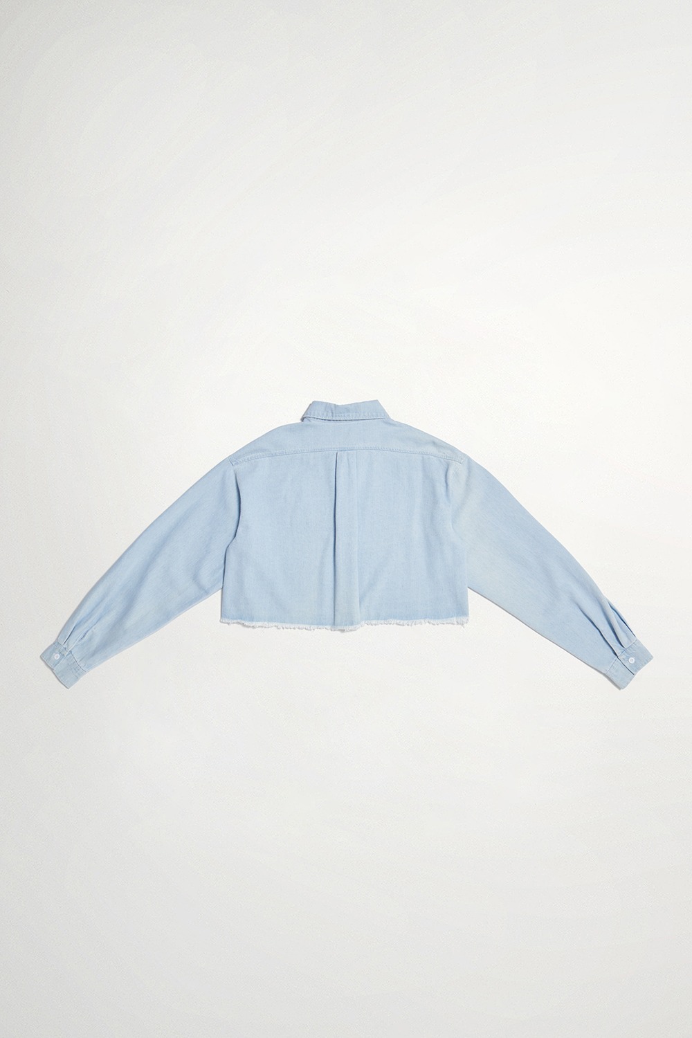 隨日放晴抽鬚短版牛仔翻領襯衫