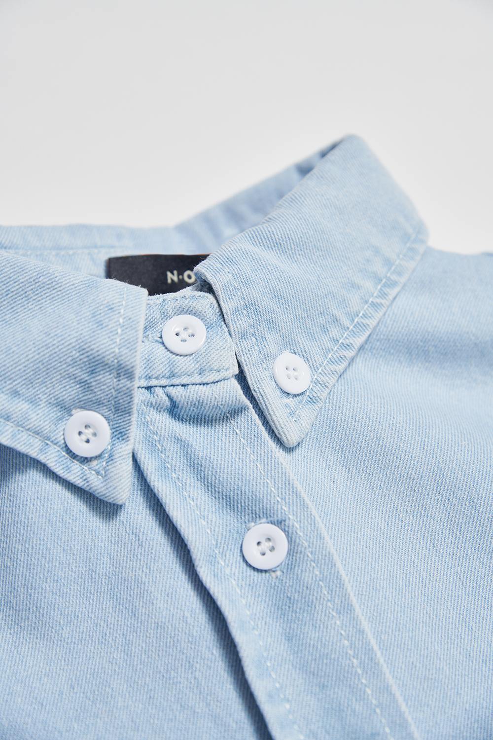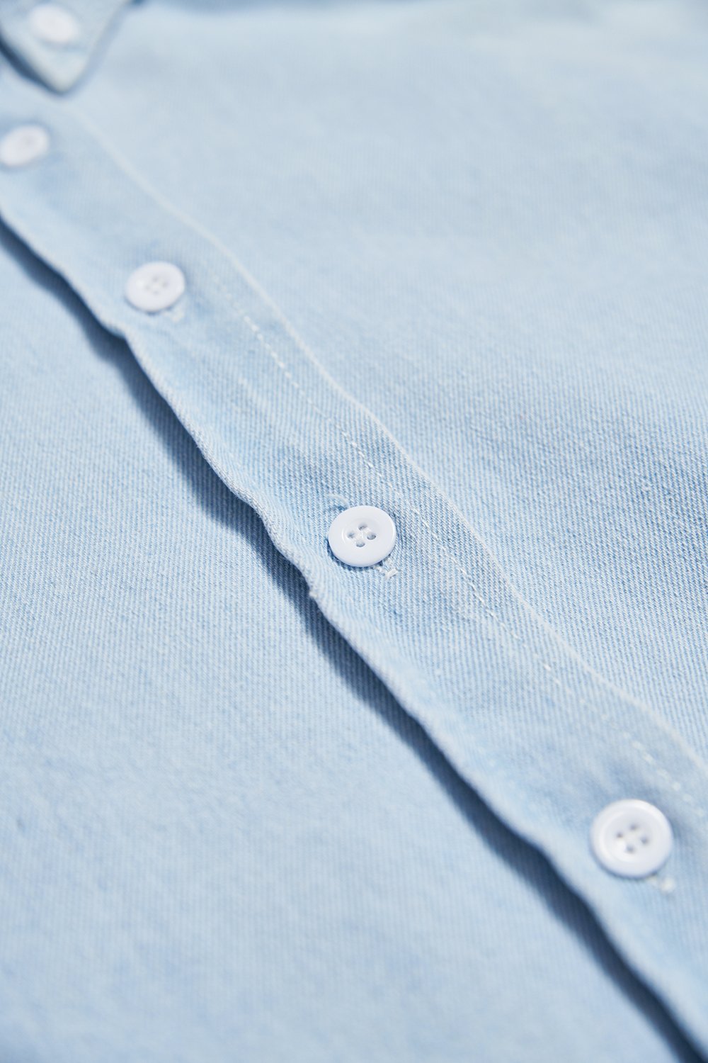 隨日放晴抽鬚短版牛仔翻領襯衫 - 寧靜黛藍, F