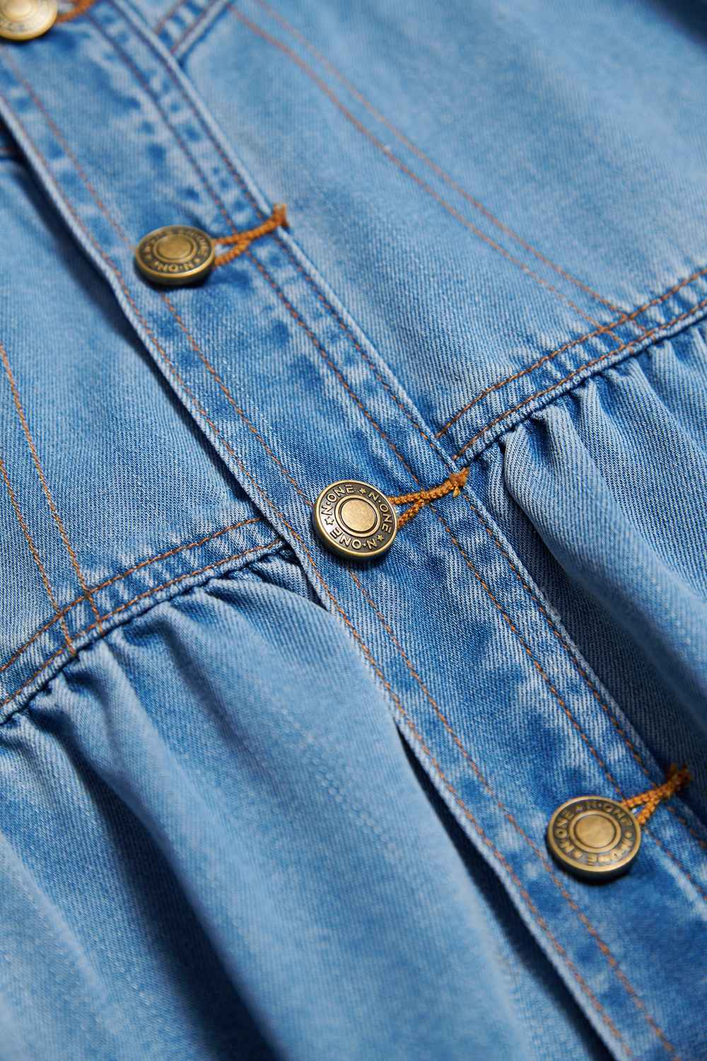隨見知蘊細褶垂墜感高腰排釦牛仔長裙 - 寧靜黛藍, M
