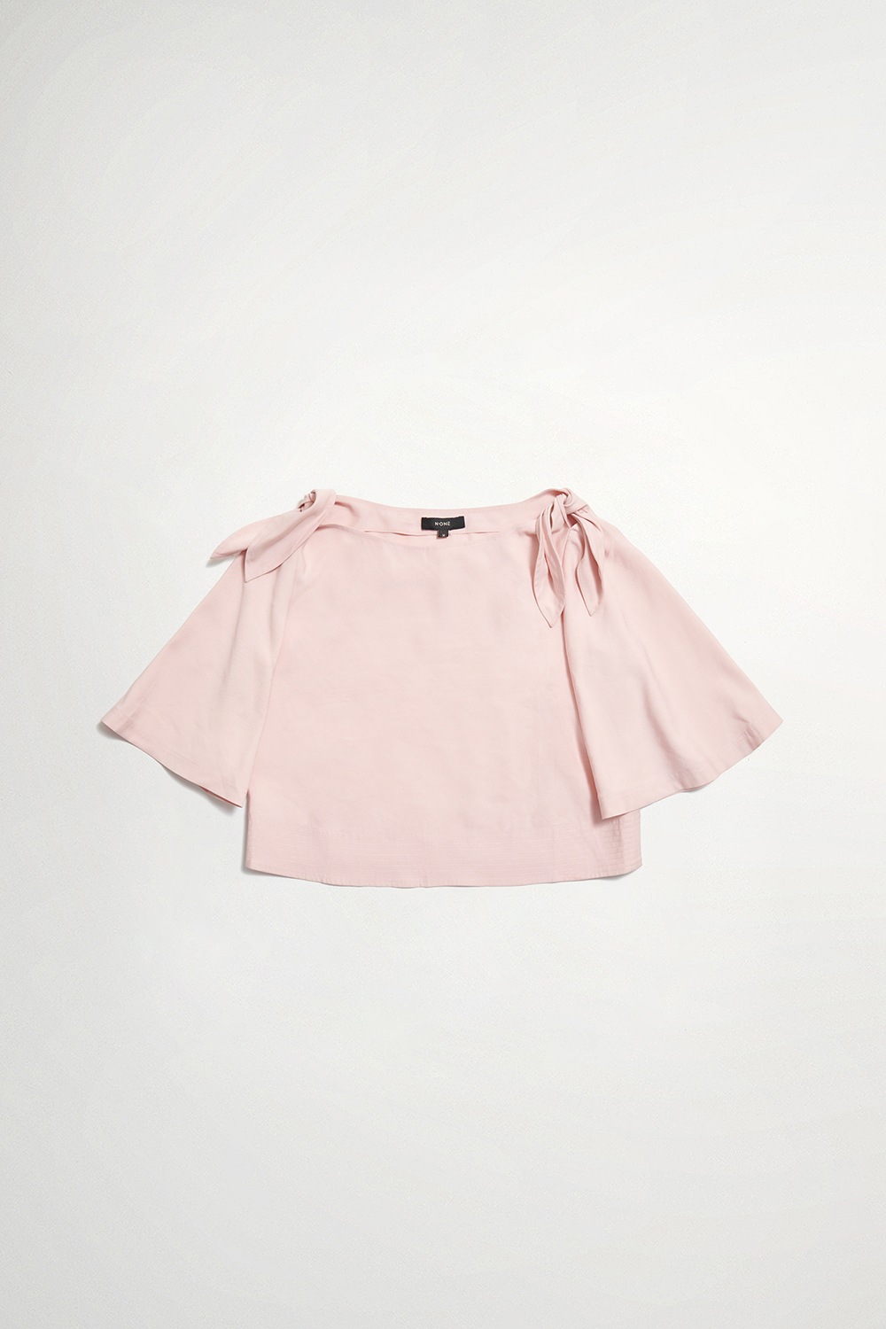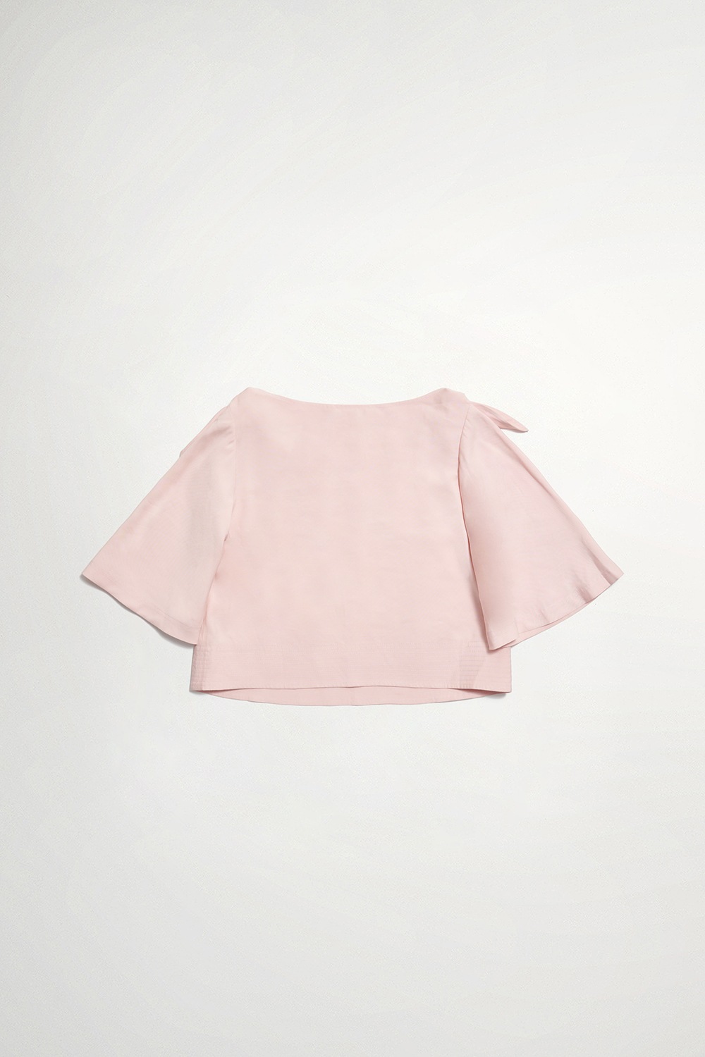 摯柔暖粉平領結飾五分寬袖上衣 - 既睡粉黛, S