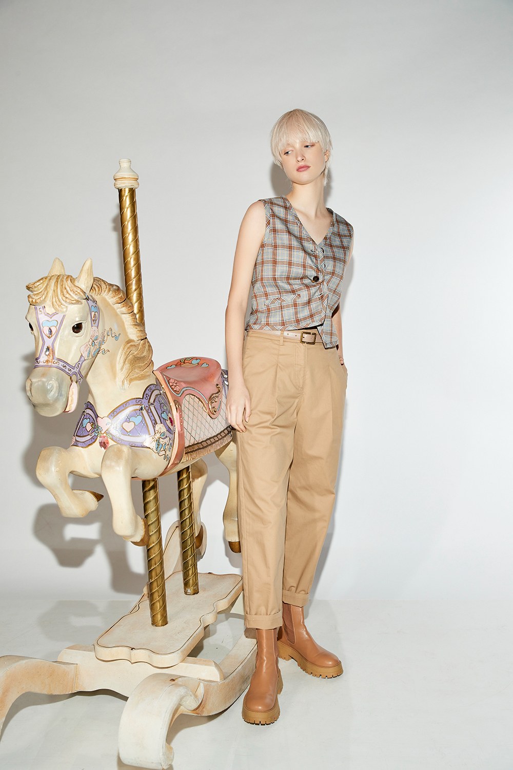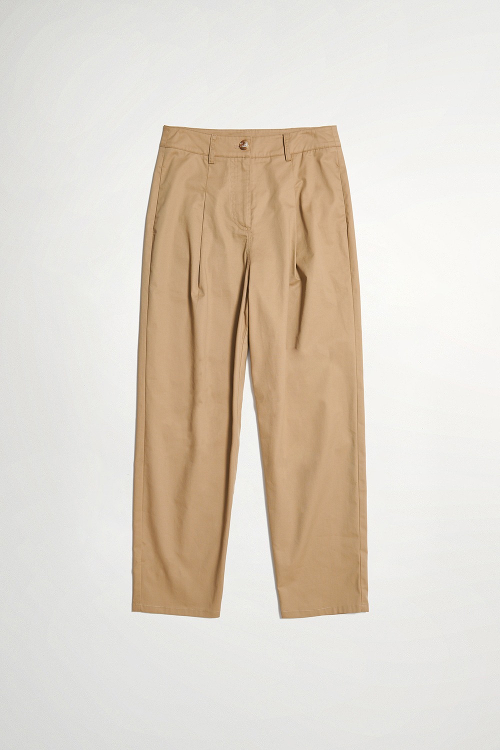 時光漫散高腰打褶錐形寬褲 - 可可卡其, M