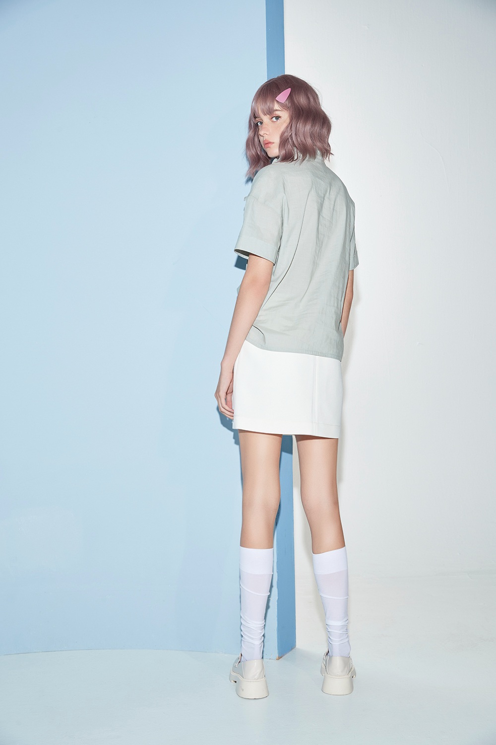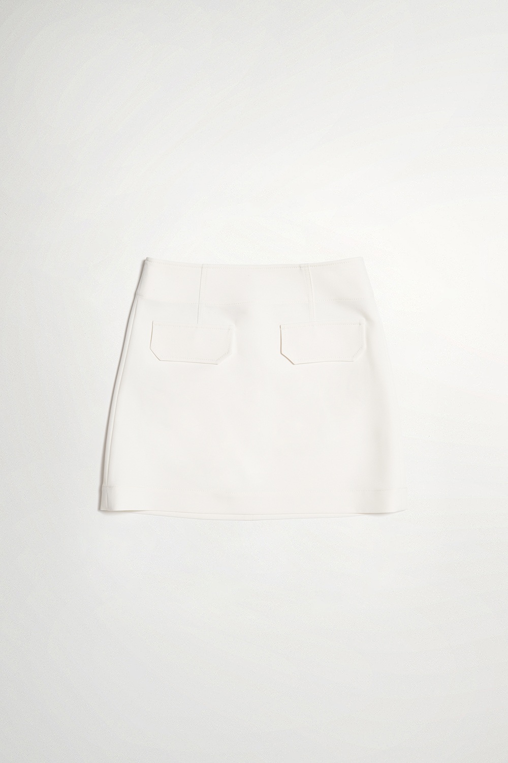 悠想悸動翻蓋口袋挺版A字短裙 - 無瑕純白, S