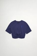 漫雲柔境腰扭結圓領繡花上衣 - 寧靜黛藍, M