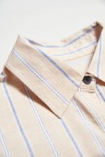 清晨遊歷棉麻條紋長版襯衫 - 可可卡其, S